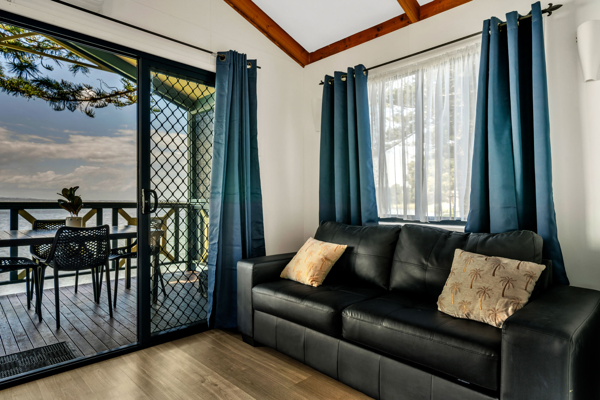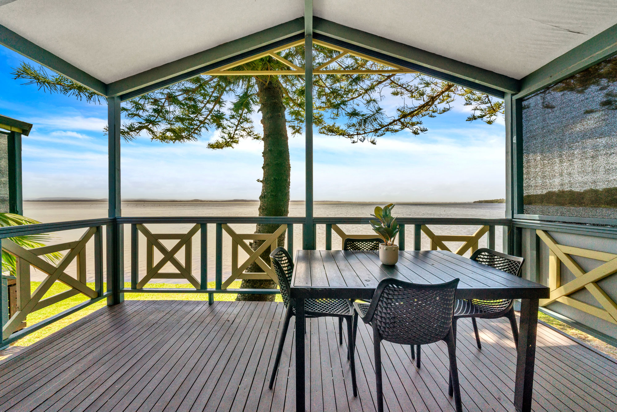 Sleeps up to 8 people. Queen sized bedroom, separate bunkroom with two sets of bunks, self-contained with ensuite, open plan kitchen, lounge/double sofa bed, veranda overlooking the water, TV/DVD, microwave, full size fridge, air-conditioner. Coffee pod machine. All linen supplied.