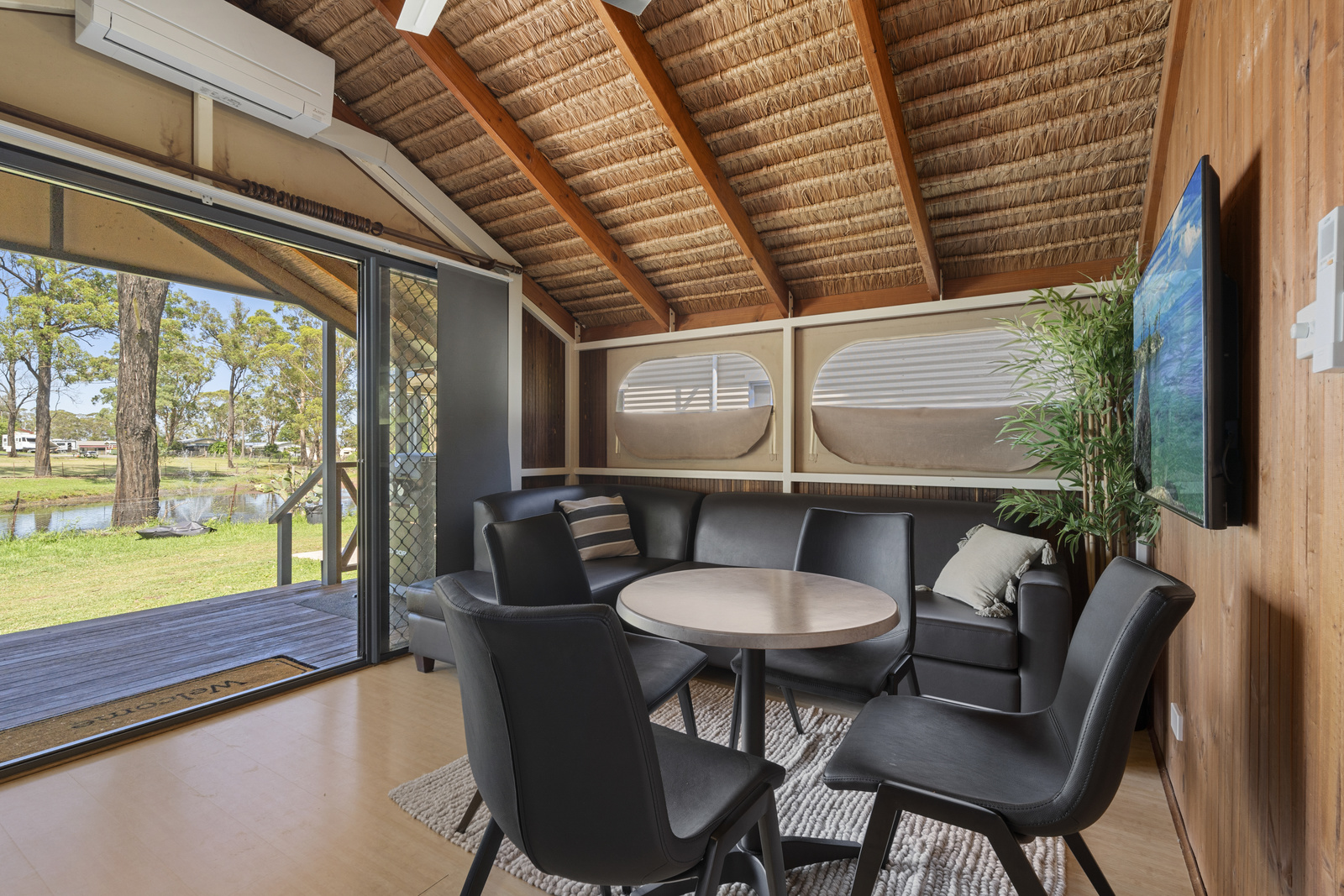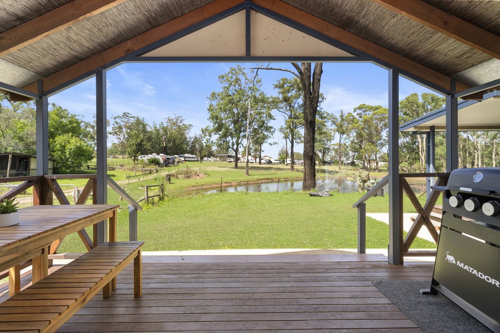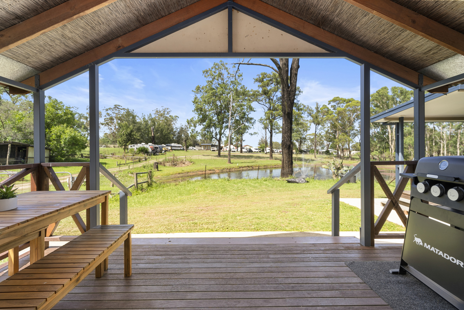 Enjoy a relaxed family stay in the quiet far end of the park with a lake view.