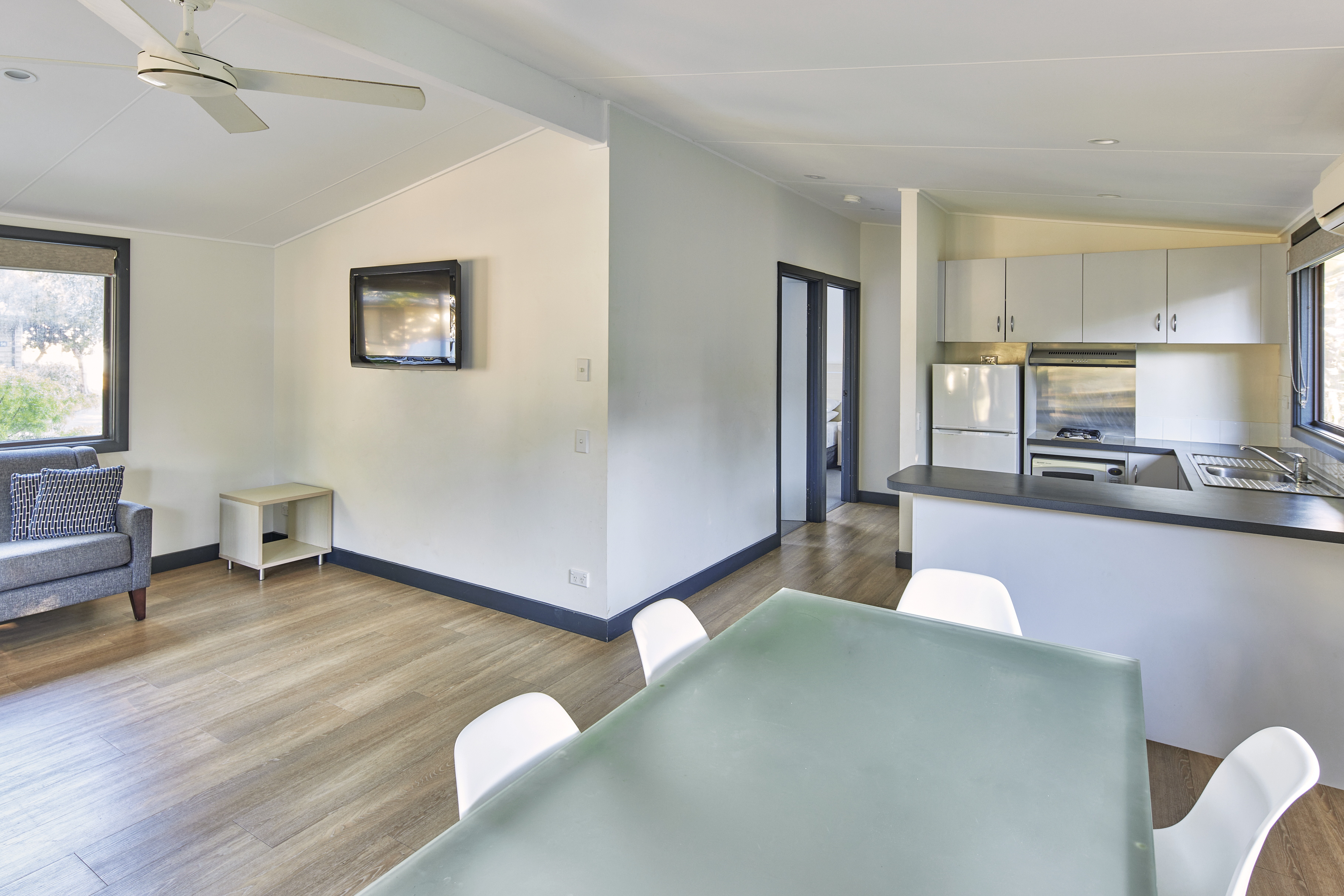 o 2 people per unpowered site - No tents, swags or gazebos are to be set up around cabins.