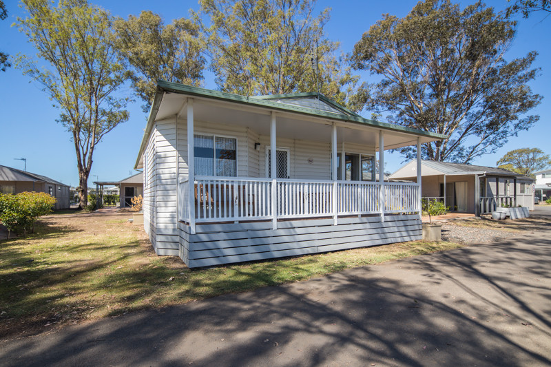 Enjoy a bright and spacious stay. Our 2 Bedroom Standard Cabins sleep up to four guests with a queen bed in the main bedroom and two single beds in the second bedroom, as well as a bathroom, living area, kitchen, and private deck.