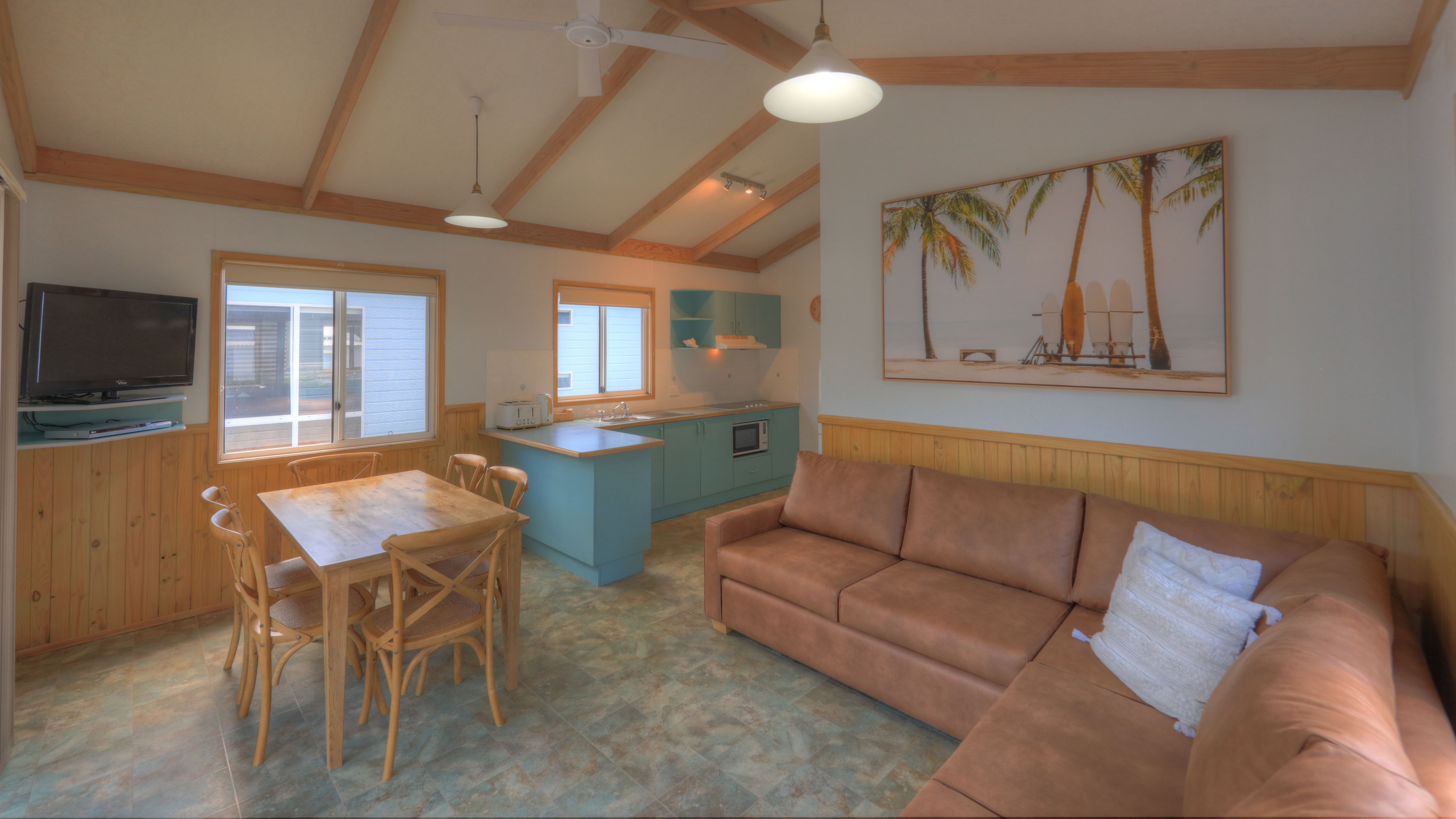 The spacious lounge and dining area is perfect for chilling out with the whole family after an adventure filled day!