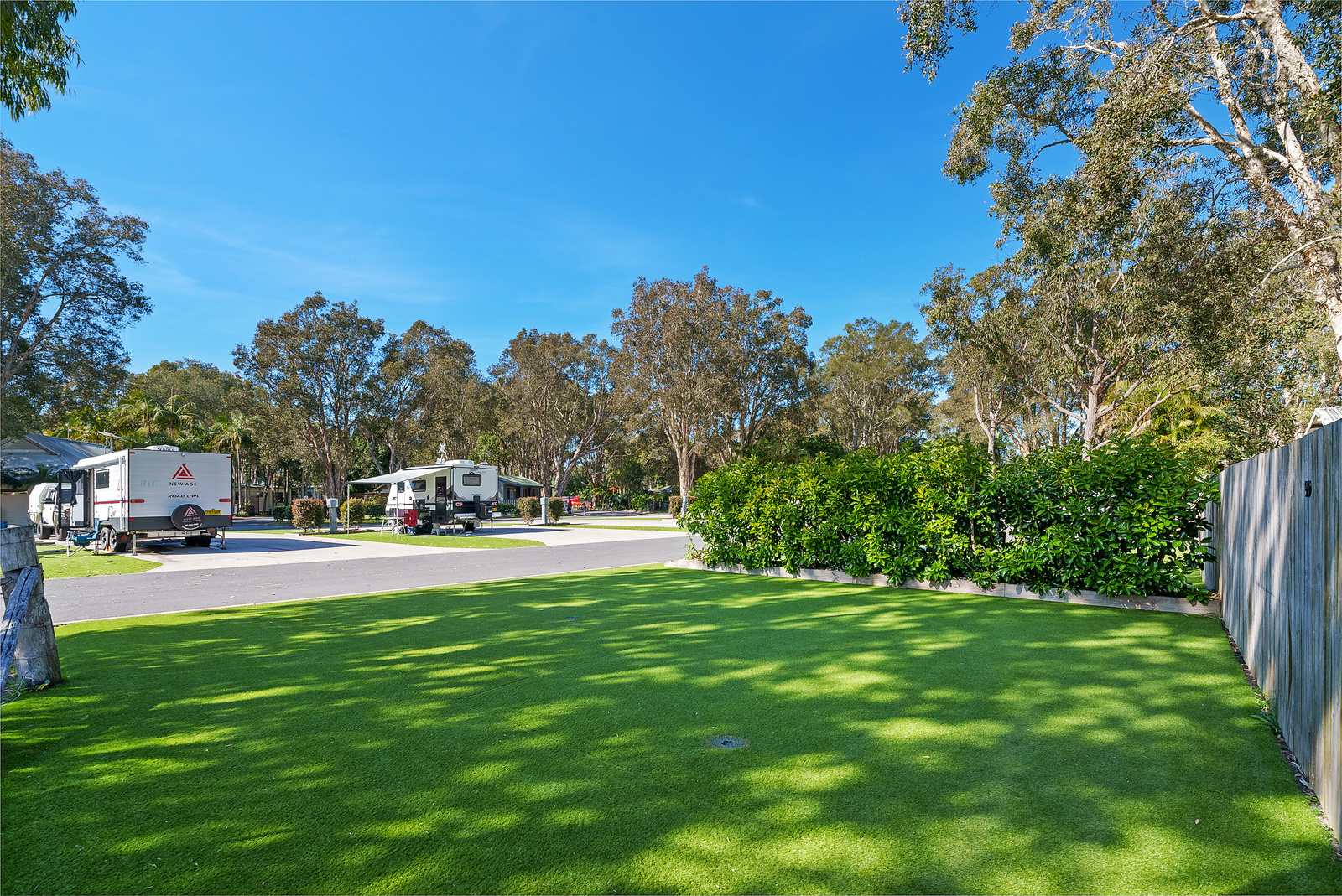 Set up your tent or park your caravan on an Unpowered Site for a simple stay. With an artificial grass surface and access to park amenities including the camp kitchen, guest lounge and BBQ area, it's the perfect option for self-sufficient camping or caravanning setups. Please note our Unpowered Sites do not have grey water or water access.