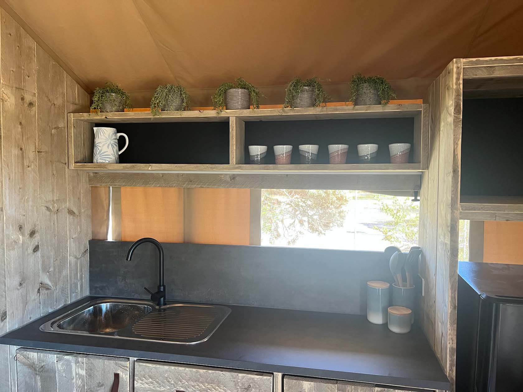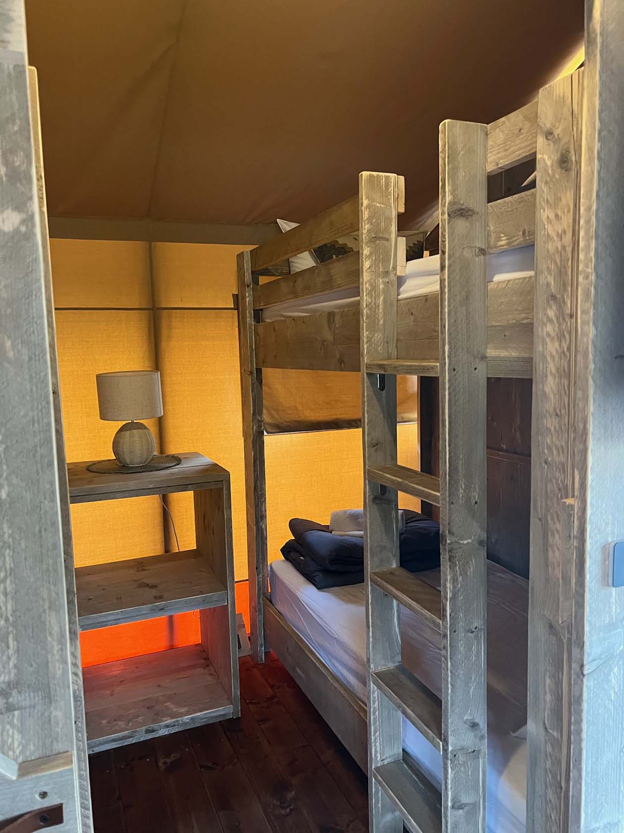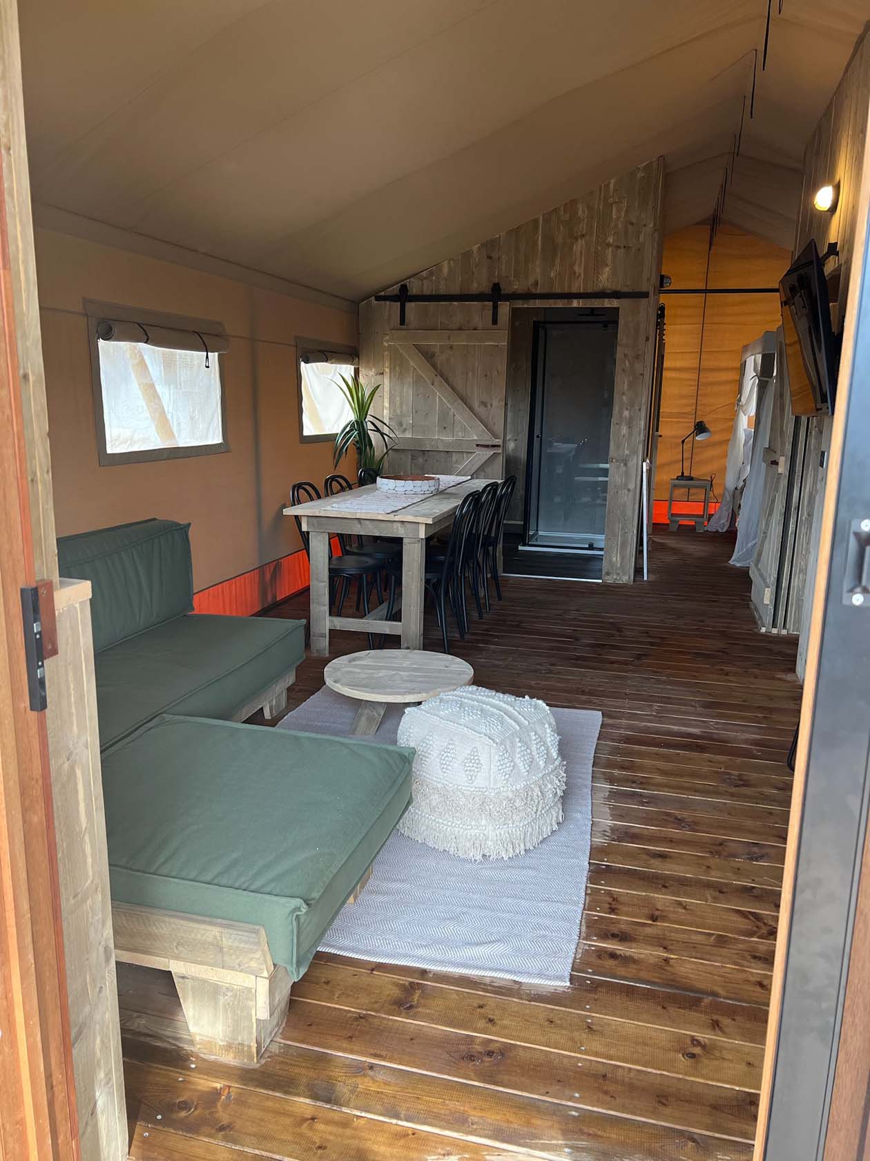 Your glamping experience will be unmatched! These Luxury Family Tents sleep up to six guests with a spacious and climate-controlled interior including a queen bed and two bunks, as well as an ensuite bathroom, living area and kitchen, plus a large private deck with BBQ.