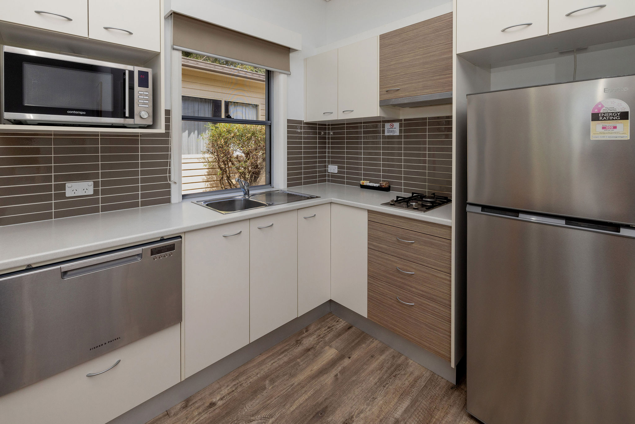Our Family Villas offer the perfect blend of space and comfort for your next family getaway. Accommodating up to 8 guests, these modern villas feature two bedrooms (queen bed in the main, two sets of single bunks in the second), a double fold-out sofa bed in the living area and a fully self-contained kitchen.