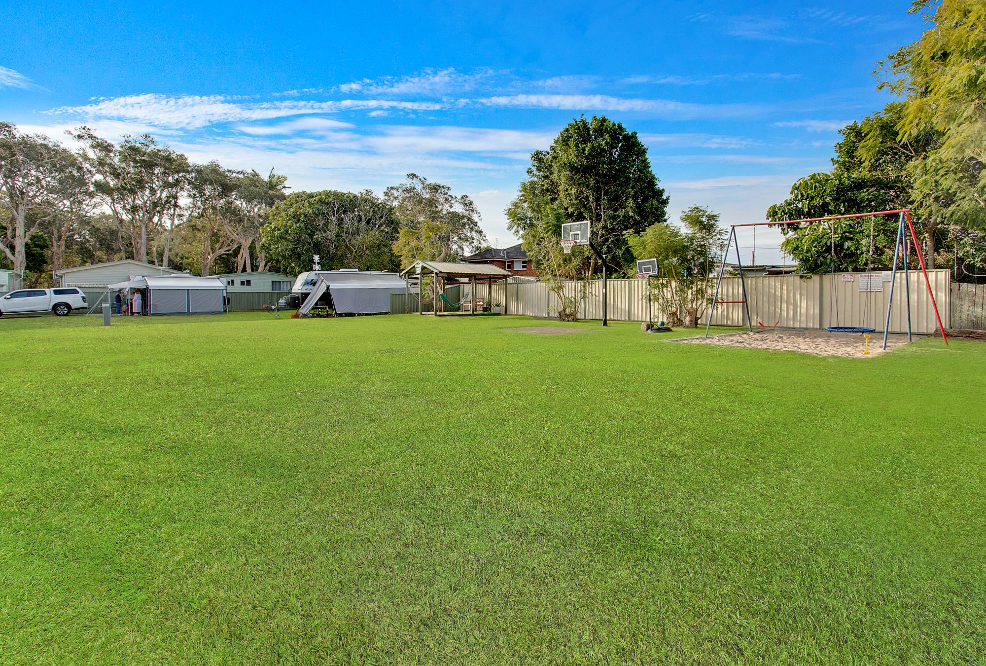 A charming seaside retreat in North Haven, just south of Port Macquarie, North Haven Holiday Village (formerly Jacaranda Holiday Park) evokes the delightful seaside holidays of childhood and provides everything for a relaxing break. Our landscaped Port Macquarie caravan park sits next to the Camden River and is a short walk to the beach, break wall, cafes, and local restaurants. On-site facilities include a swimming pool, children's playground, camp kitchen, and BBQs. We offer a variety of accommodation options, including bungalows and cabins, as well as powered sites for all your camping and caravanning needs.