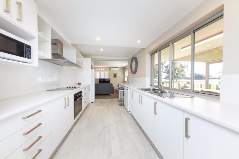 Positioned overlooking the lake on ground level with a large deck and BBQ. Two queen beds, one single bed and one set of bunks. Featuring air conditioning; 2 bedrooms; 2 bathrooms; full kitchen with stove top, oven, dishwasher and fridge; spacious dining and lounge area with TV; laundry facilities; outdoor dining with BBQ.