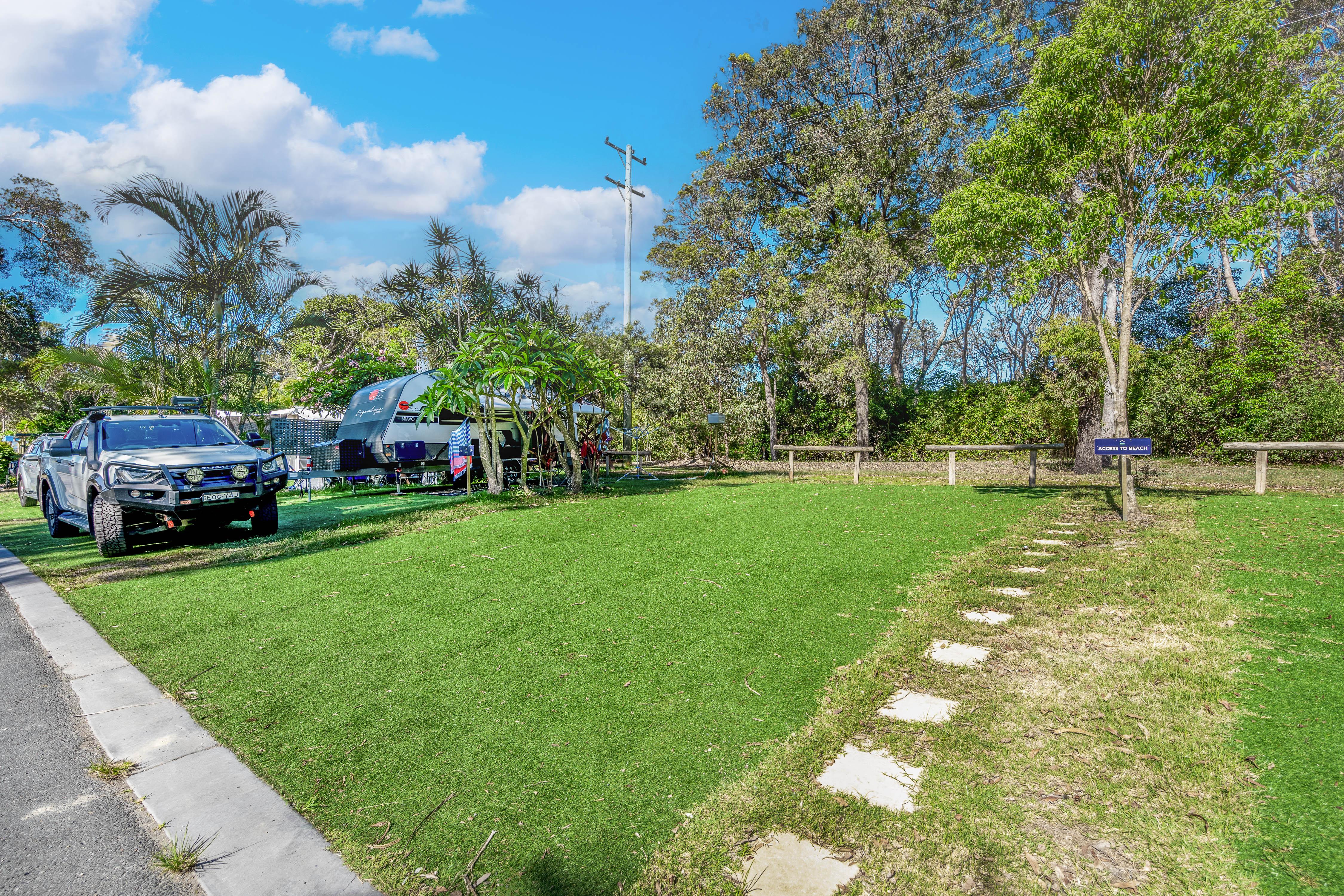 These evergreen sites vary in length from 8 to 9 metres, located on the peaceful beach reserve, a short stroll to the beach.