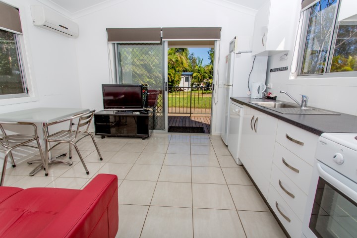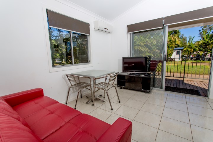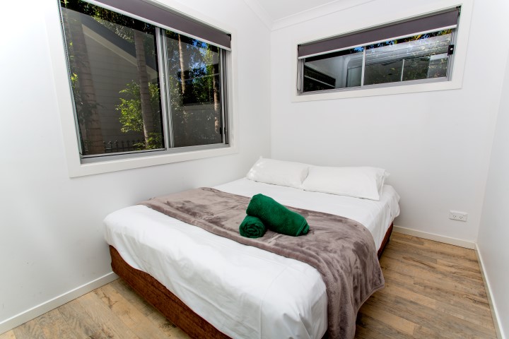 This thoughtfully designed cabin is ideal for small families travelling with pets or anyone needing a little extra accessibility and comfort. It’s cosy, practical, and surrounded by the natural beauty of the resort.