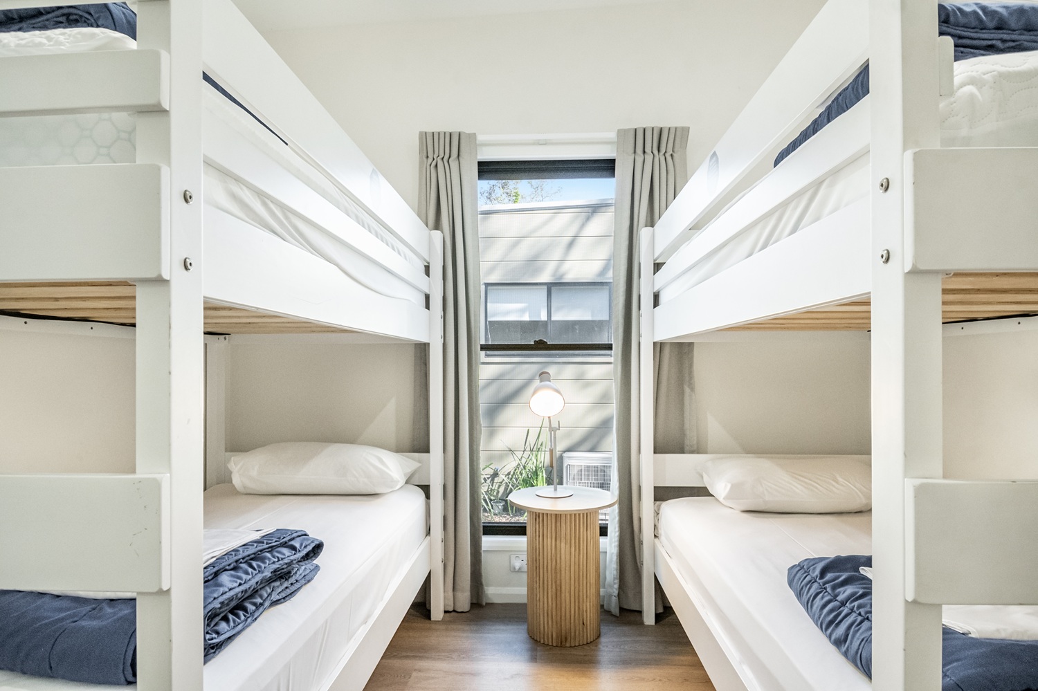 The Duranbah's are our largest range of cabins. They feature three bedrooms that can accommodate up to 8 guests, making them ideal for one large family, or two small families.