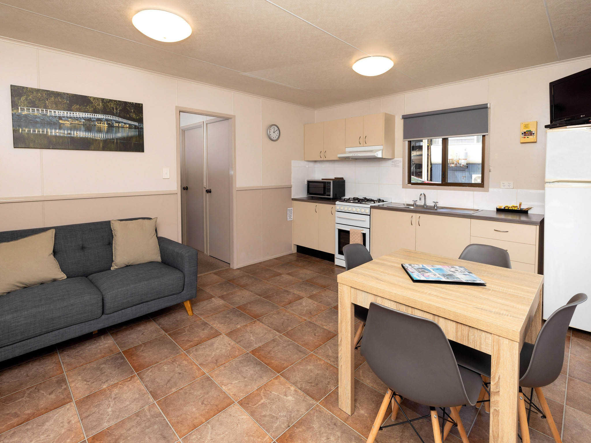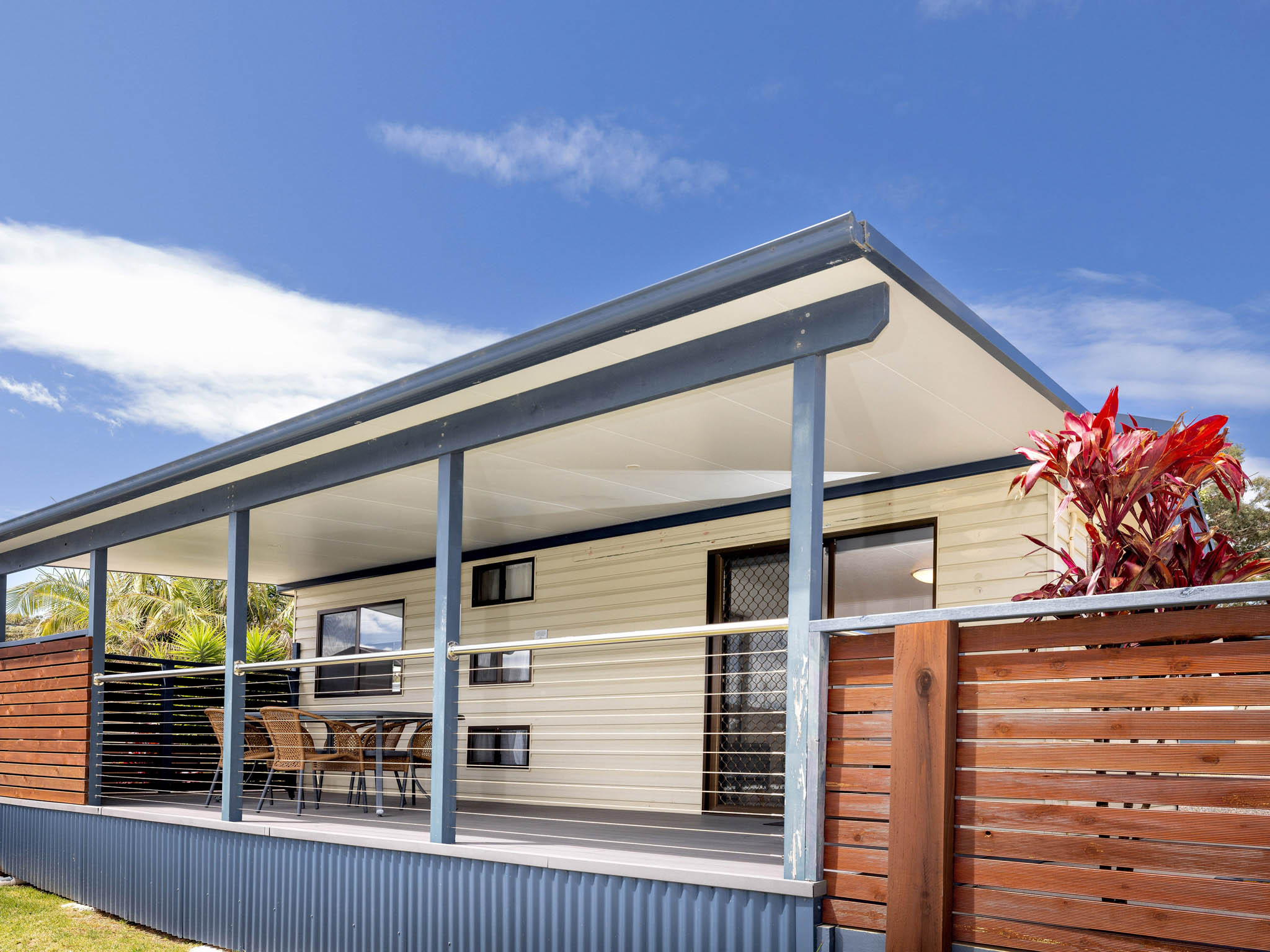 Ideal for couples or small families, this one-bedroom villa sleeps up to four guests with a queen bed in the bedroom and a bunk set in the hallway. The open-plan living area includes air conditioning, a TV and DVD player. A full kitchen with oven, stovetop, microwave and fridge-freezer makes meal prep easy, while the verandah with BBQ and outdoor seating is perfect for relaxing outdoors.