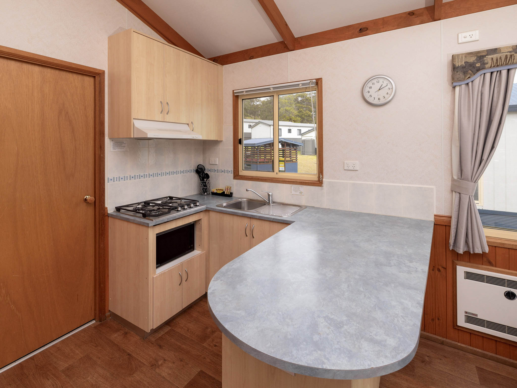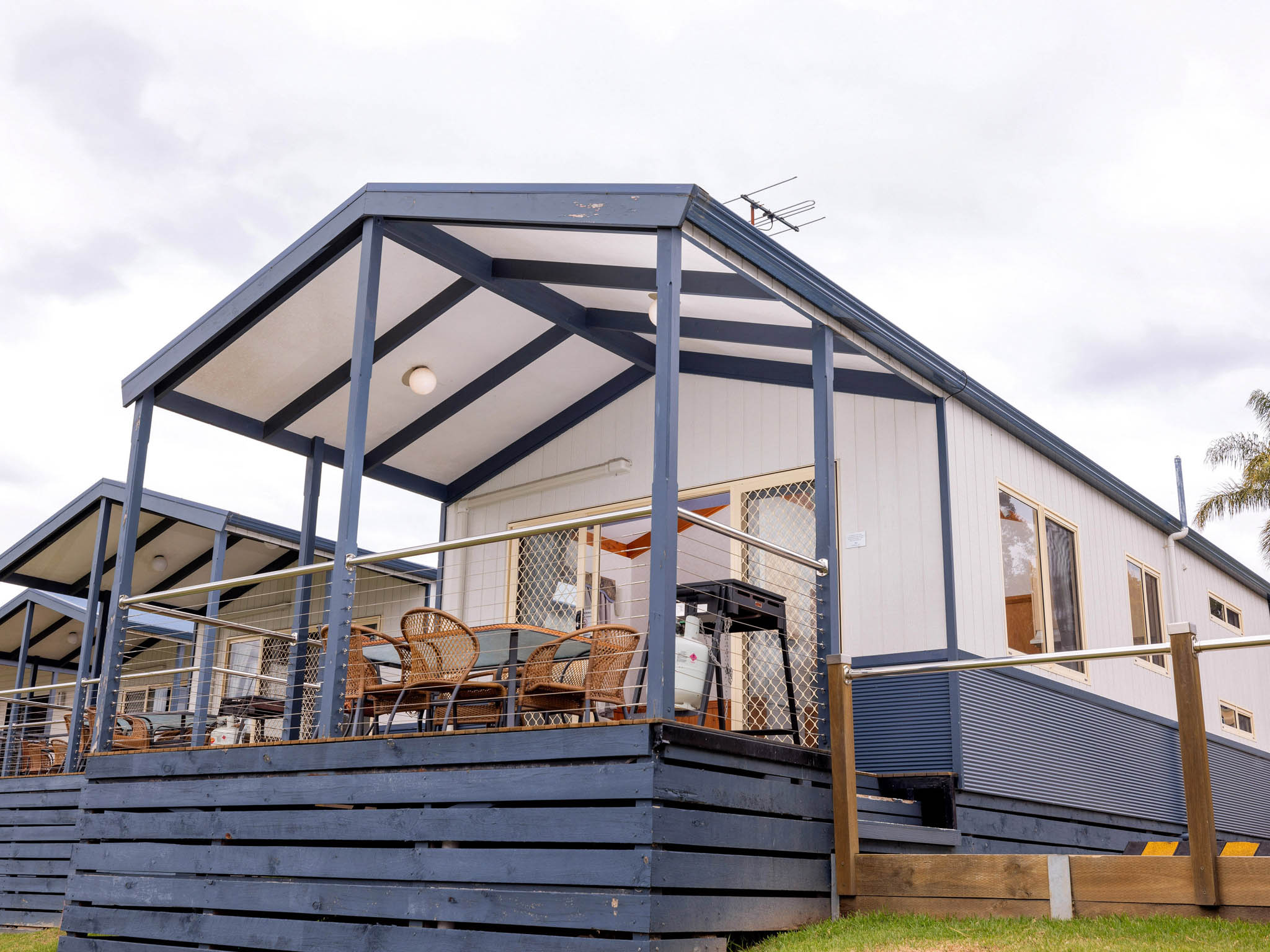 This practical villa sleeps up to six guests with a queen bed in the main bedroom and two sets of bunk beds in the second. The kitchen includes a microwave, stovetop and fridge-freezer, while the lounge area offers a TV, DVD player and reverse cycle air conditioning. Step outside to a verandah with BBQ and outdoor setting—ideal for enjoying the coastal breeze.