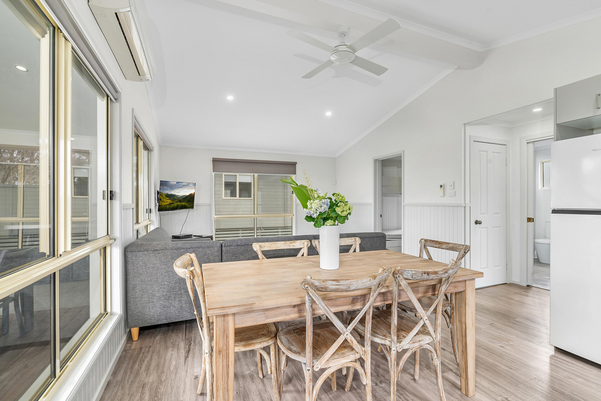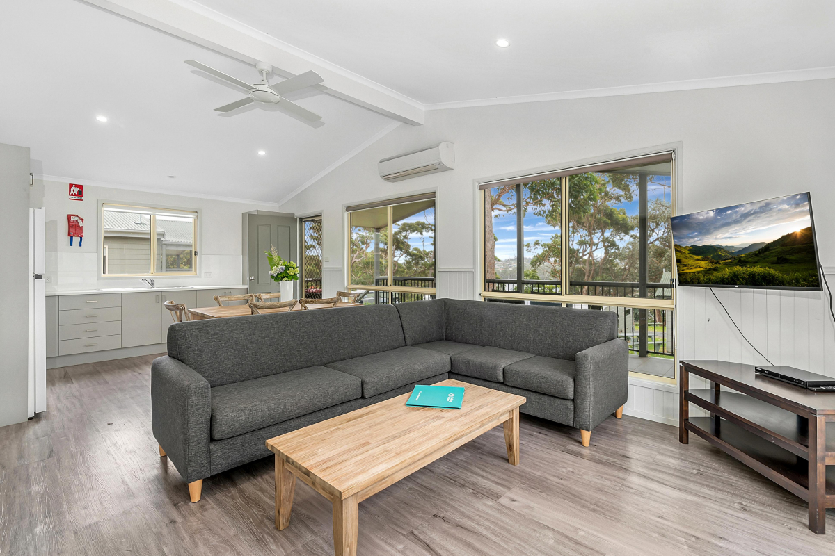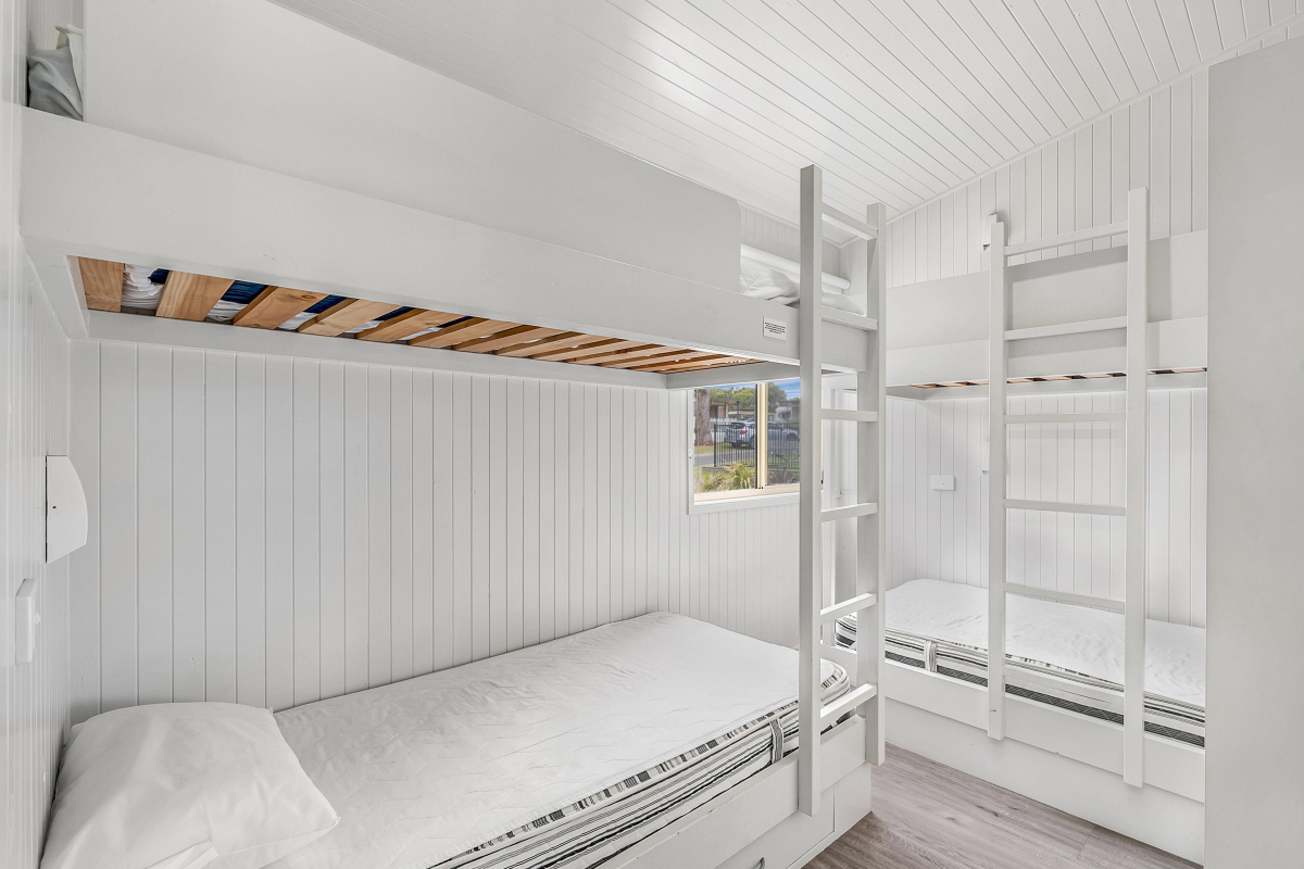 The main bedroom has a queen bed with a TV in the room and the 2nd room has two sets of bunks. There is a reverse cycle air-conditioner, and all linen is provided to make your stay extra comfortable all year round.