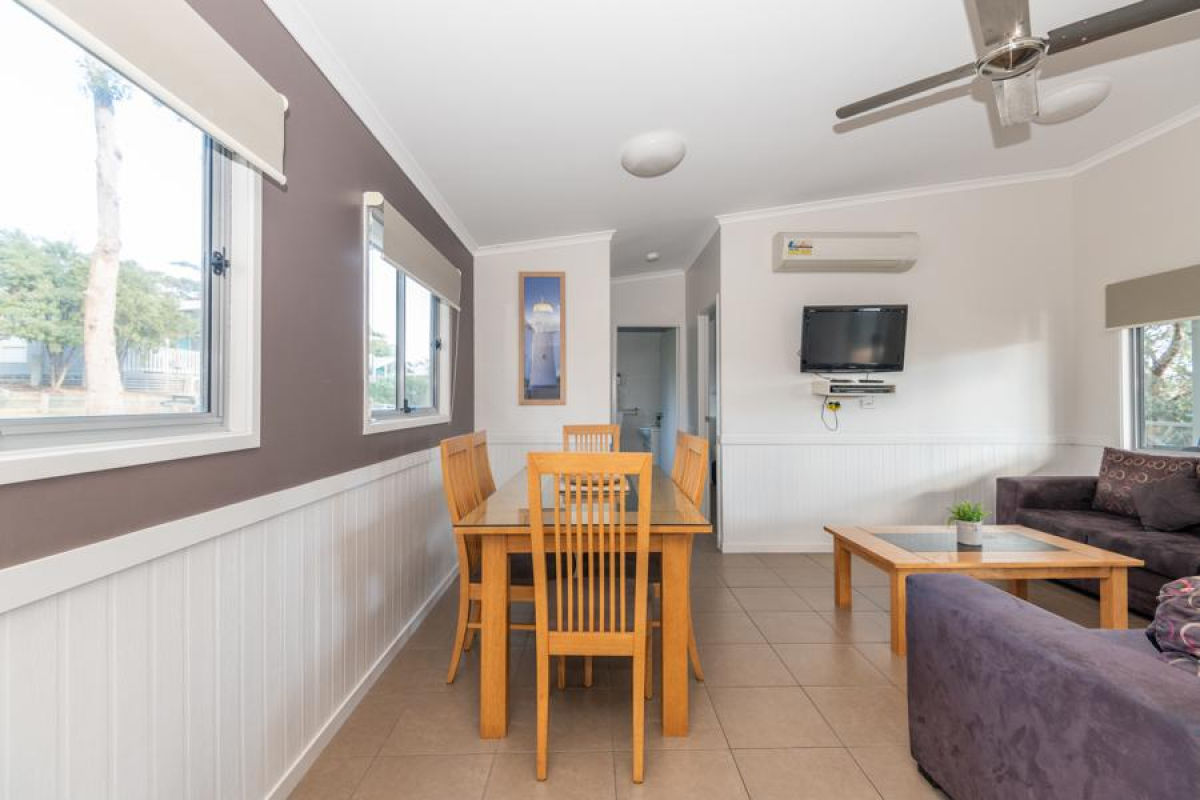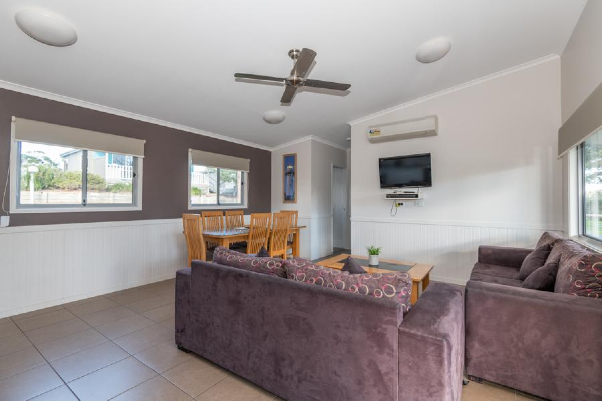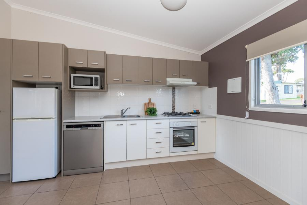 The spacious living area has a fully equipped kitchen including dishwasher to give you more time to relax. The Sea Breeze cabin also has reverse cycle air-conditioning, and all linen is provided.
