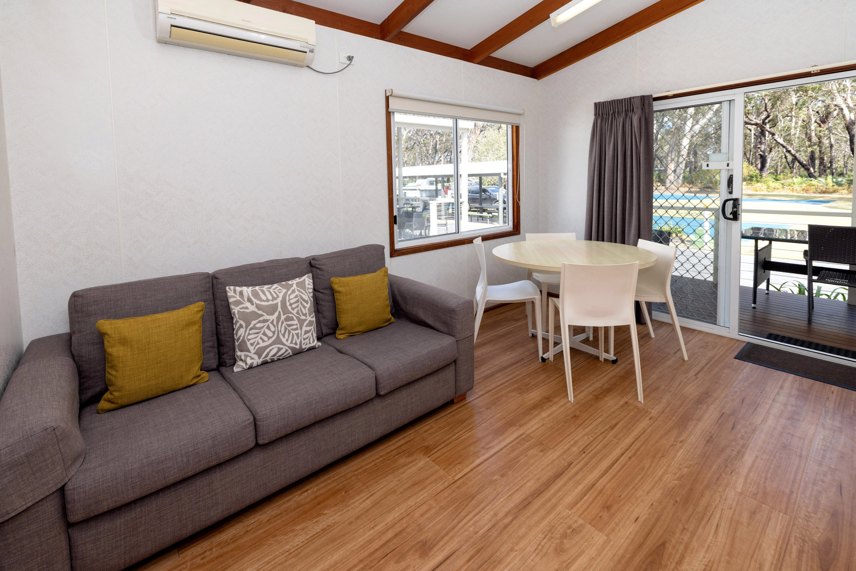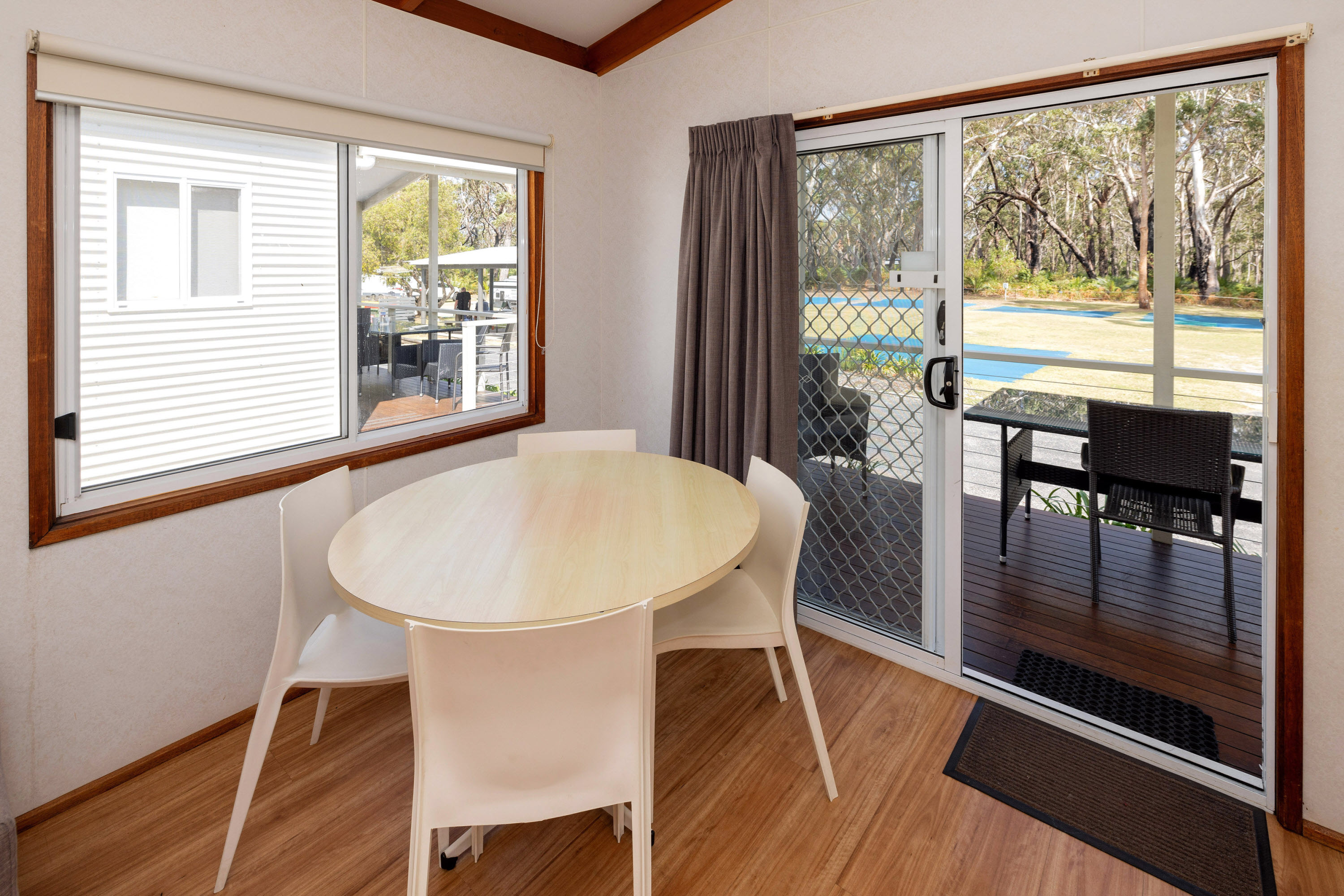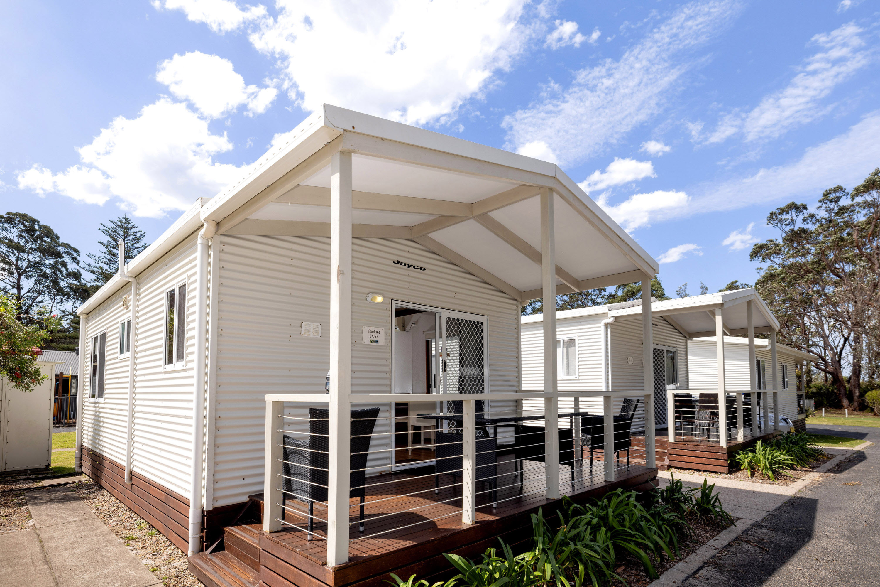 Families will love the spacious veranda and modern outdoor setting. The cabin is close to the undercover BBQ area and overlooks native bushland. All linen, doonas, pillows and bath towels are provided.
