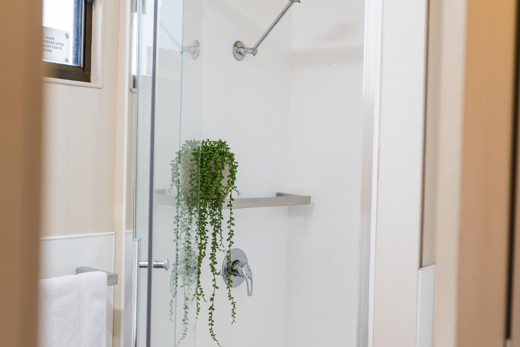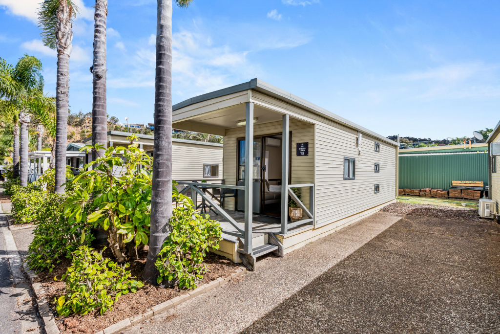 The Ensuite Cabin range of accommodation is an amazing budget choice and is fantastic for those families watching the dollar. We pride ourselves on the cleanliness and maintenance of all accommodation and the Ensuite Cabin is no exception. This cabin sleeps up to 5 people with a double bed (all made up) at rear, triple bunks (linen packs provided) in hall opposite bathroom and a combined lounge, dining, kitchen area. Reverse cycle air conditioning for comfort and verandah at front with table and chairs to enjoy the hibiscus garden surrounds.
