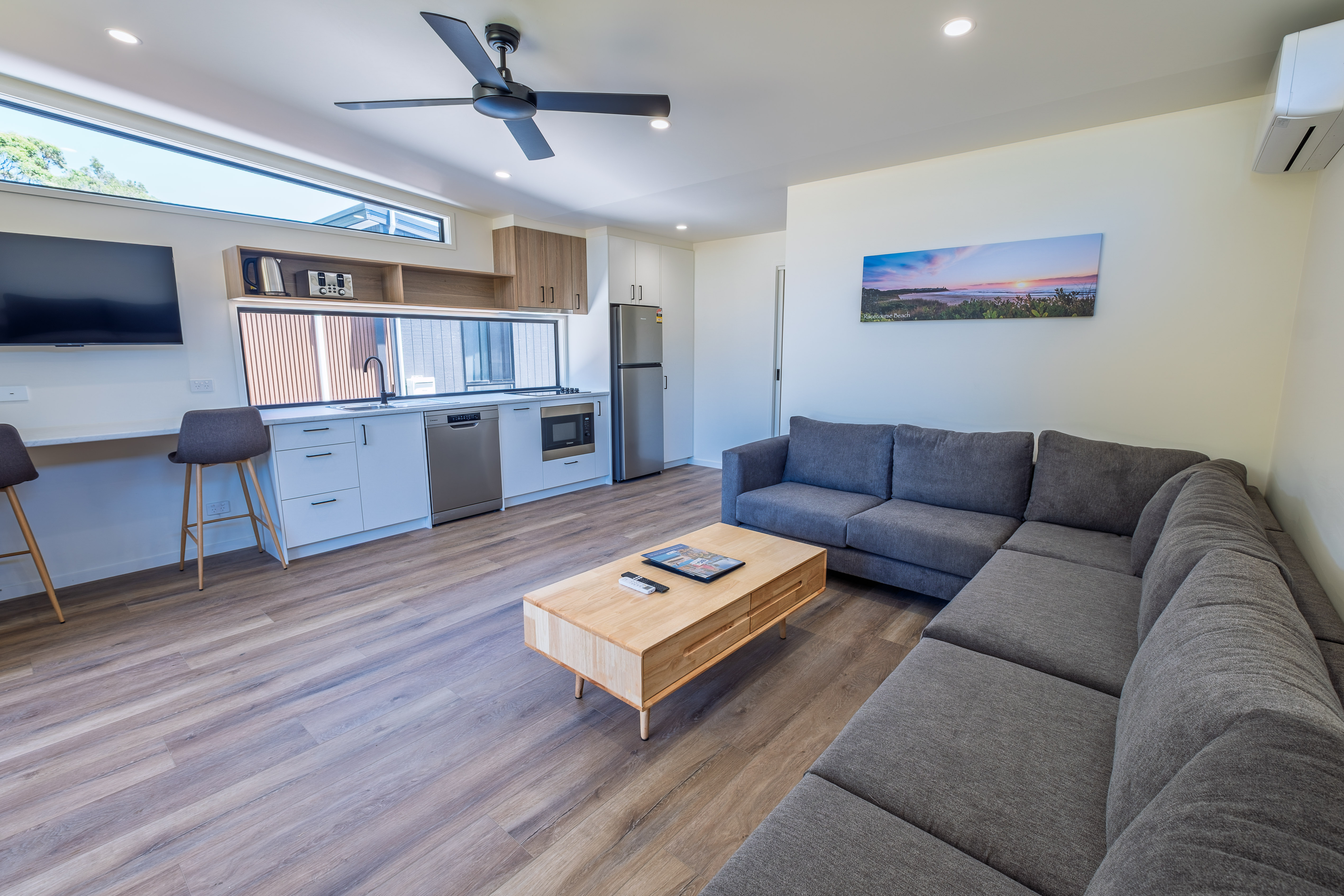 Our three bedroom Ensuite Villas offer accommodation for up to six people. They feature a well-appointed kitchen, open lounge area and two bathrooms. Guests can enjoy relaxing on the large deck, while overlooking nature and enjoying meals with outdoor dining.