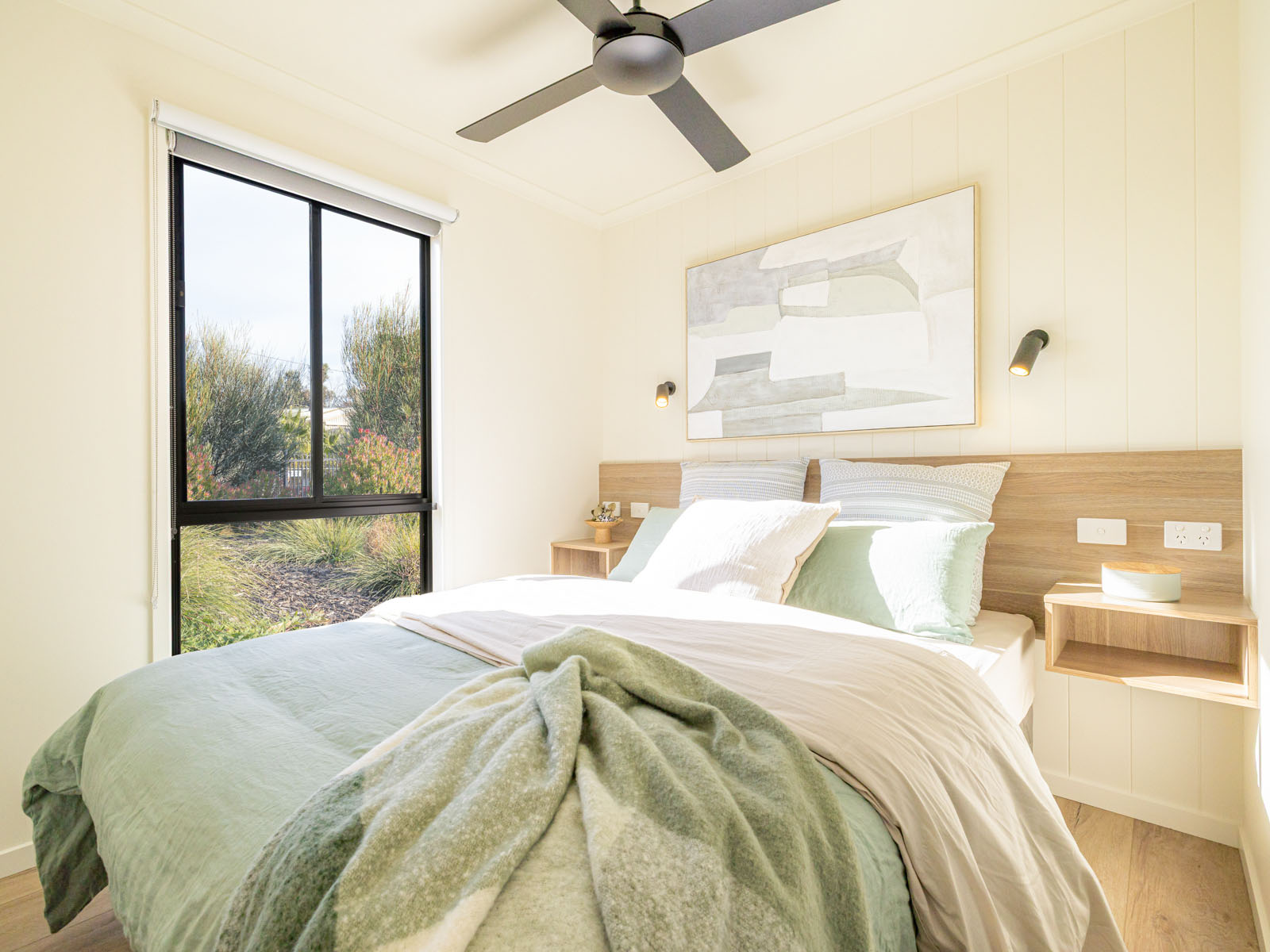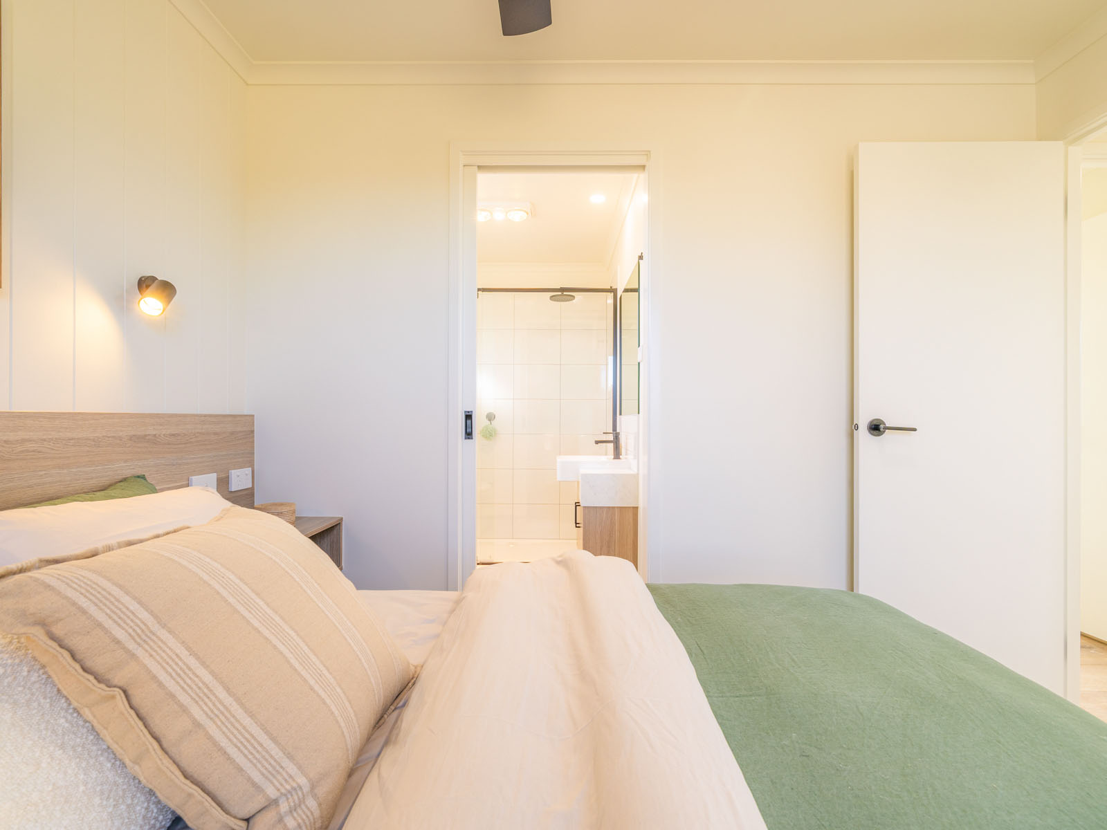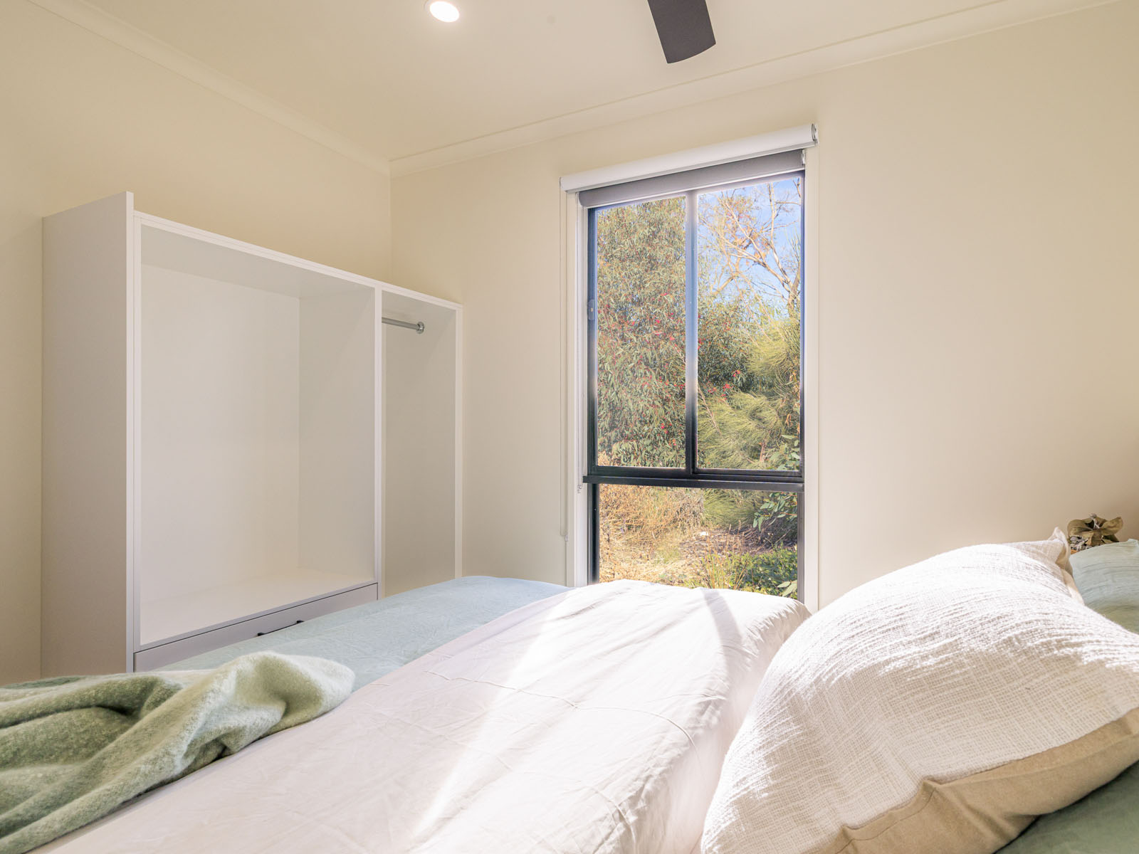 Sleeping up to six, it features two queen beds and a bunk—perfect for families or friends. The full kitchen includes a stovetop, microwave, dishwasher and full-size fridge. Enjoy the open-plan living area with lounge, TV and reverse-cycle air-conditioning for year-round comfort. Step out to your private patio with outdoor dining—ideal for alfresco breakfasts or evening relaxation.