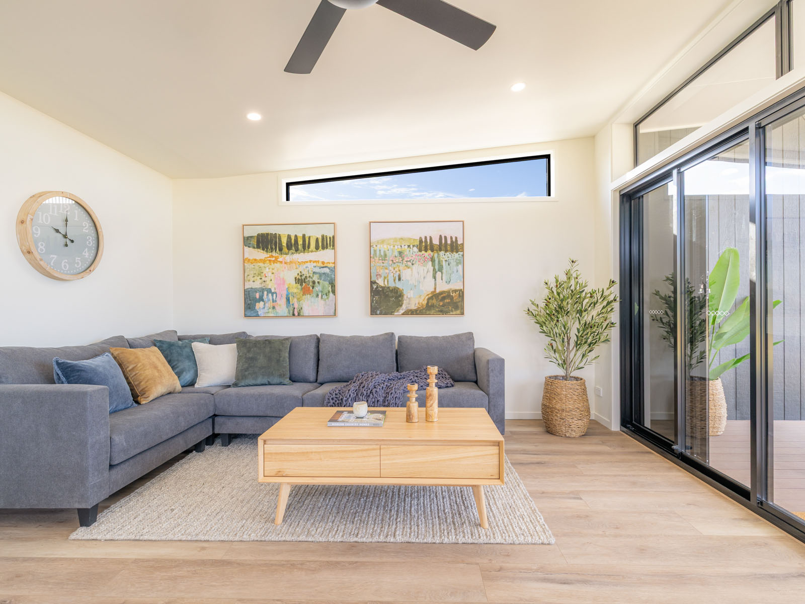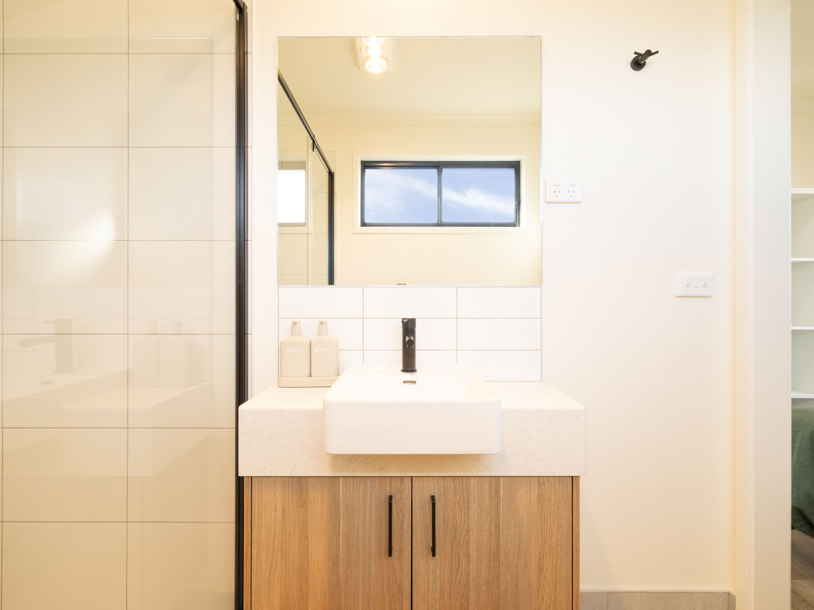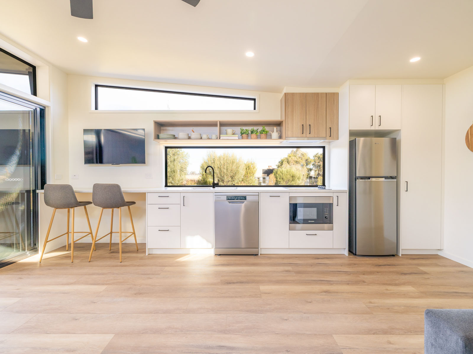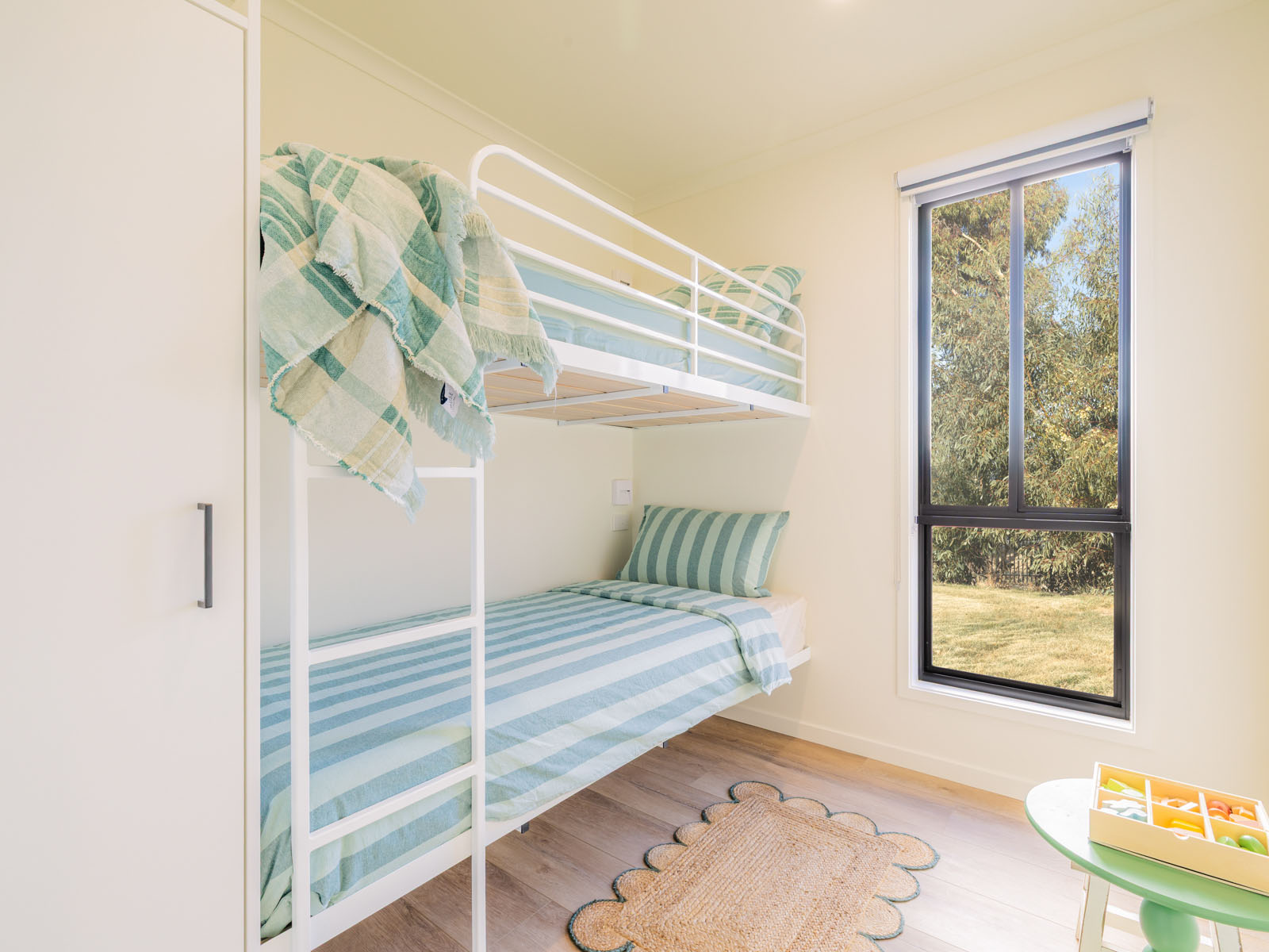 Sleeping up to six, it features two queen beds and a bunk—perfect for families or friends. The full kitchen includes a stovetop, microwave, dishwasher and full-size fridge. Enjoy the open-plan living area with lounge, TV and reverse-cycle air-conditioning for year-round comfort. Step out to your private patio with outdoor dining—ideal for alfresco breakfasts or evening relaxation.