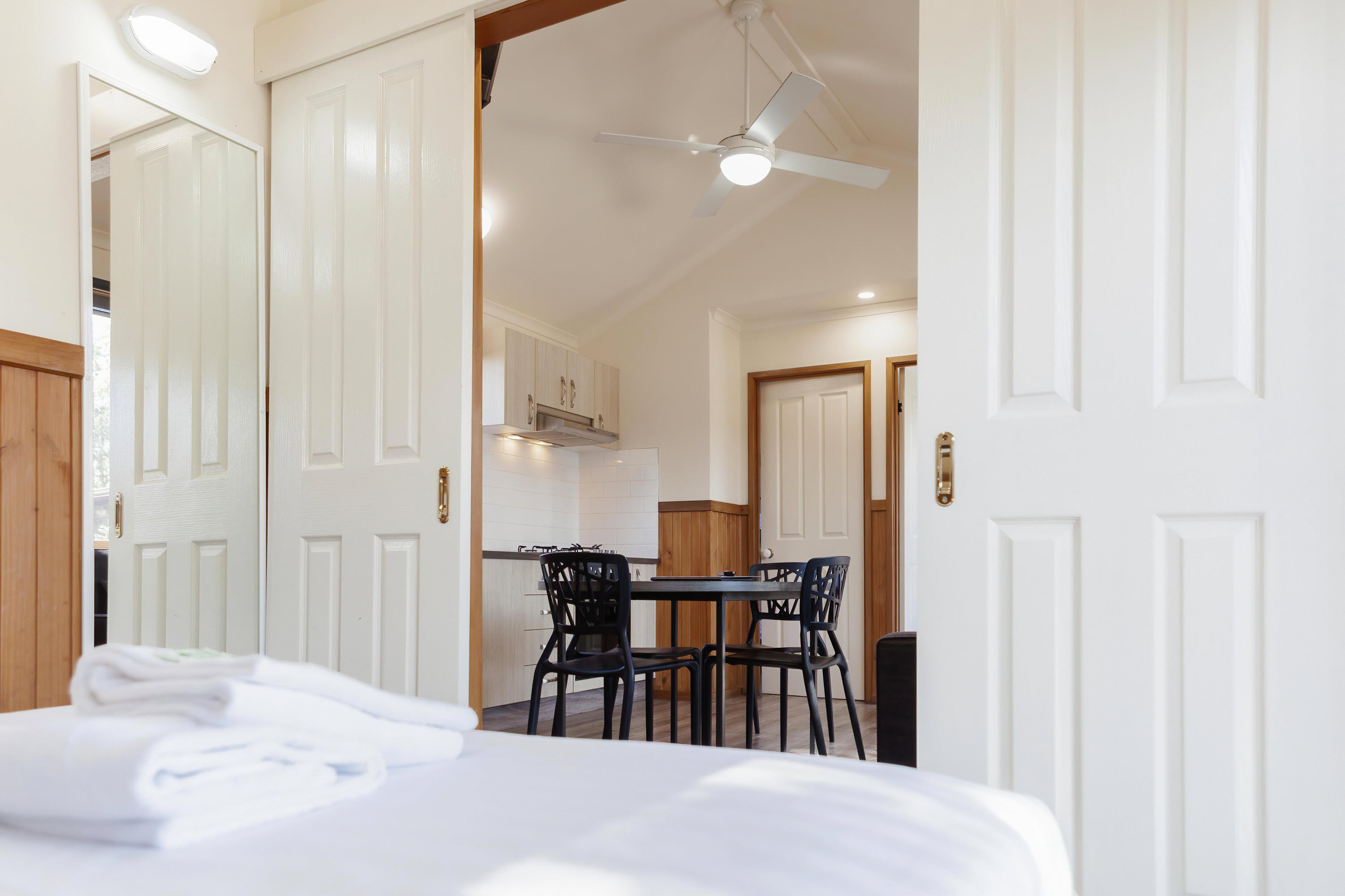 Feeding the troops will be a little more relaxing with a full kitchen as well as a lounge/dining area providing plenty of room for everyone to relax or join in the cooking. Of course, our three bedroom park cabin also comes with a flatscreen TV, reverse cycle A/C and parking alongside the cabin.