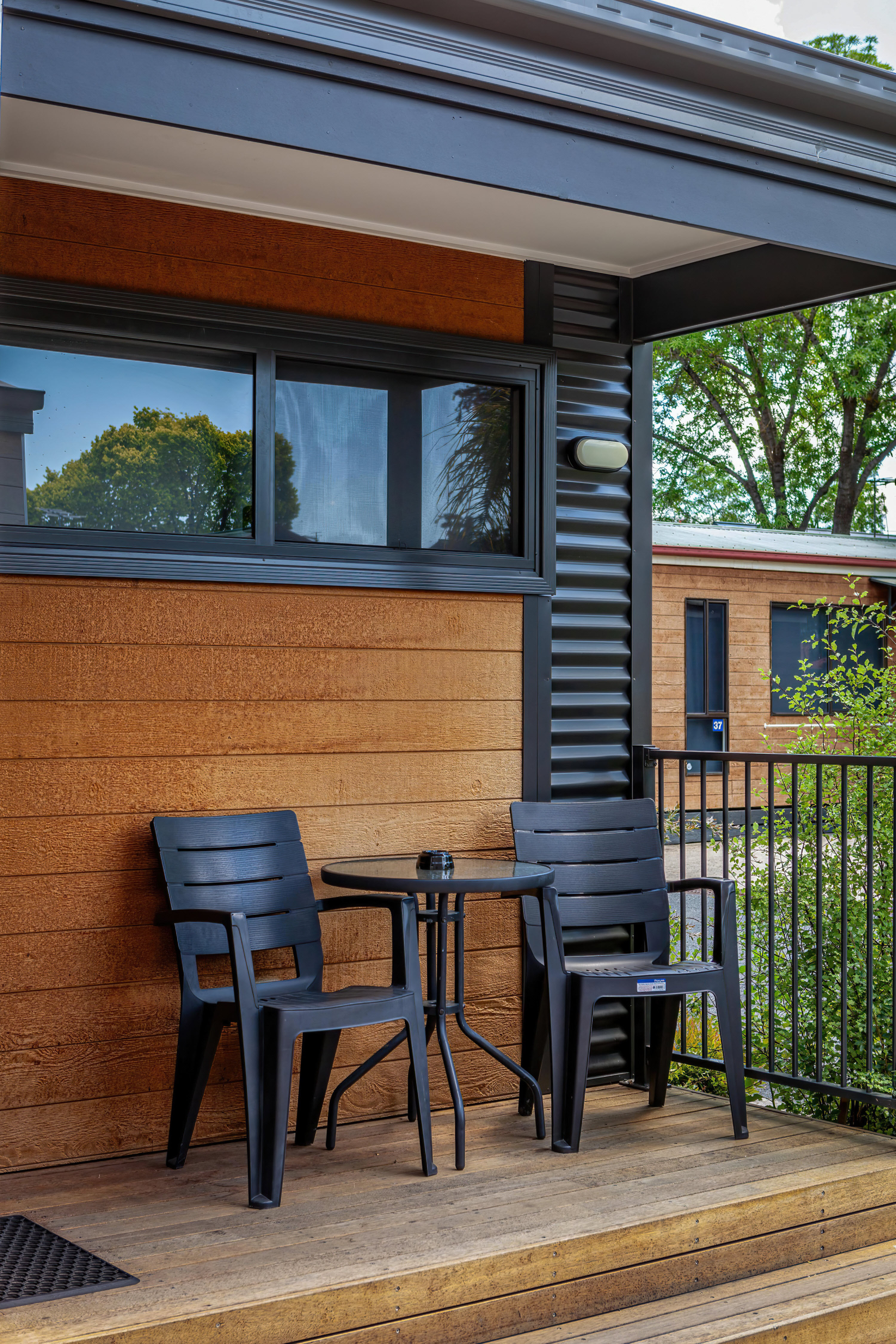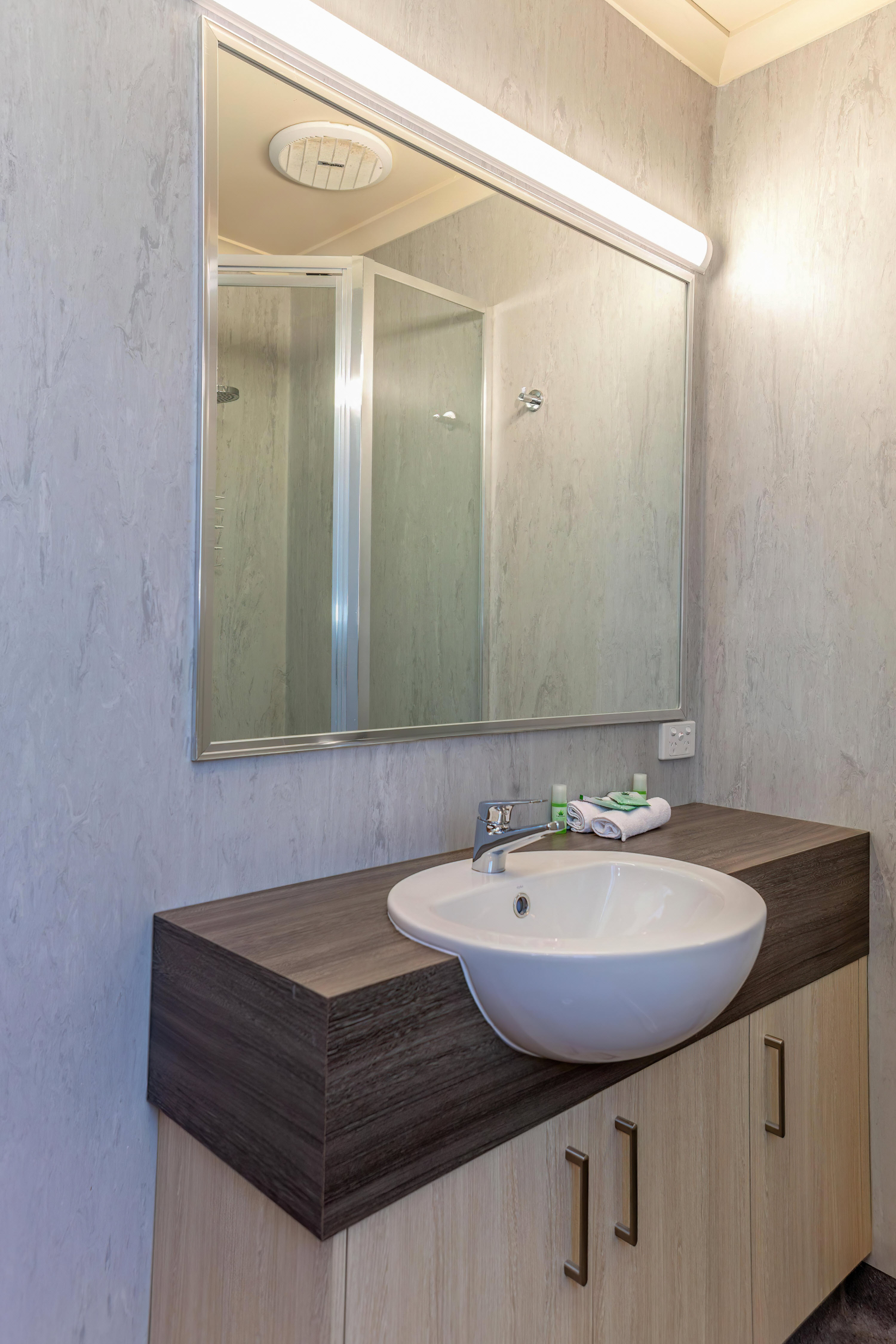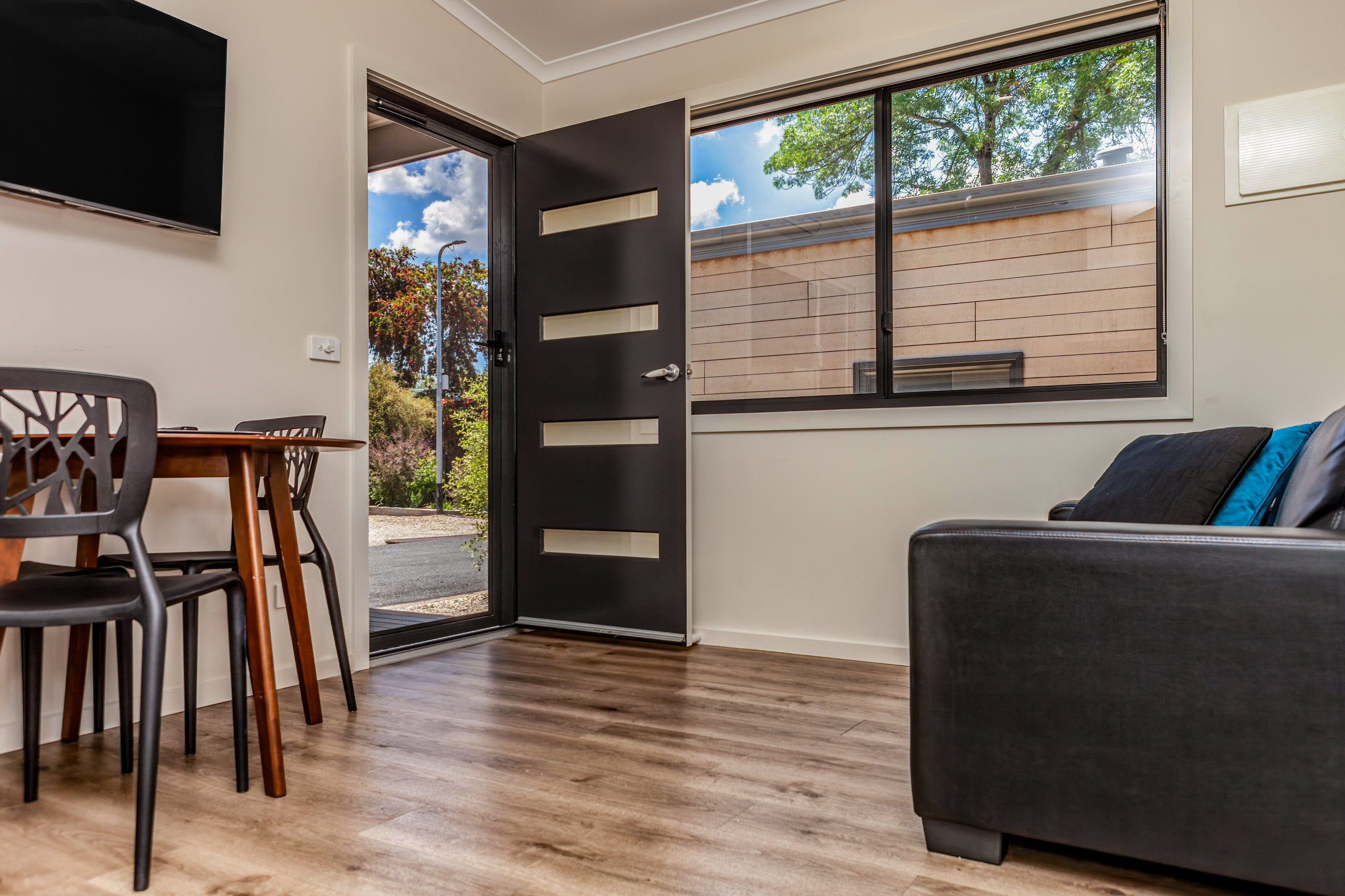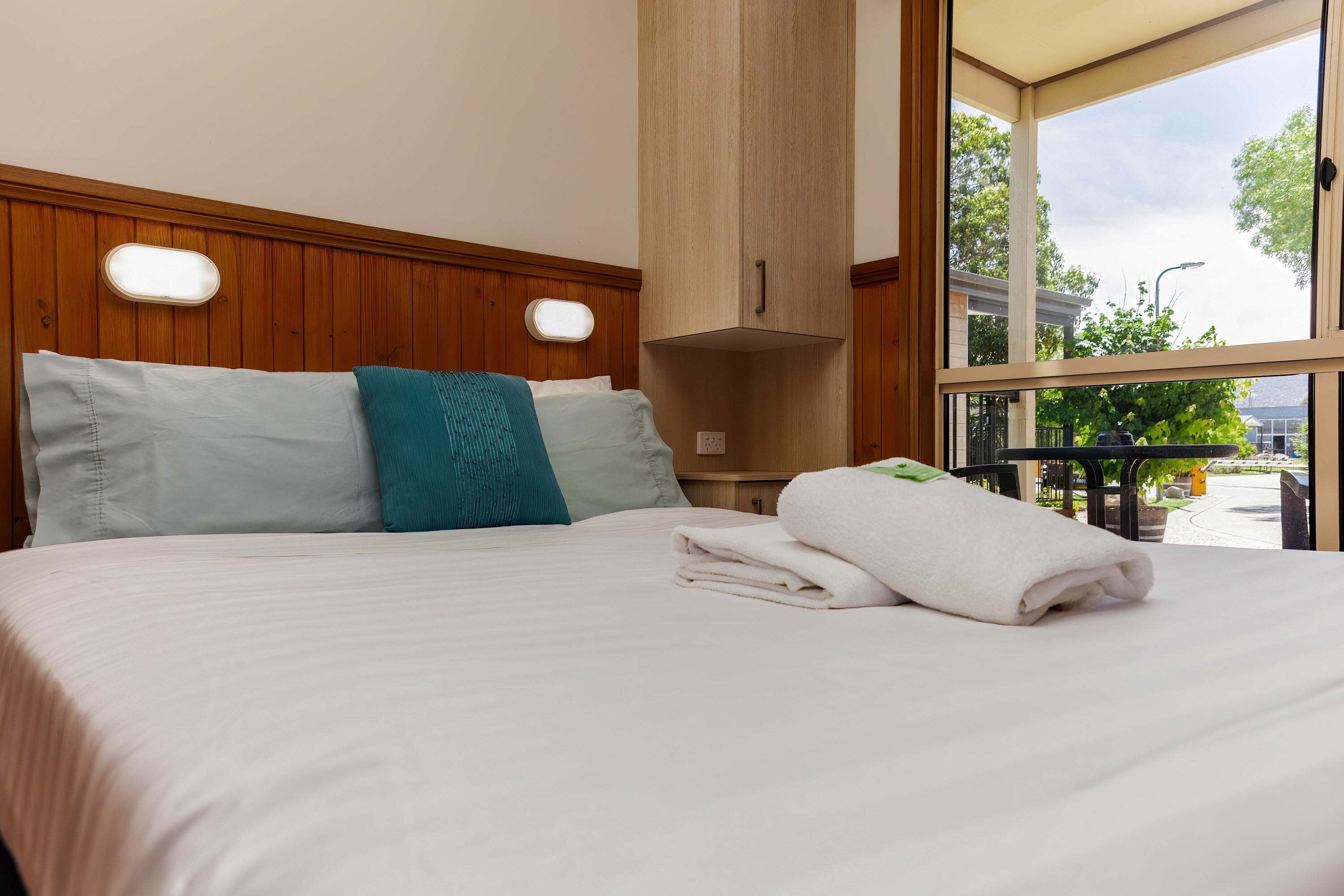 Our two bedroom standard cabins are perfect for families and overnight travellers. There is a queen bed in the main bedroom and in the second bedroom a choice of one set of bunks, or two single beds and a fold down bunk. They have a bathroom, full kitchen with lounge/dining, flatscreen TV, A/C and car parking alongside.
