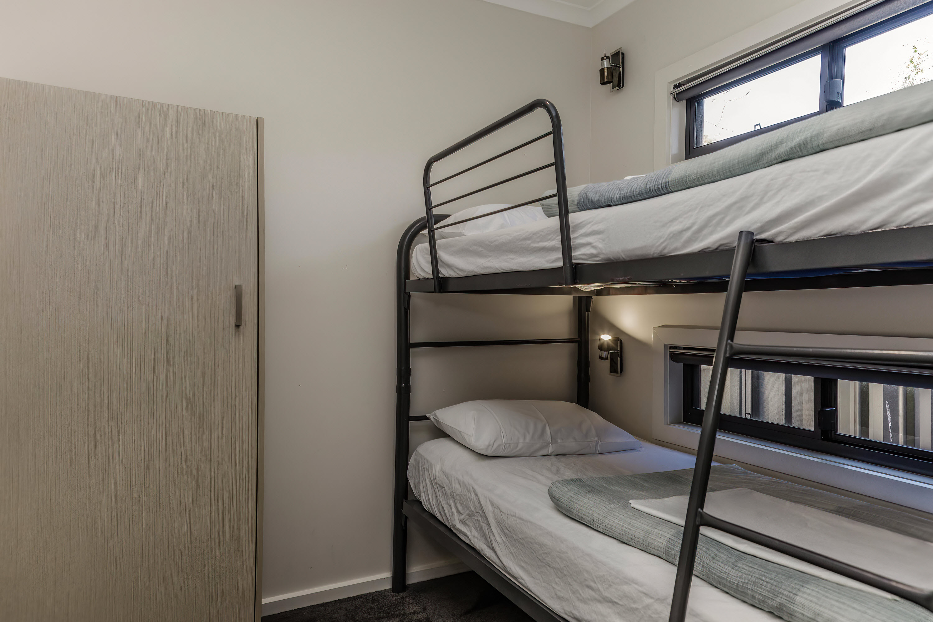 Australian standards relate to the use of bunk beds and state that "children under the age of 9 years are not permitted to sleep in the top bunk. Children must not play on top bunk" Please take this into consideration when making your booking.