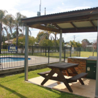 Our sparkling pool is solar heated with shade sail. The camp kitchen provides BBQ, cooktop, microwave, kettle, toaster, fridge/freezer, television, and tables and chairs. There is also an undercover BBQ near the pool. Our quiet park is only a one minute walk from the main street of Tocumwal.