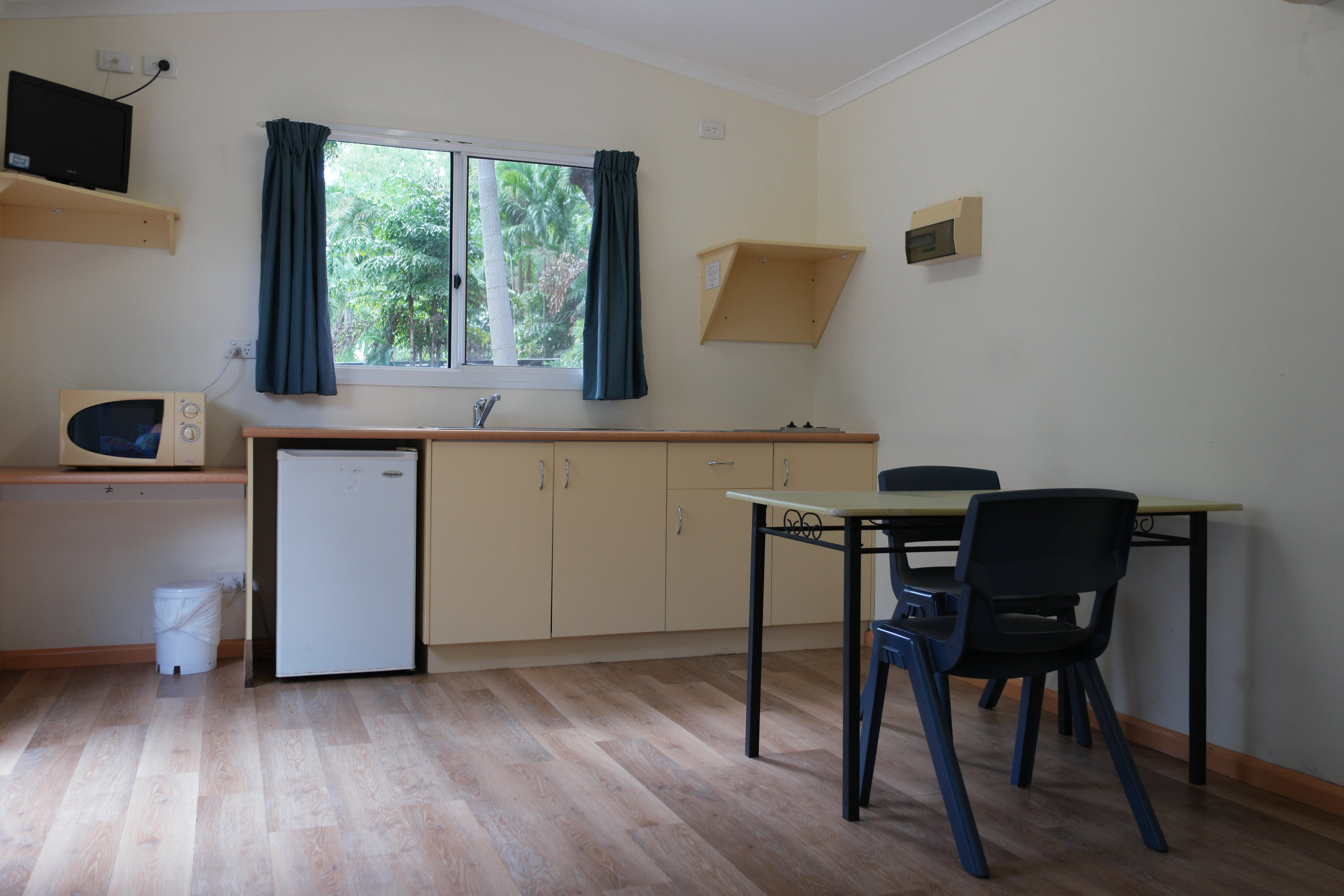 This studio is ideal for solo travellers or couples, featuring a comfortable queen bed and private ensuite. While compact, it includes a practical kitchenette with cooktop, microwave, and small fridge—perfect for preparing light meals. Relax in comfort with air conditioning and a TV.