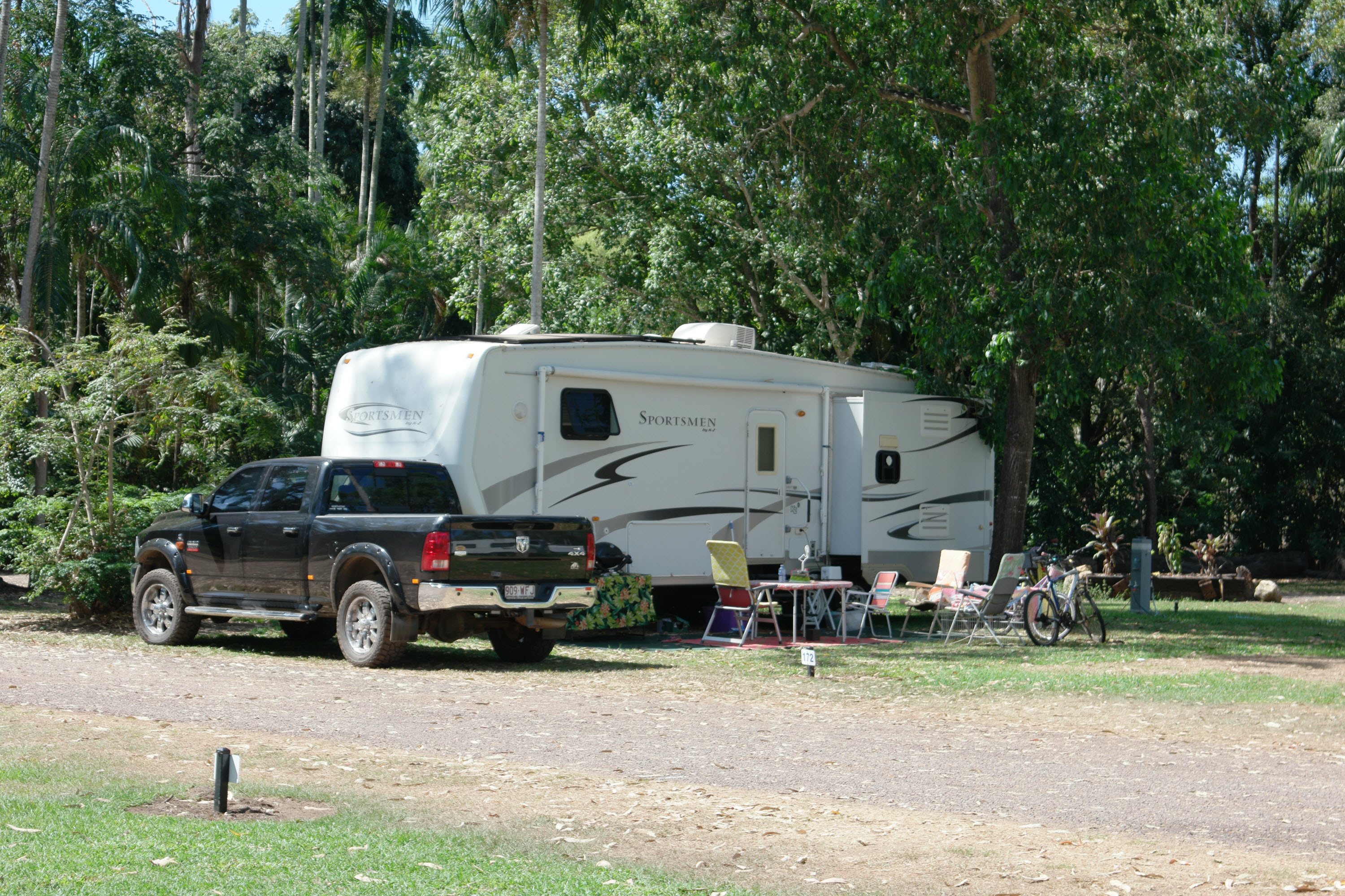 These powered sites provide a relaxed base among the park’s tropical gardens.