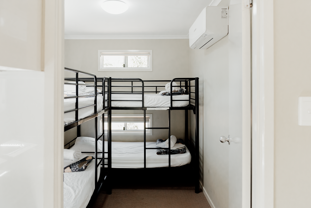 This spacious, open-plan cabins offers a queen bed in the main bedroom and two sets of bunk beds in the second bedroom.