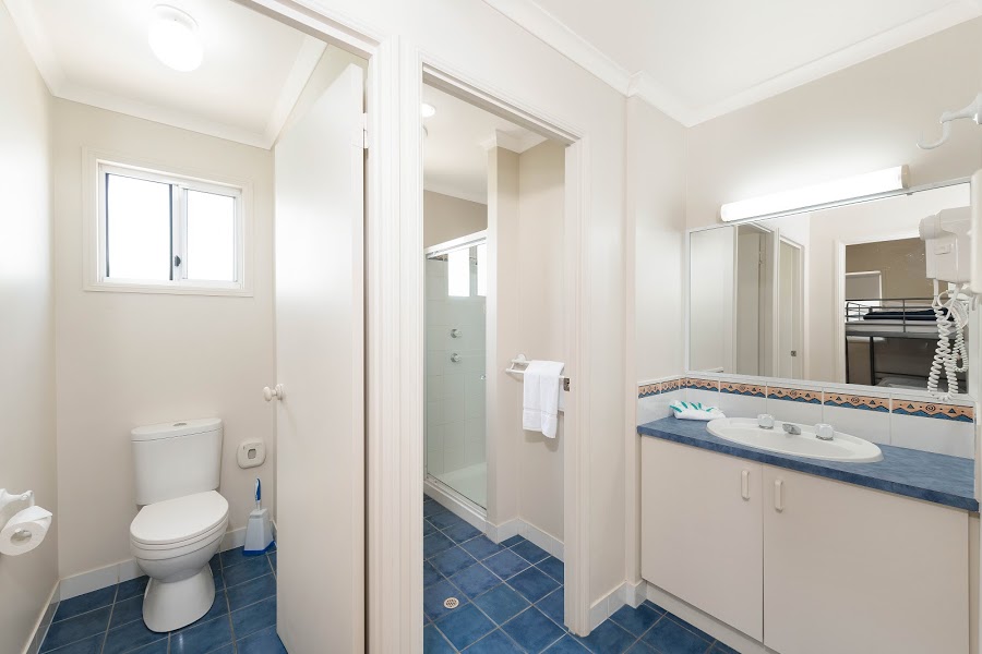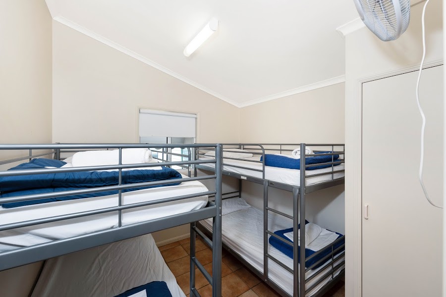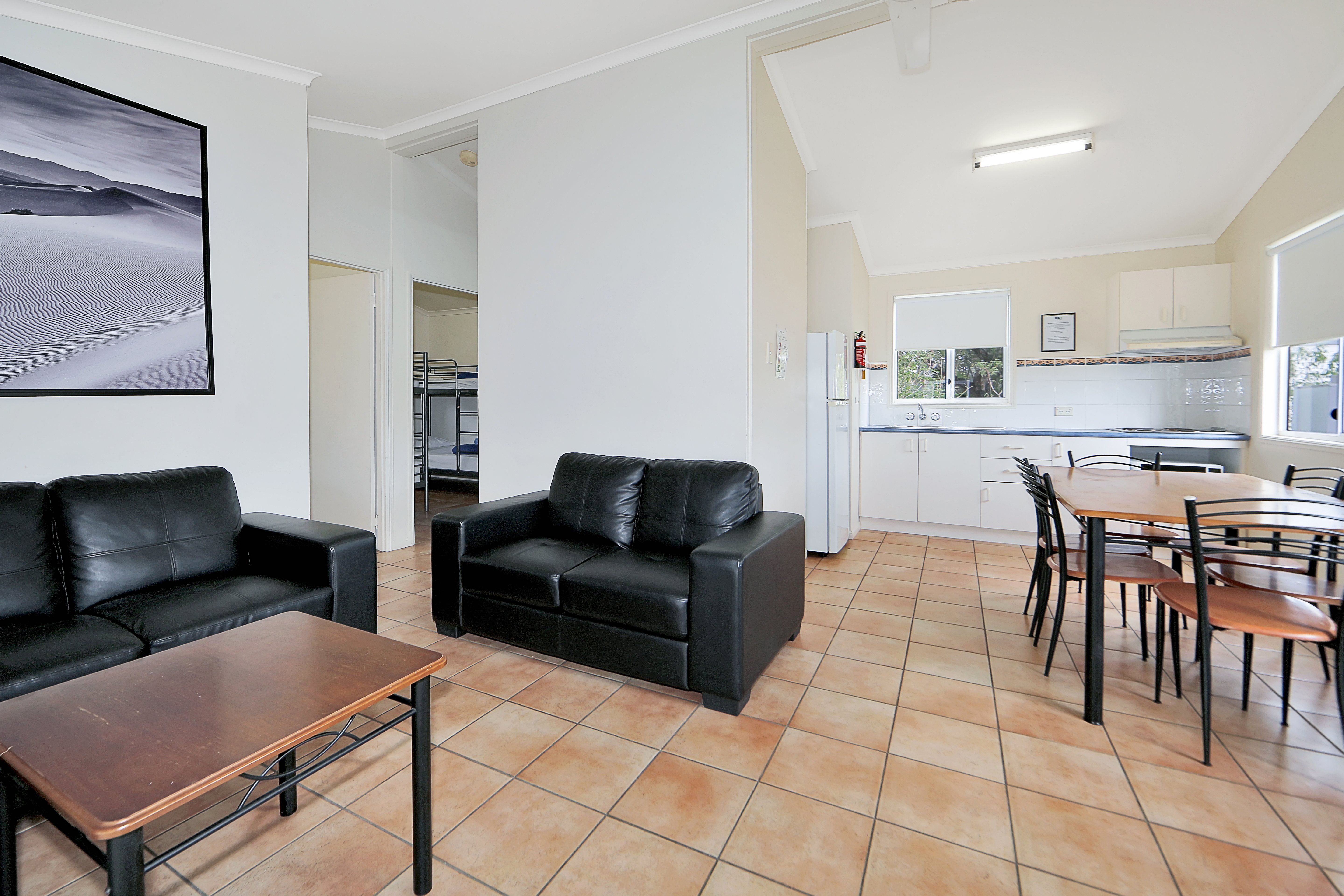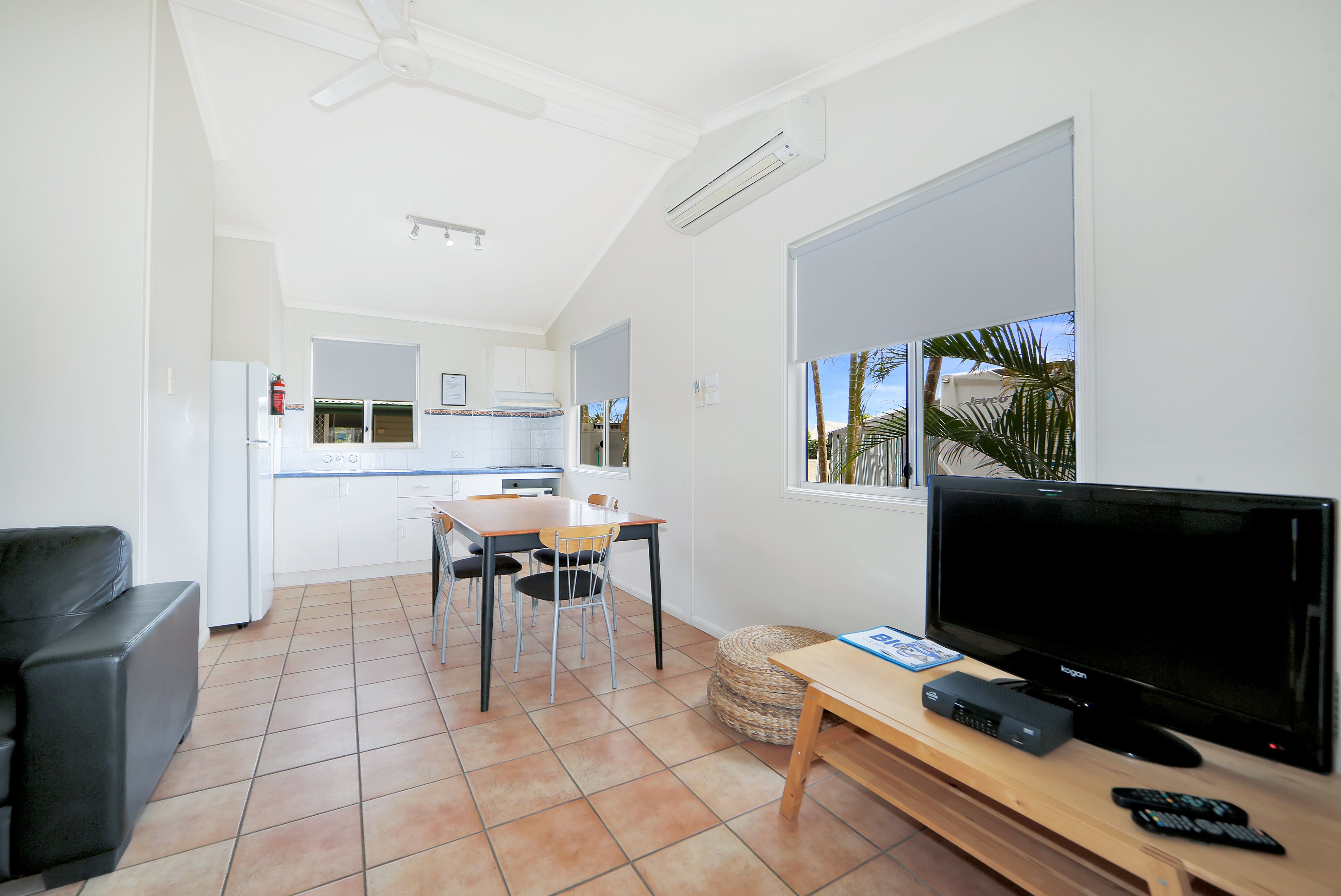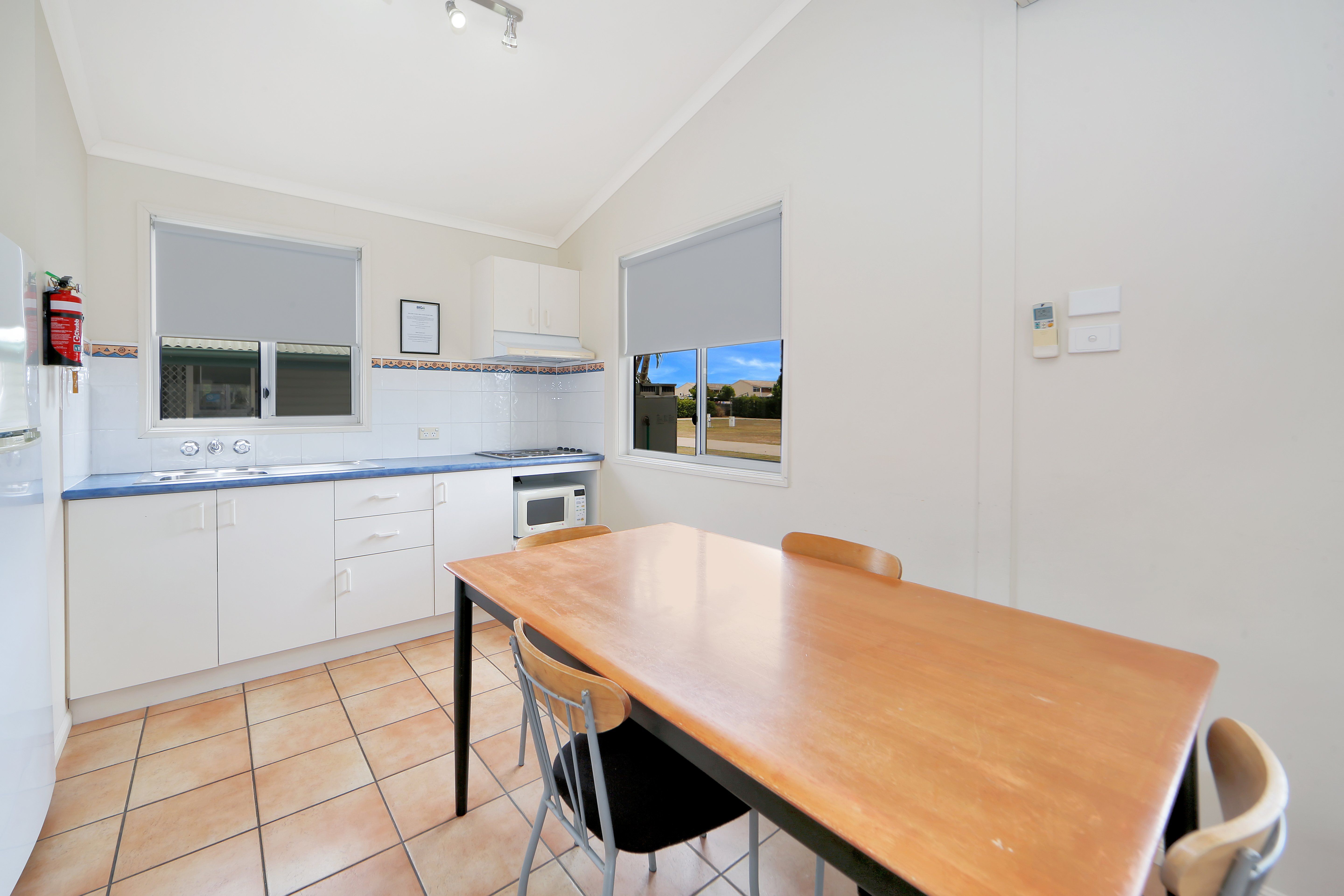 The Hinkler Villa is ideal for the larger family. The villa has two bedrooms, the main bedroom has a queen bed, and the second bedroom has two sets of bunk beds. All linen is supplied. There is a lounge setting in the comfortable living area with flat screen television, Foxtel, ceiling fans and reverse cycle air conditioner. Kitchen facilities include fridge/freezer, four burner stove top, microwave, electric frypan, all cooking utensils, crockery and cutlery, and complimentary tea and coffee. It features a large outdoor verandah area with plenty of seating.