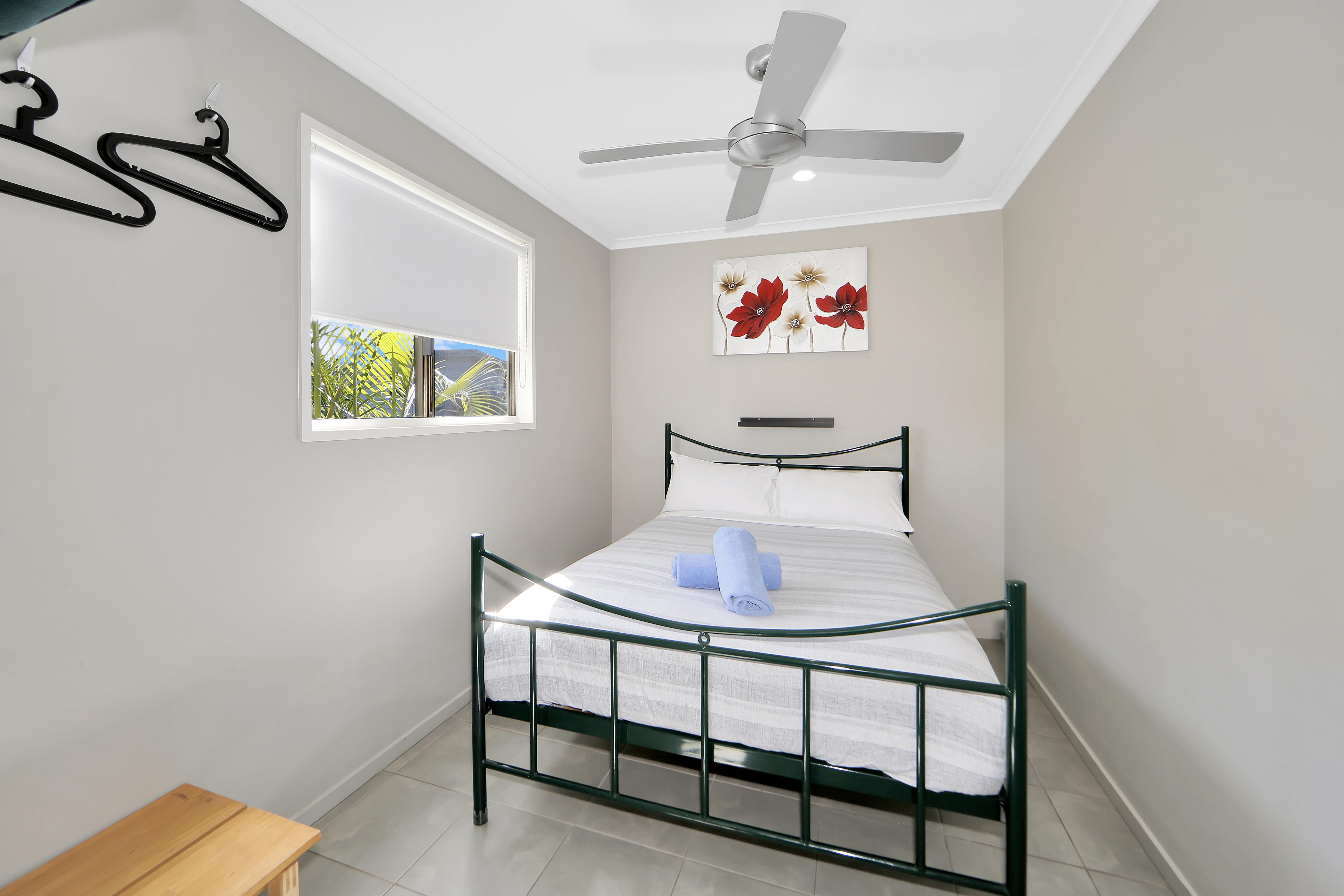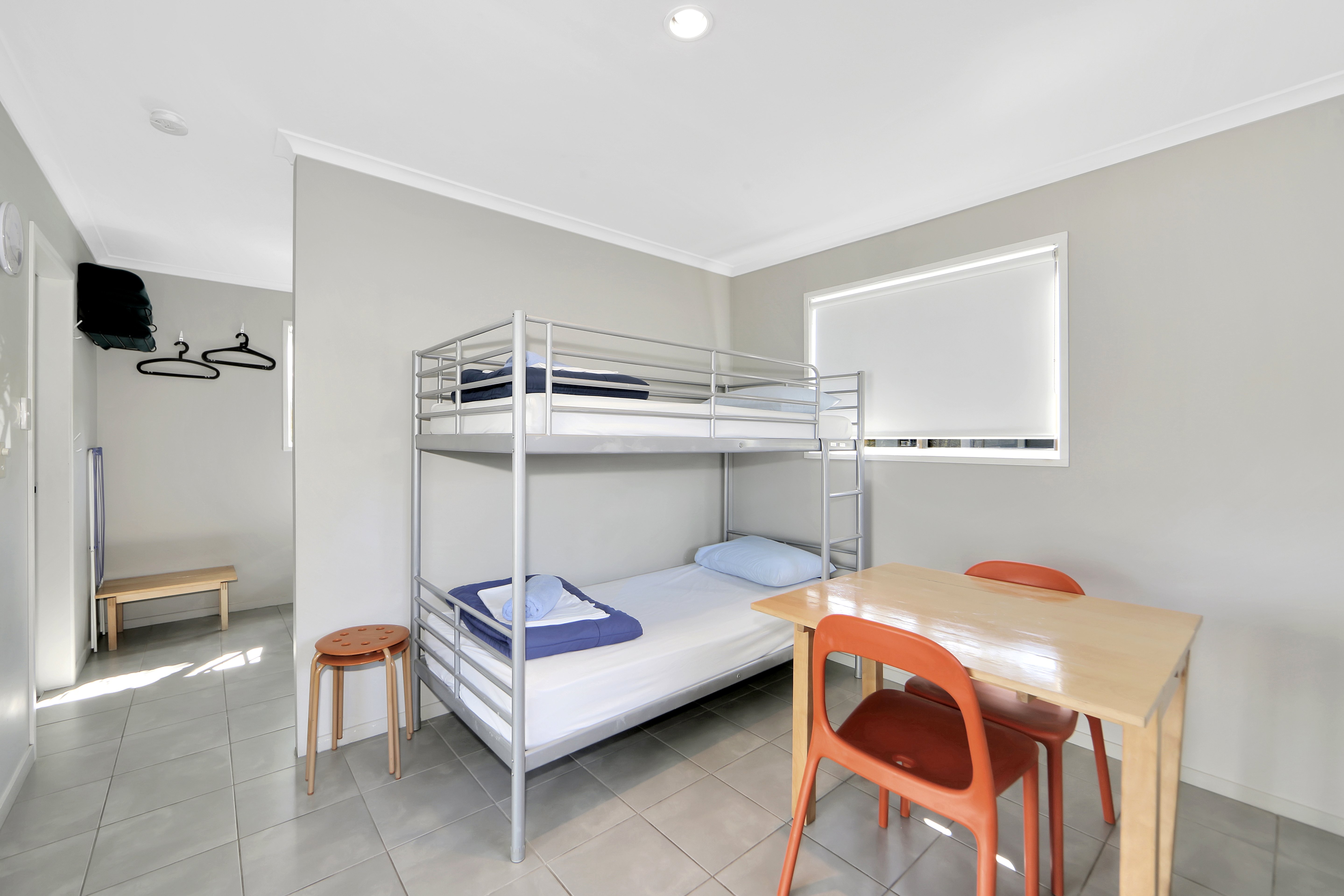 These smaller ensuite cabins are ideal for overnight stays or weekend getaways. The cabins have a double bed plus a set of bunks. Linen is provided for all beds. Fully self contained with reverse cycle air conditioning, TV, fridge/freezer, 2 burner hot plate, microwave, electric fry pan, saucepans, cooking utensils, crockery & cutlery. Complimentary tea & coffee. Outdoor undercover setting for 4.