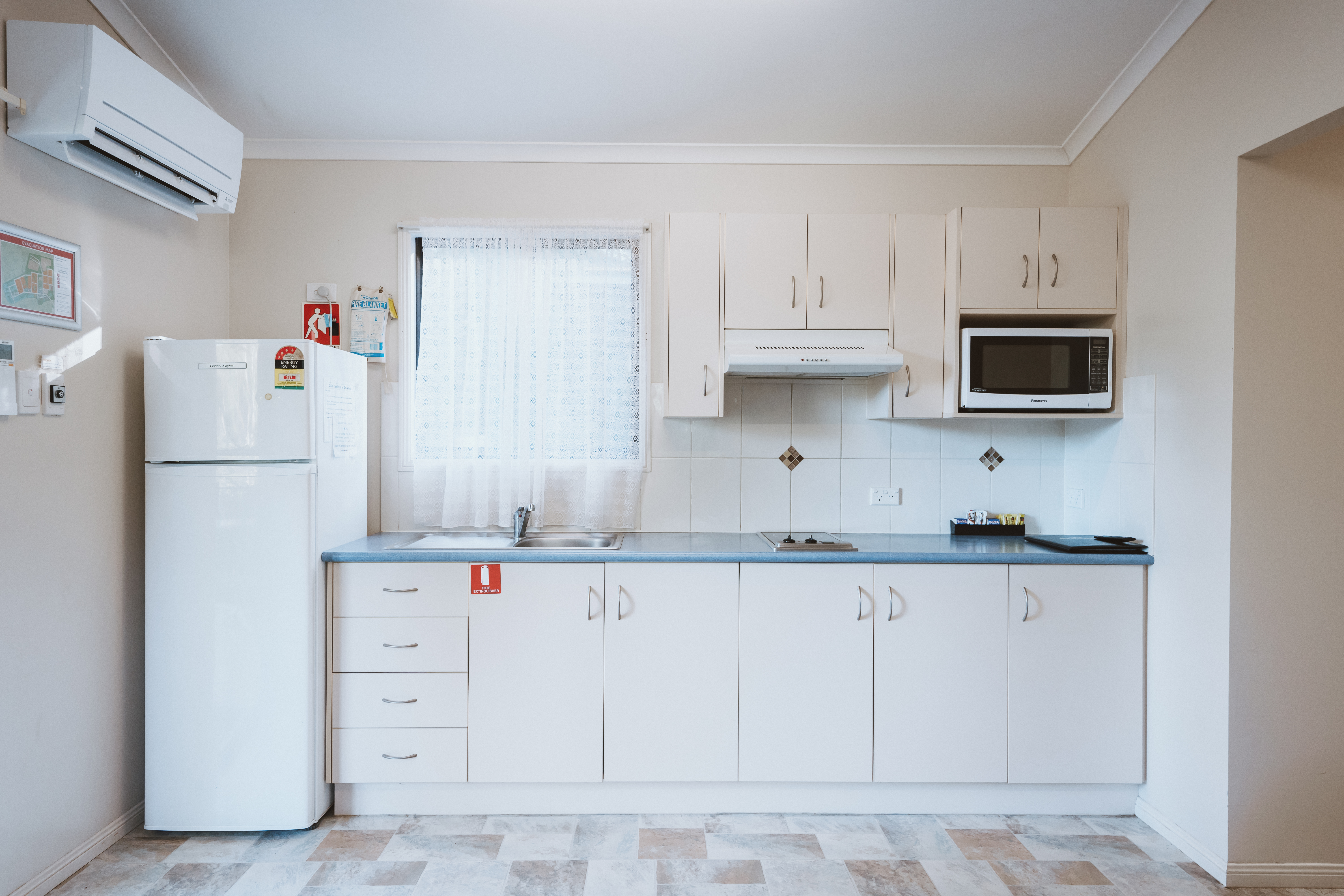 The open-plan villa has a self-contained kitchen including a fridge, microwave, stovetop and plenty of crockery and cutlery with a dining table, lounge, and a TV in the living area. The bathroom in the villa includes a shower, toilet, and vanity. The villa is air-conditioned for your comfort.