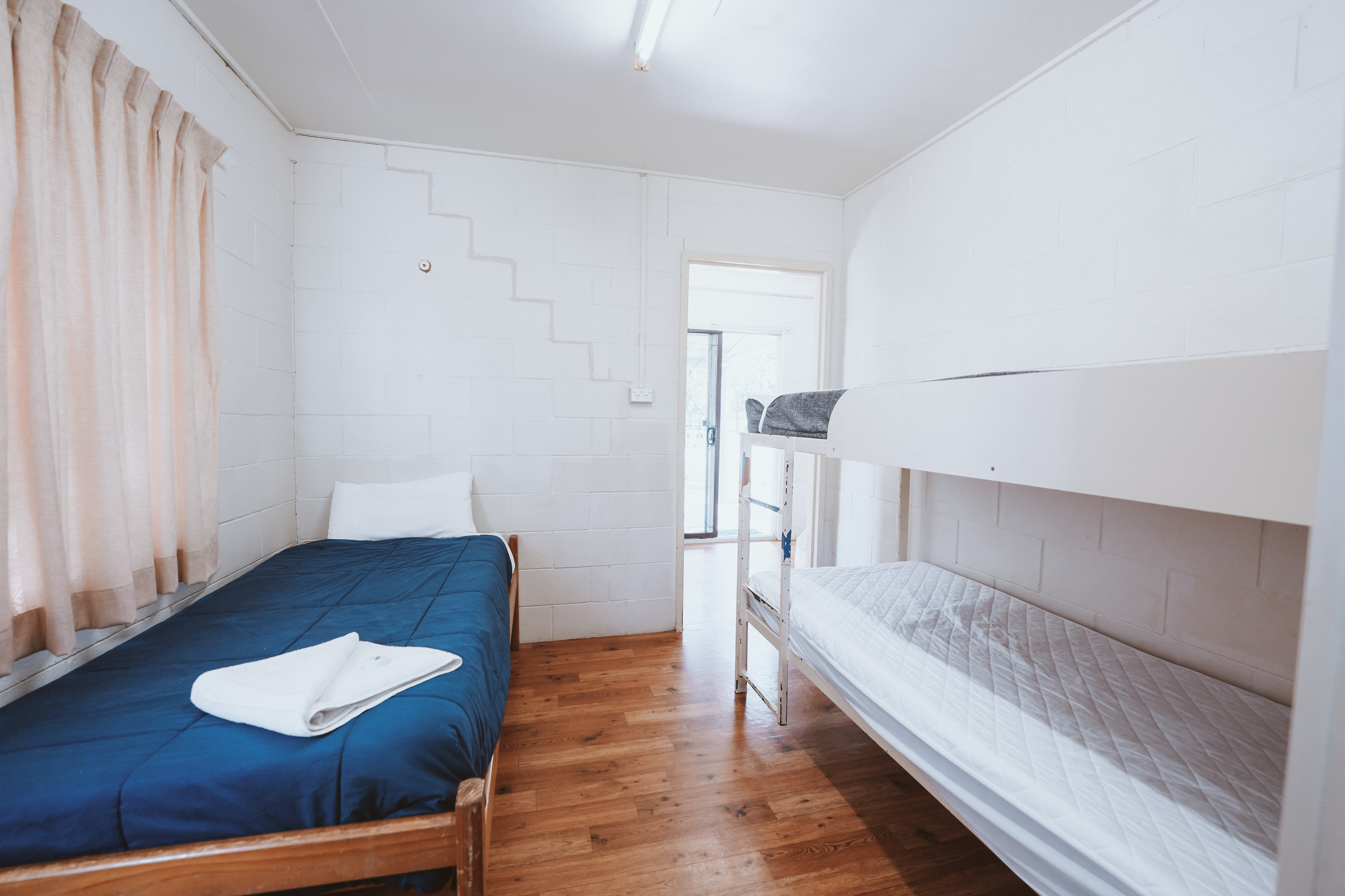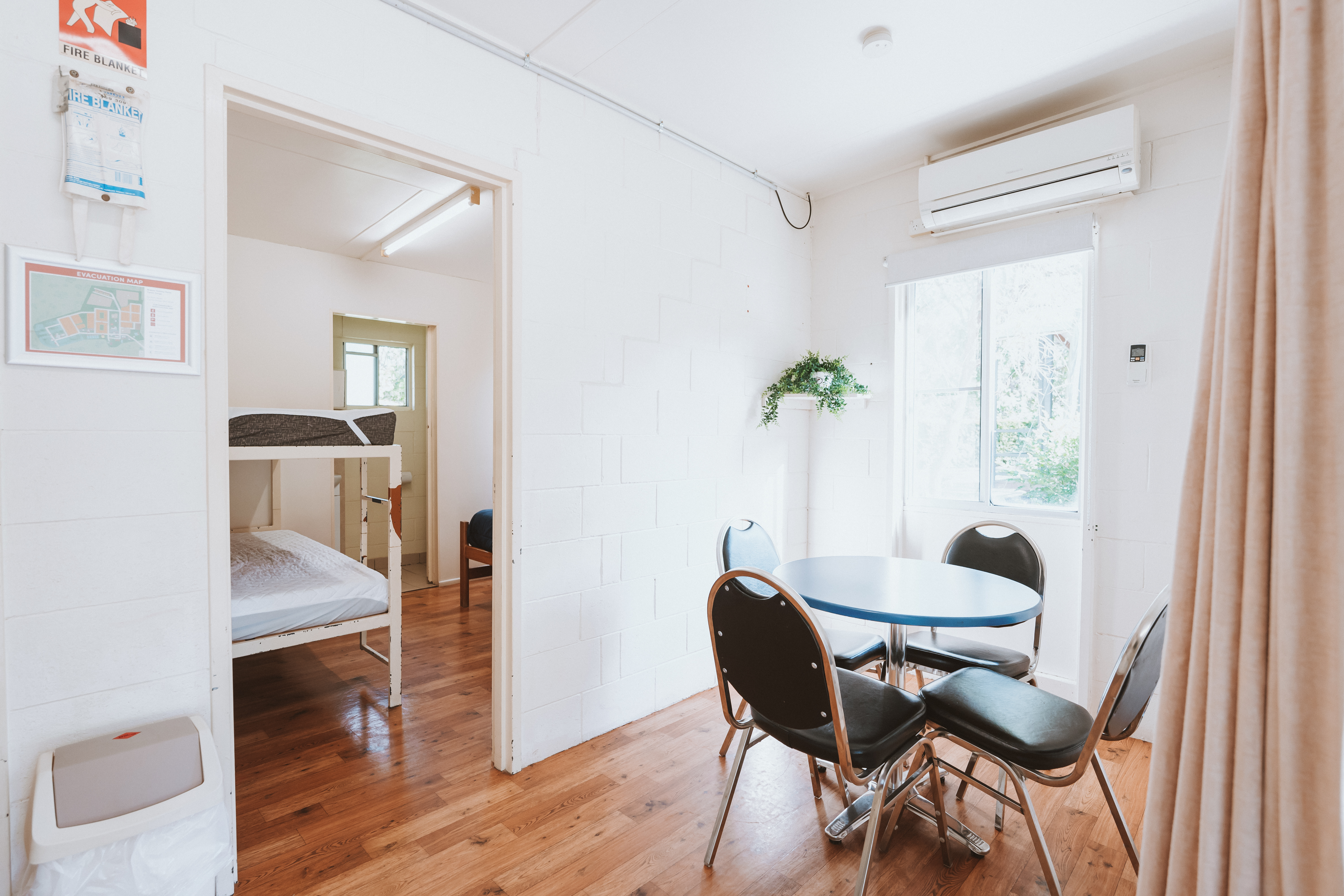 The unit offers a queen bed in the main bedroom and a single bed and a set of bunk beds in the second bedroom. The open-plan unit has a self-contained kitchen including a fridge, microwave, stovetop and plenty of crockery and cutlery with a dining table, lounge, and a TV in the living area. The bathroom in the unit includes a shower, toilet, and vanity. The unit is air-conditioned for your comfort.