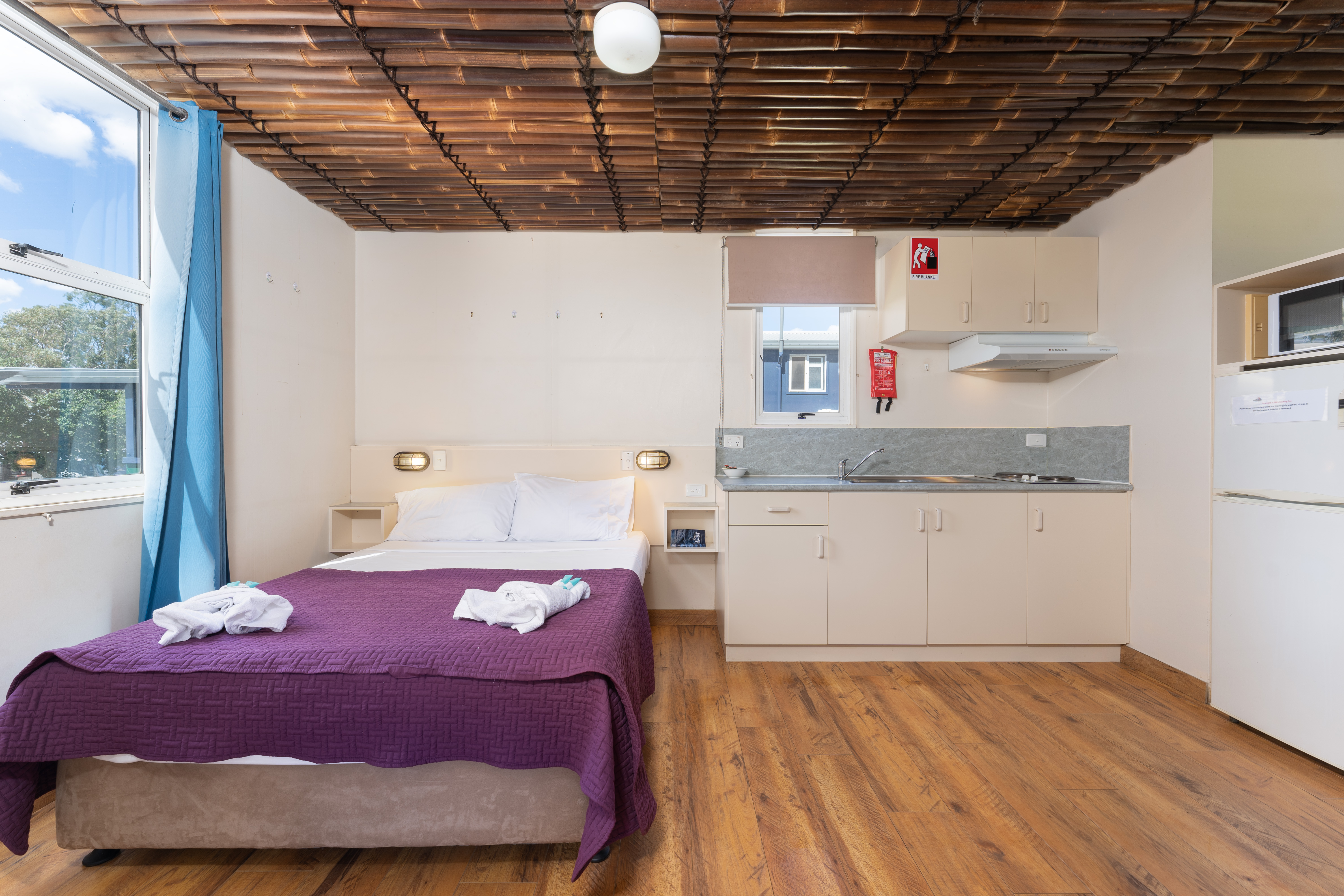 Fully renovated ensuite cabin with double bed, kitchenette, TV & air con. These cabins have no lake view or balcony.