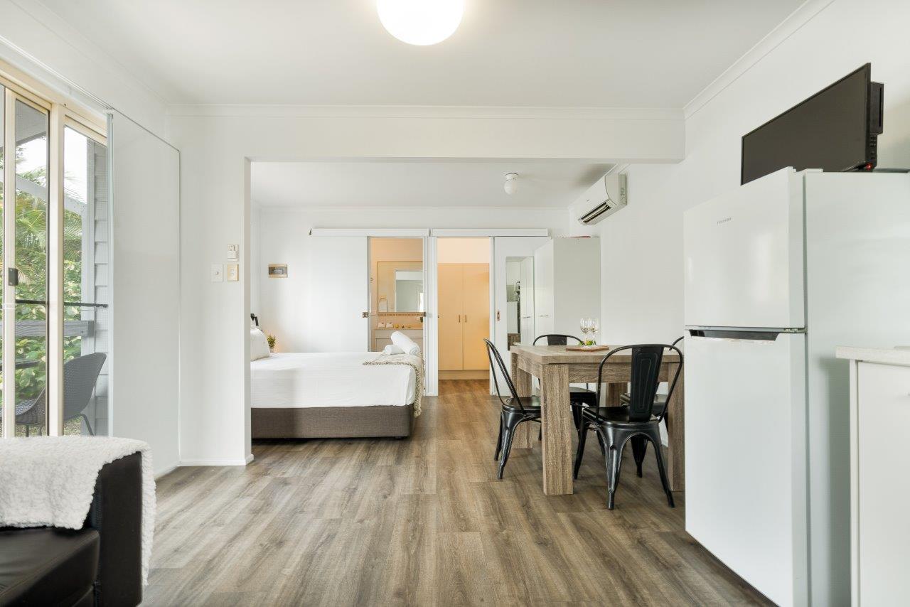 - Kitchenette with full fridge, hot plates and microwave