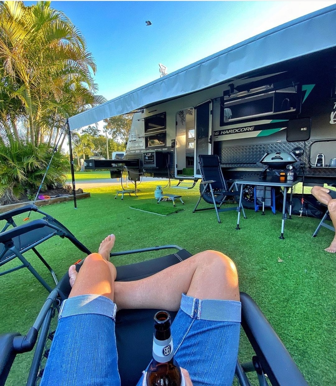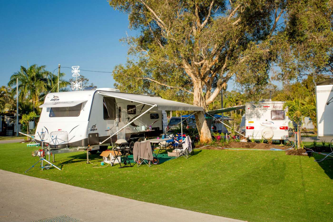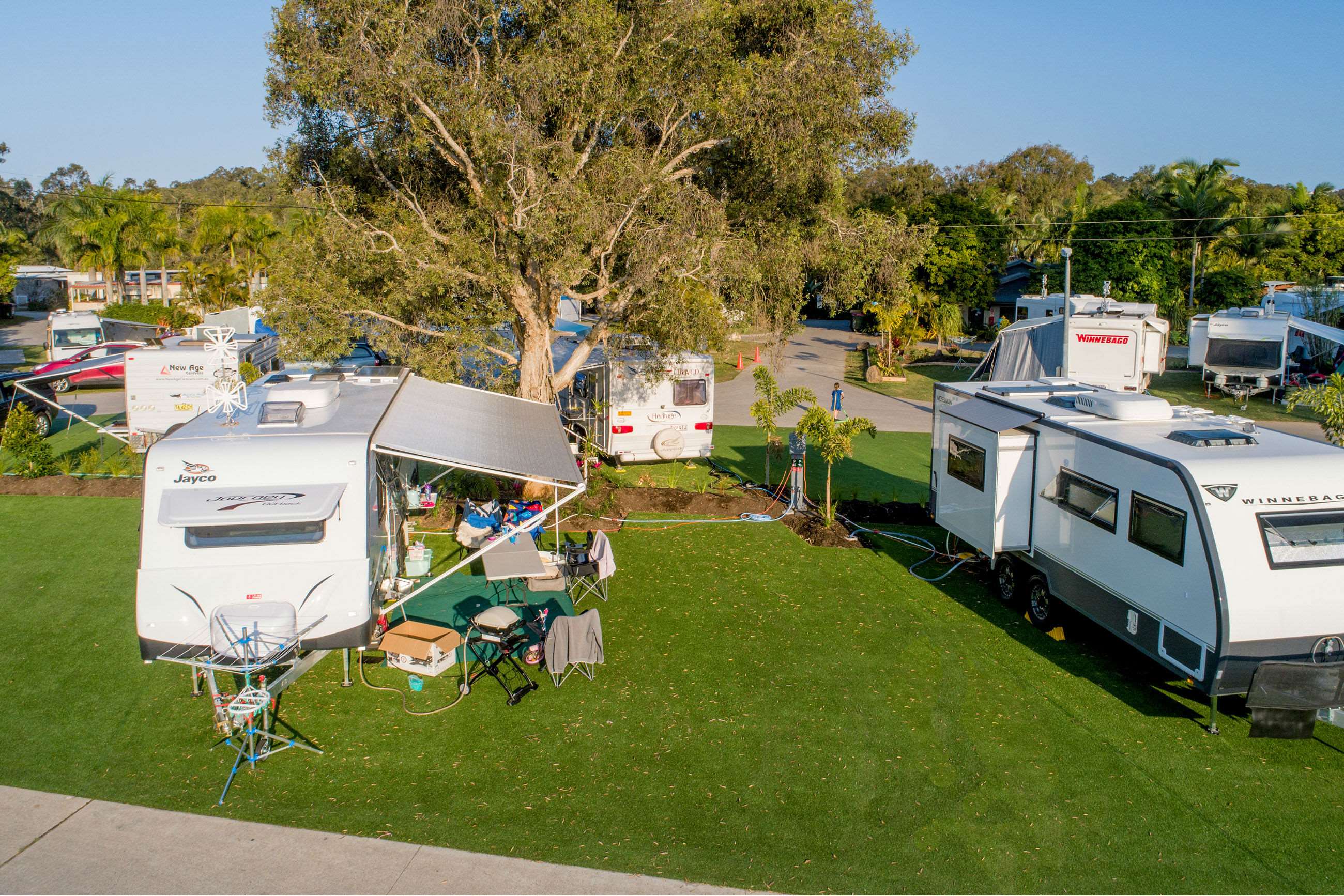 These Premier Evergreen Sites are located in the Central area of the park and sleep up to 6. The following equipment type is welcome on these sites: Under 26ft including tow all Caravan, Motorhome, Campervan or Tents including ONE car space are welcome. These recently redeveloped sites have great drainage, easy backing onto with surfaces level with the roadside, 35 degree angles to make parking a breeze and all include new power, lighting, water and discharge points and they are really central to our pool, cafe, amenities, laundry and camp kitchen. **Please note that we do not allow any fires on these sites.