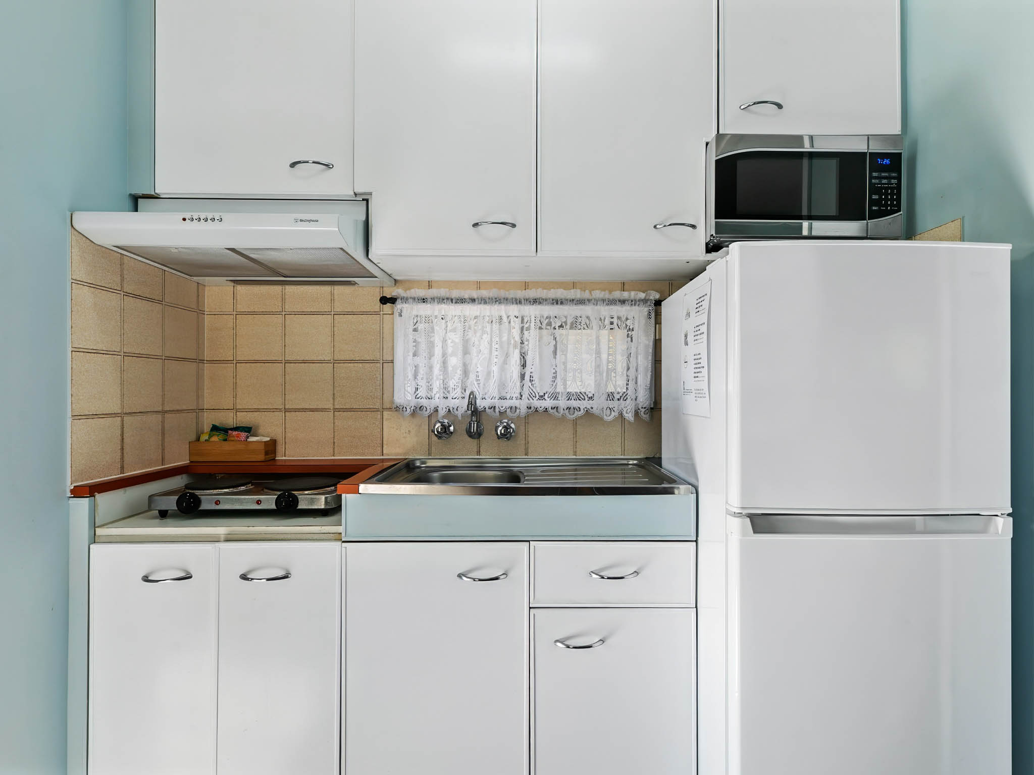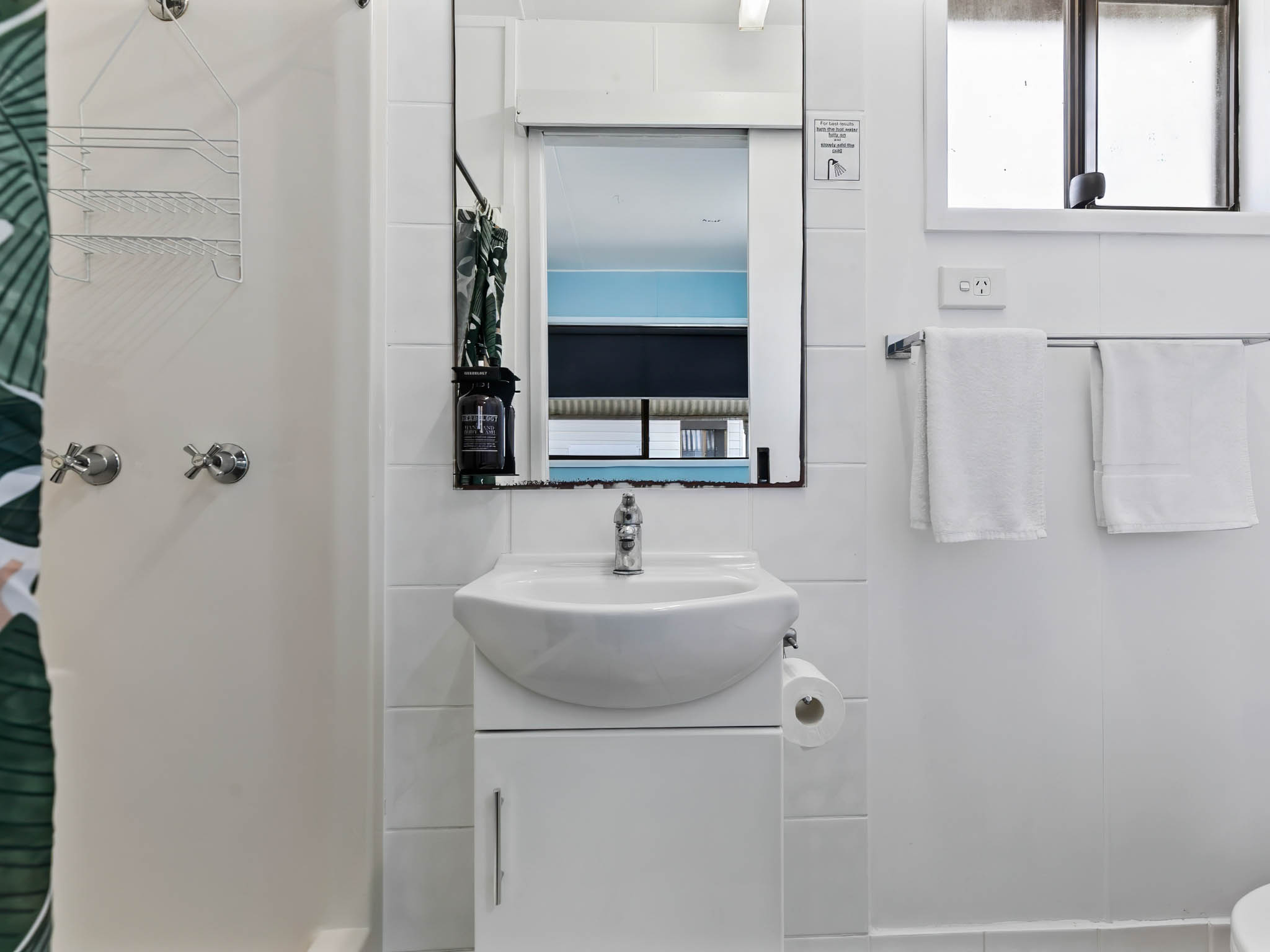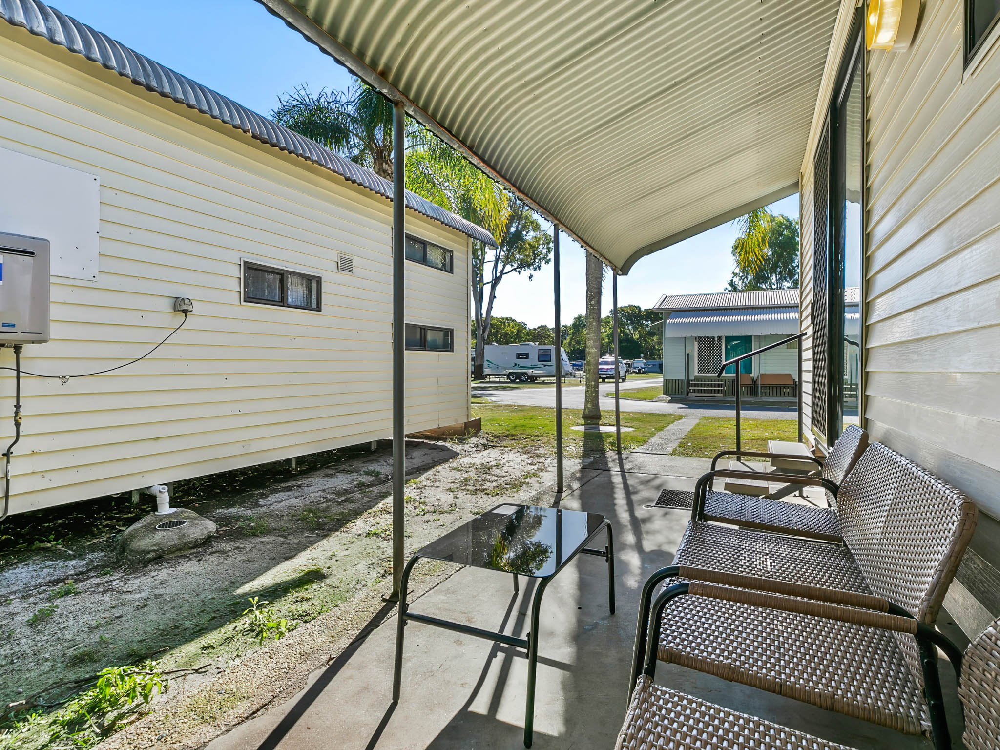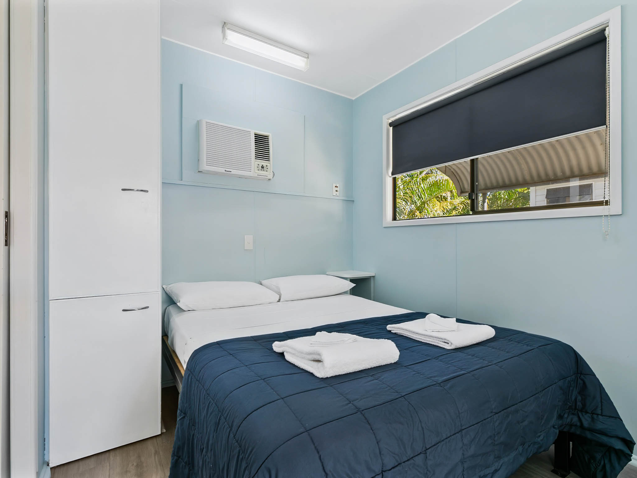 The open-plan layout includes a kitchenette with cooktop, microwave, and fridge, plus a dining table, TV, and private bathroom. Reverse-cycle air conditioning and fans ensure comfort, and the covered patio with outdoor setting is perfect for relaxed moments. With linen provided, it’s a simple and practical coastal base. Note: Bunk beds are best suited to children and may not comfortably accommodate adults.