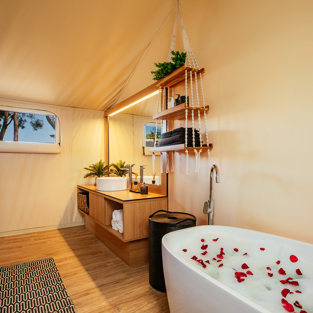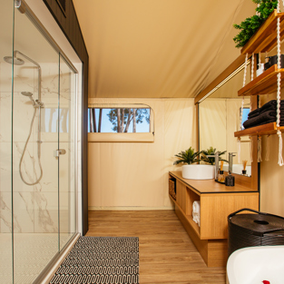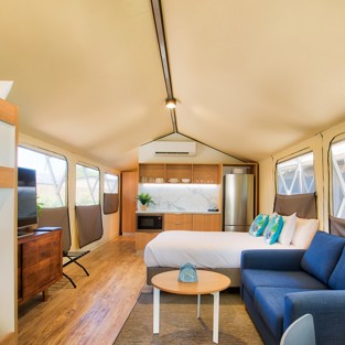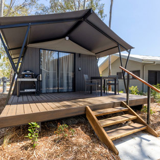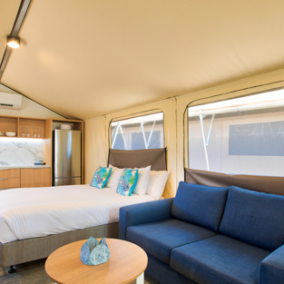 Our stunning coastal inspired Villas & Safari Tents are fully self-contained and close to all facilities!