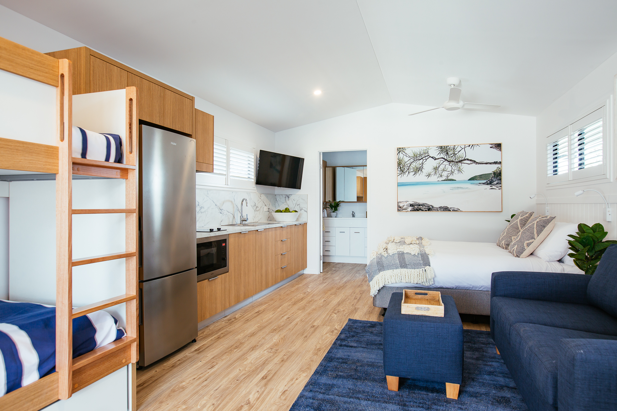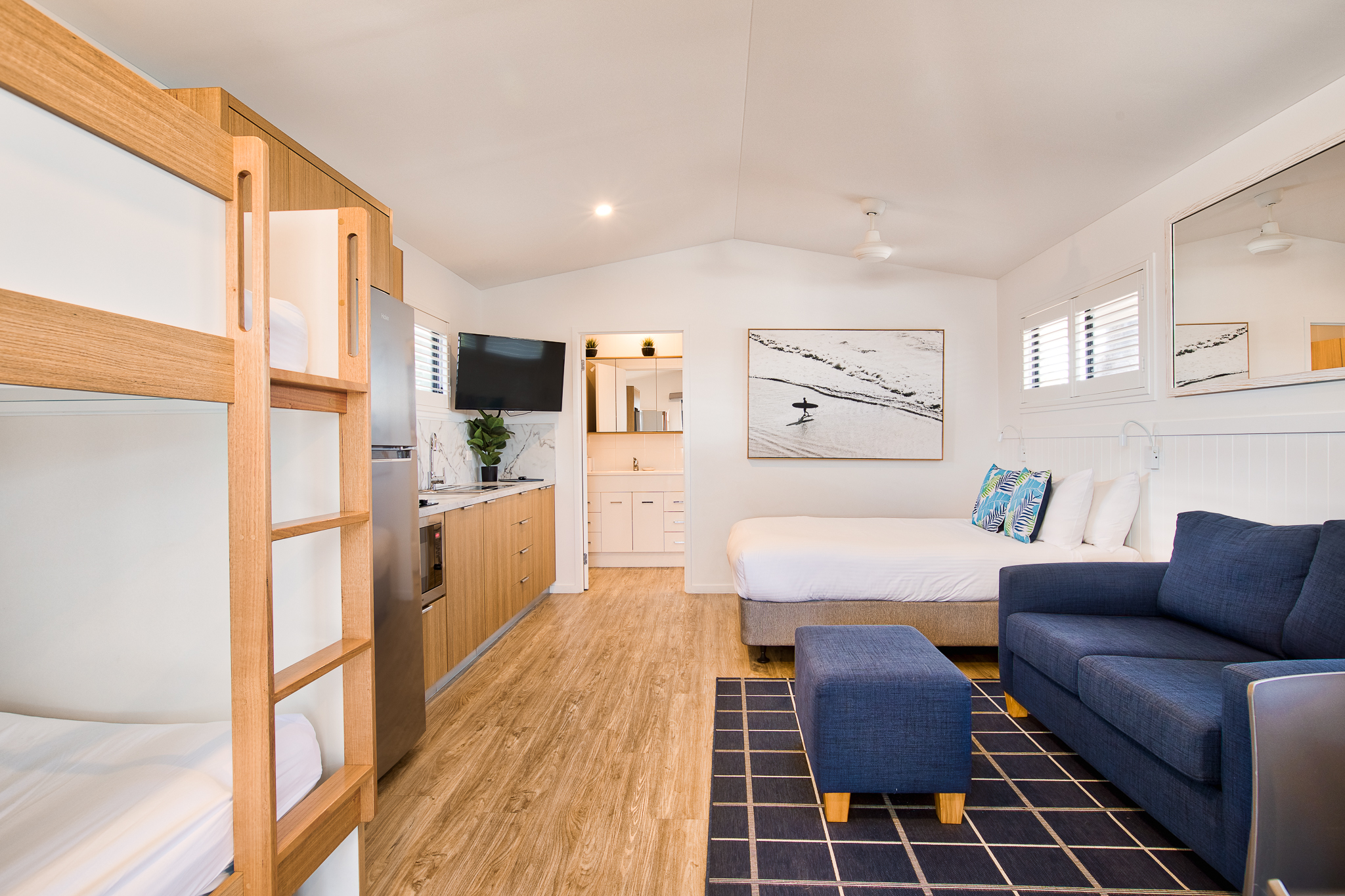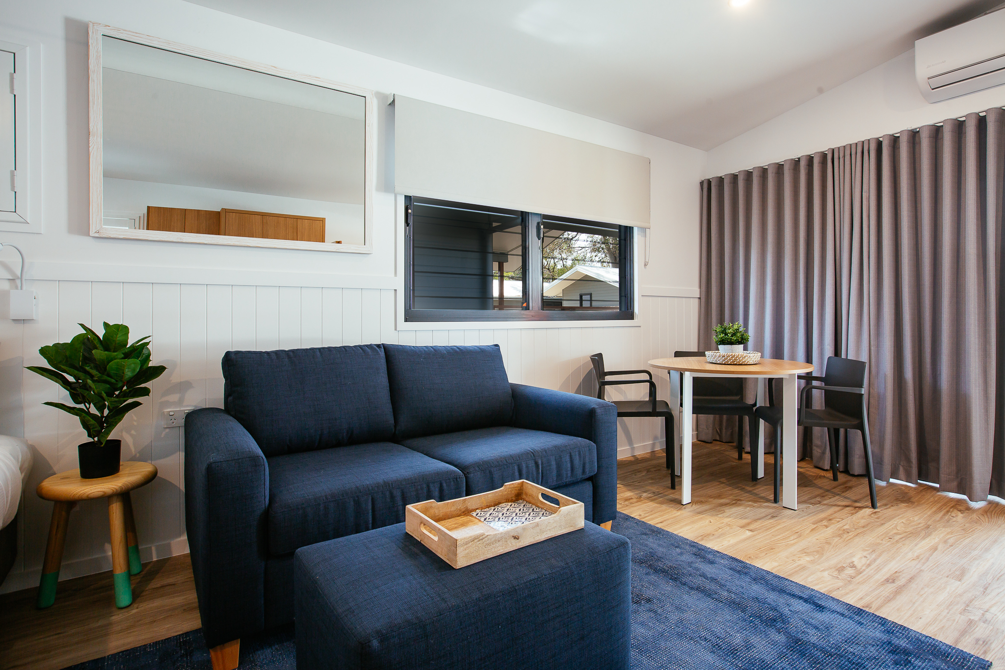 The Studio Villa features everything one would need for a longer family stay, sleeping 5 people. The Studio Villa has its own bathroom as well as an open plan kitchenette, living room with TV and dining area. Adding to the convenience, the villa has its own alfresco dining area for outdoor family meals.