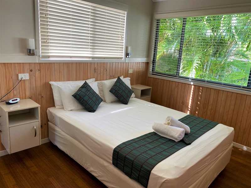 Our well-equipped Executive Villas have two bedrooms with a queen bed in each room. A separate bathroom and toilet are within, along with a well-resourced kitchen, and an open plan lounge and a dining area. A balcony finishes the villa in style.