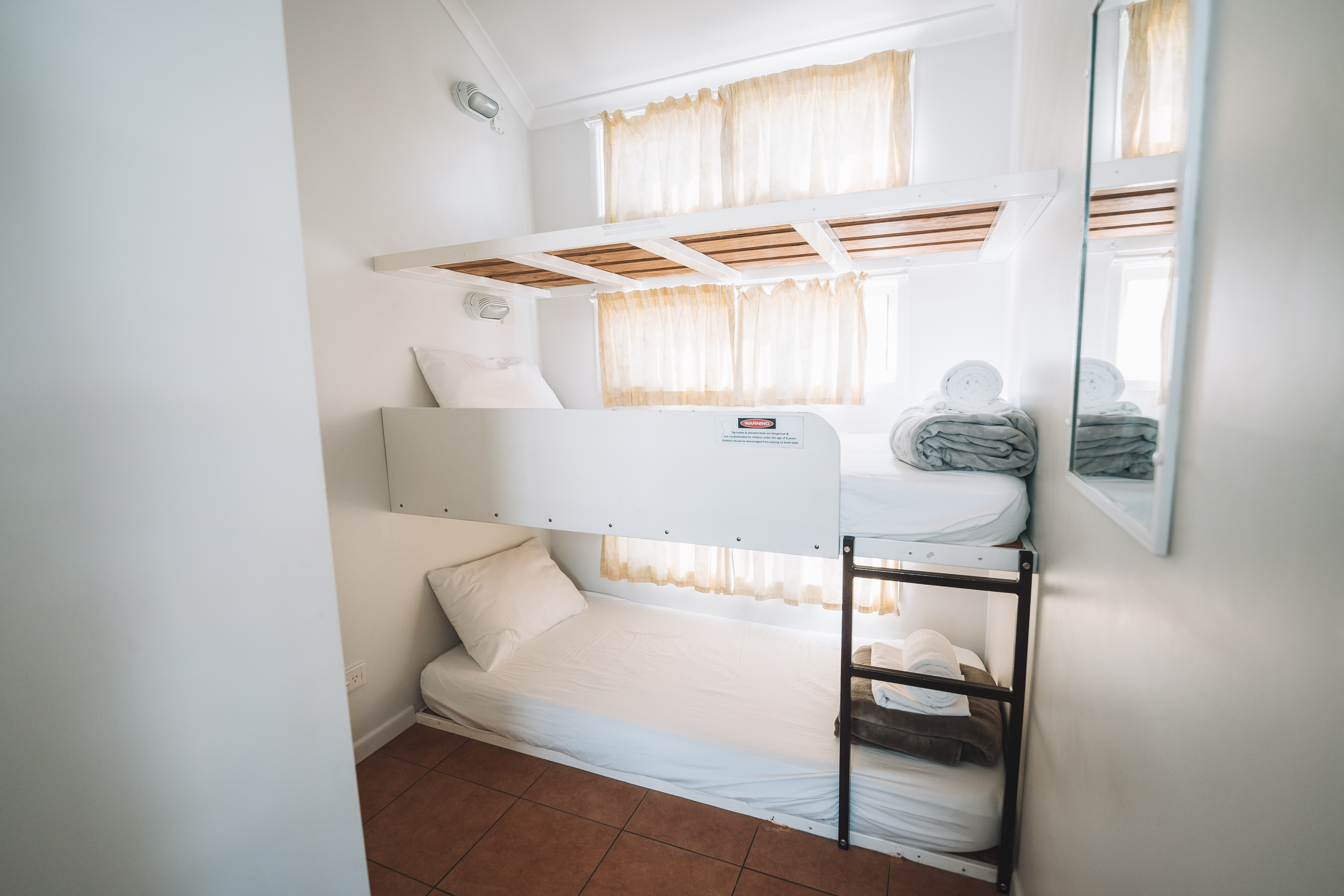 Sleeping up to four persons, these cabins include a double bed in the main bedroom and a kid-sized bunk bed in the second bedroom. These cabins provide a great base to enjoy everything Rainbow Beach has to offer. With the marina right next door and the beach a short 3-minute drive away, it’s a water lovers' dream.