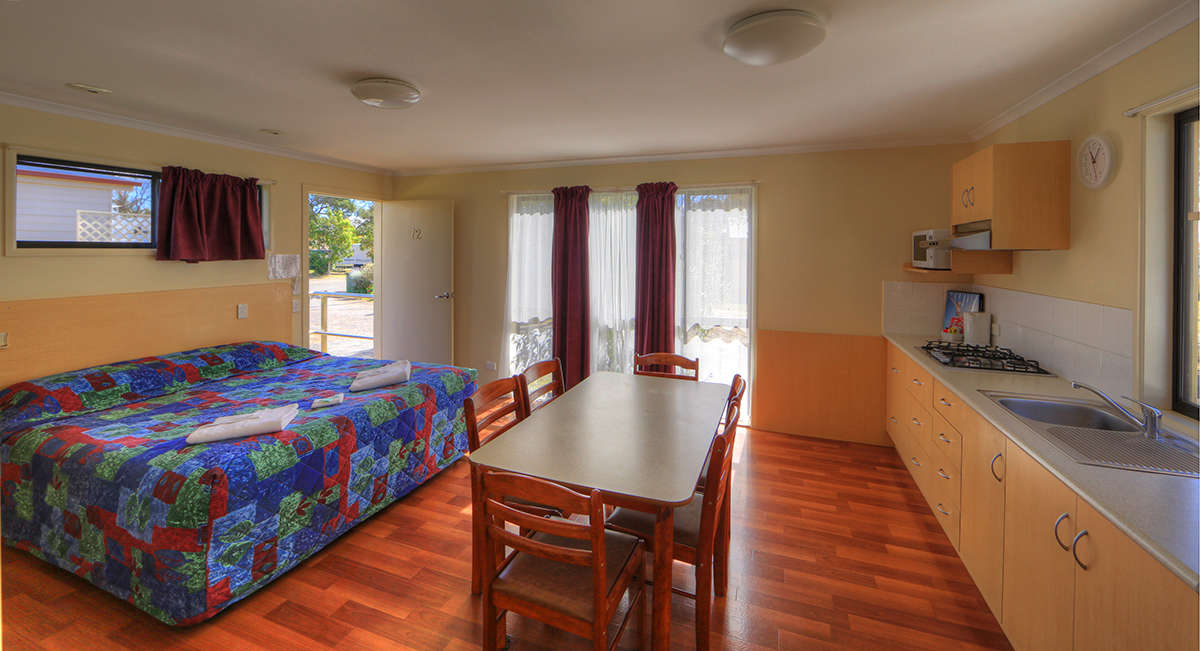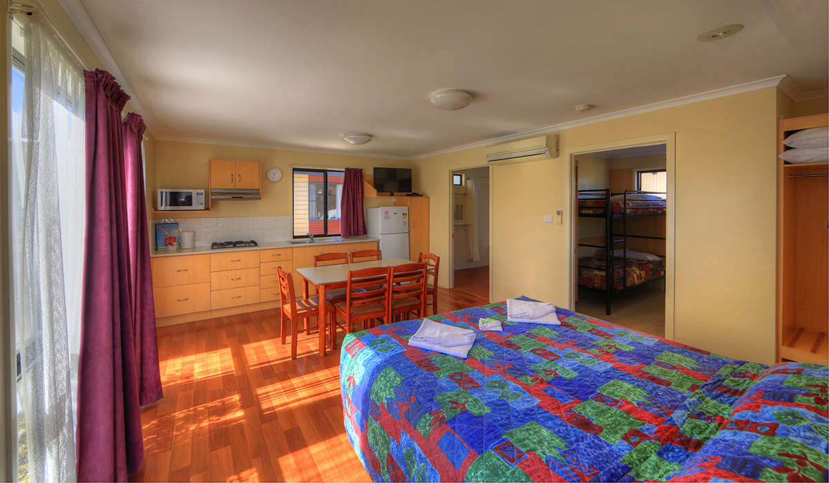Our 1 Bedroom Sleeps 6 has accessible facilities, for those of our guests in a wheelchair. Spacious ensuite with cooking facilities, split system/reverse cycle air con and digital TV.