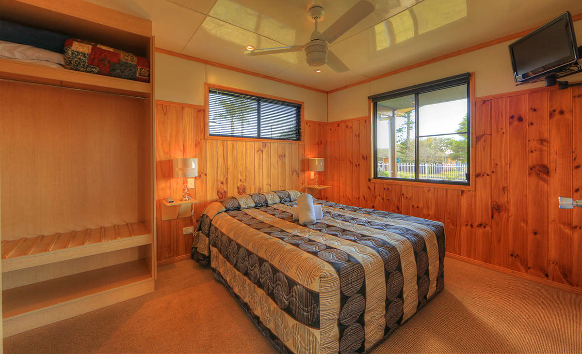 You will enjoy this large modern villa featuring ensuite bathroom and main bedroom separate from the living area. The sofa bed in the living area may be used as a double bed. The villa has a kitchen with a full-sized stove and oven, TV in living area with a second TV in the main bedroom. The reverse cycle split system air-conditioning is a great feature to keep you cool or warm depending on the season. This villa is set amongst our award winning gardens.