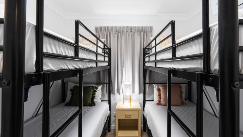 - In accommodation with triple bunk beds, children under the age of 9 are not permitted to use the top bunk and children must not play on the top bunk.