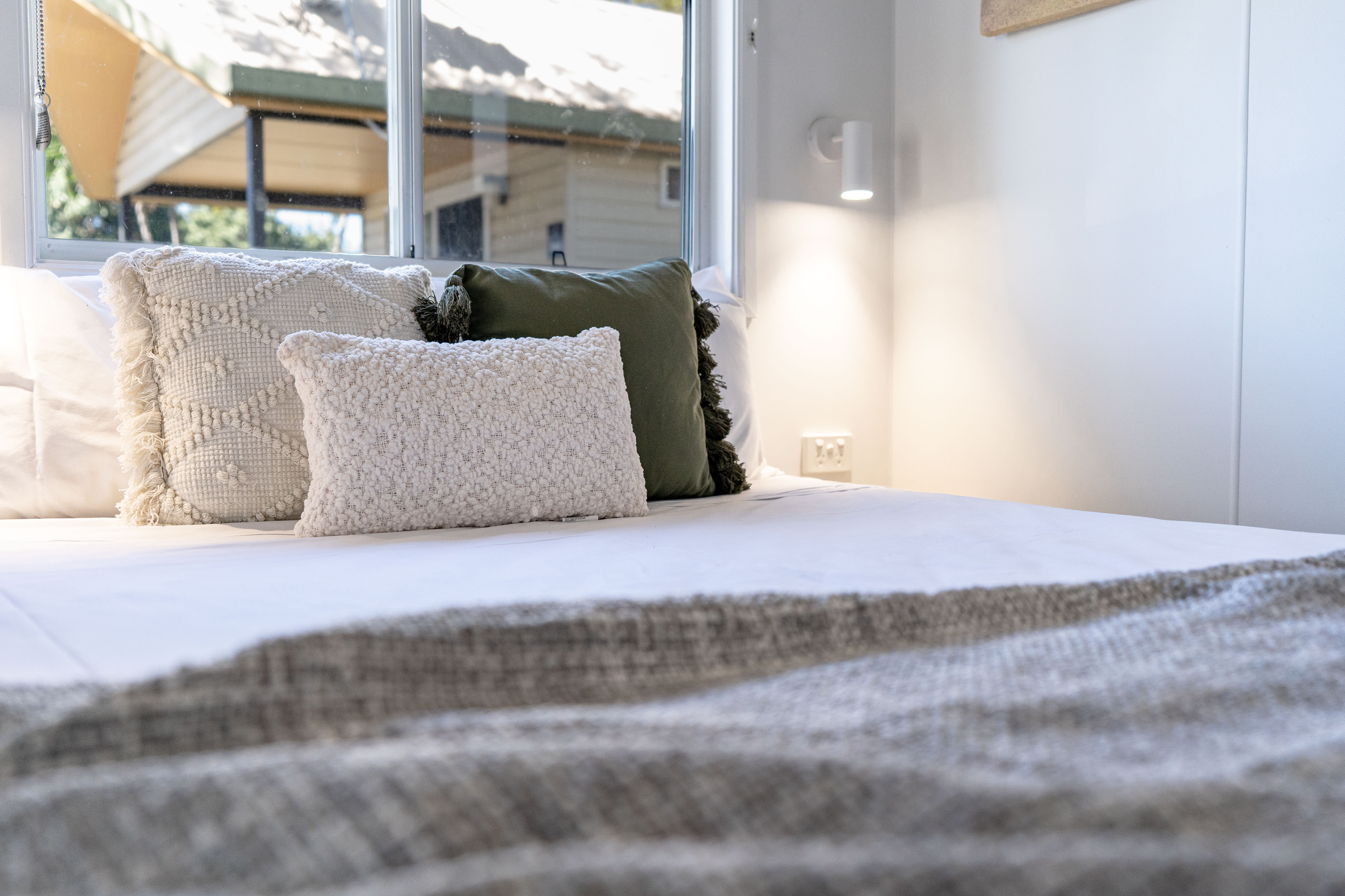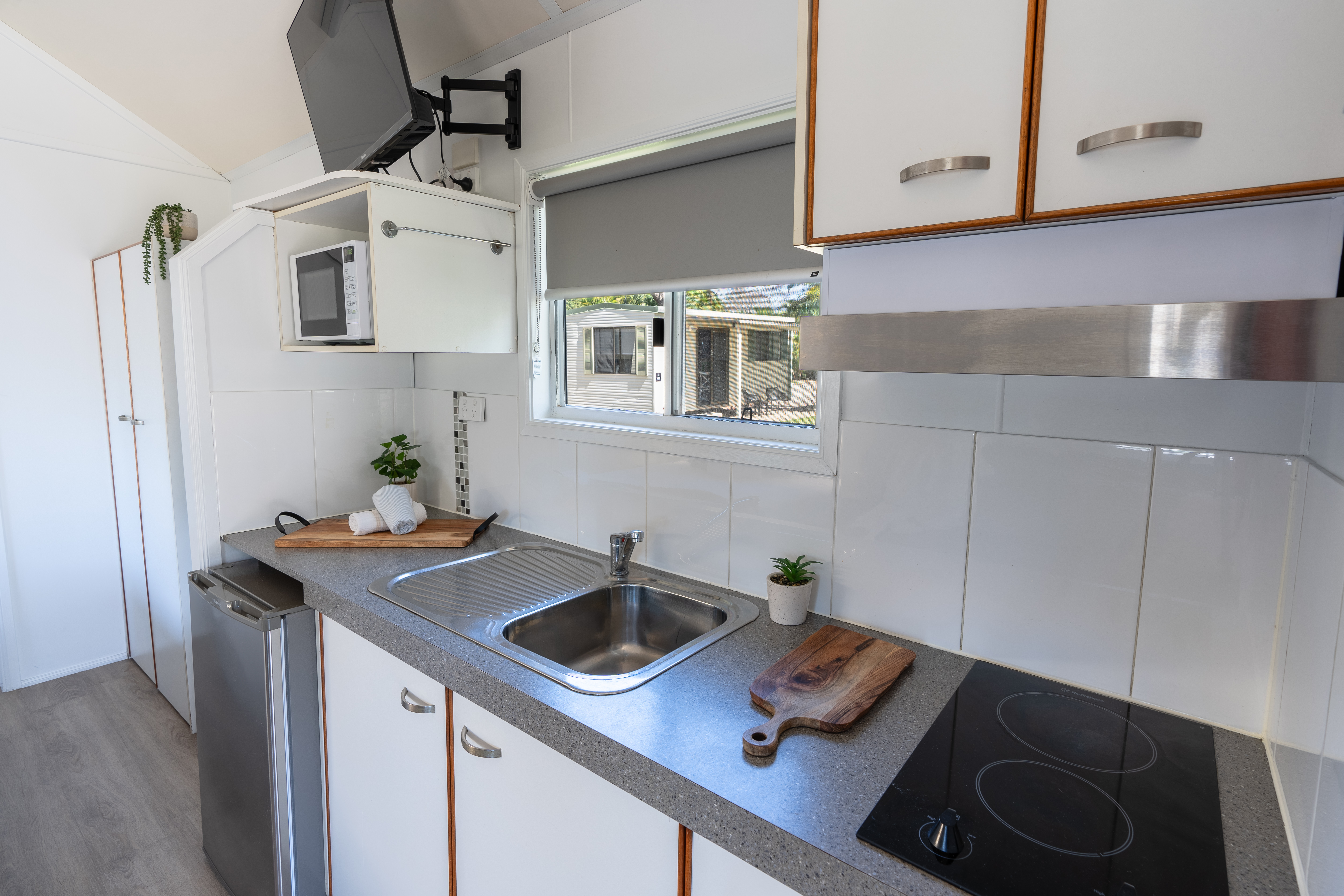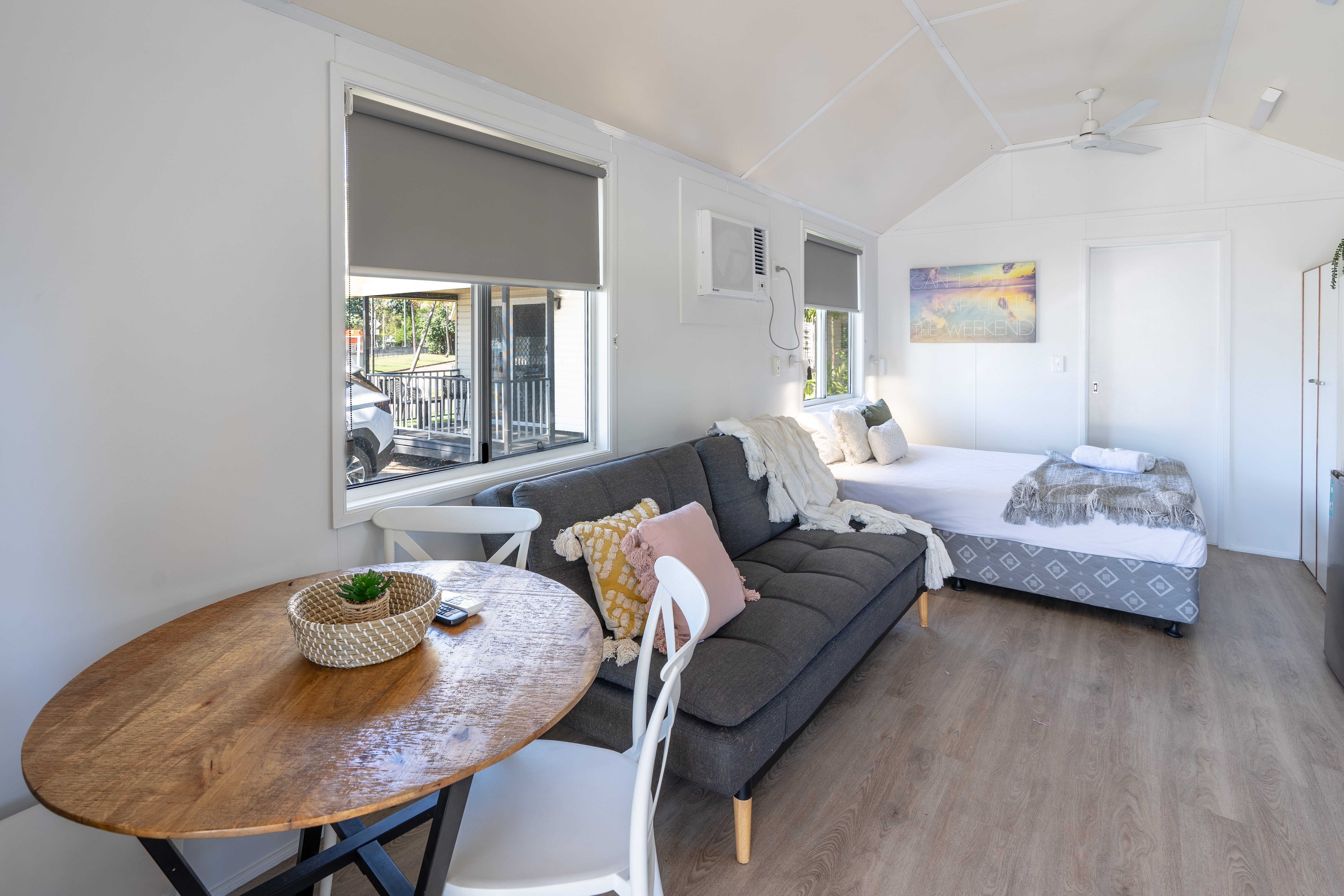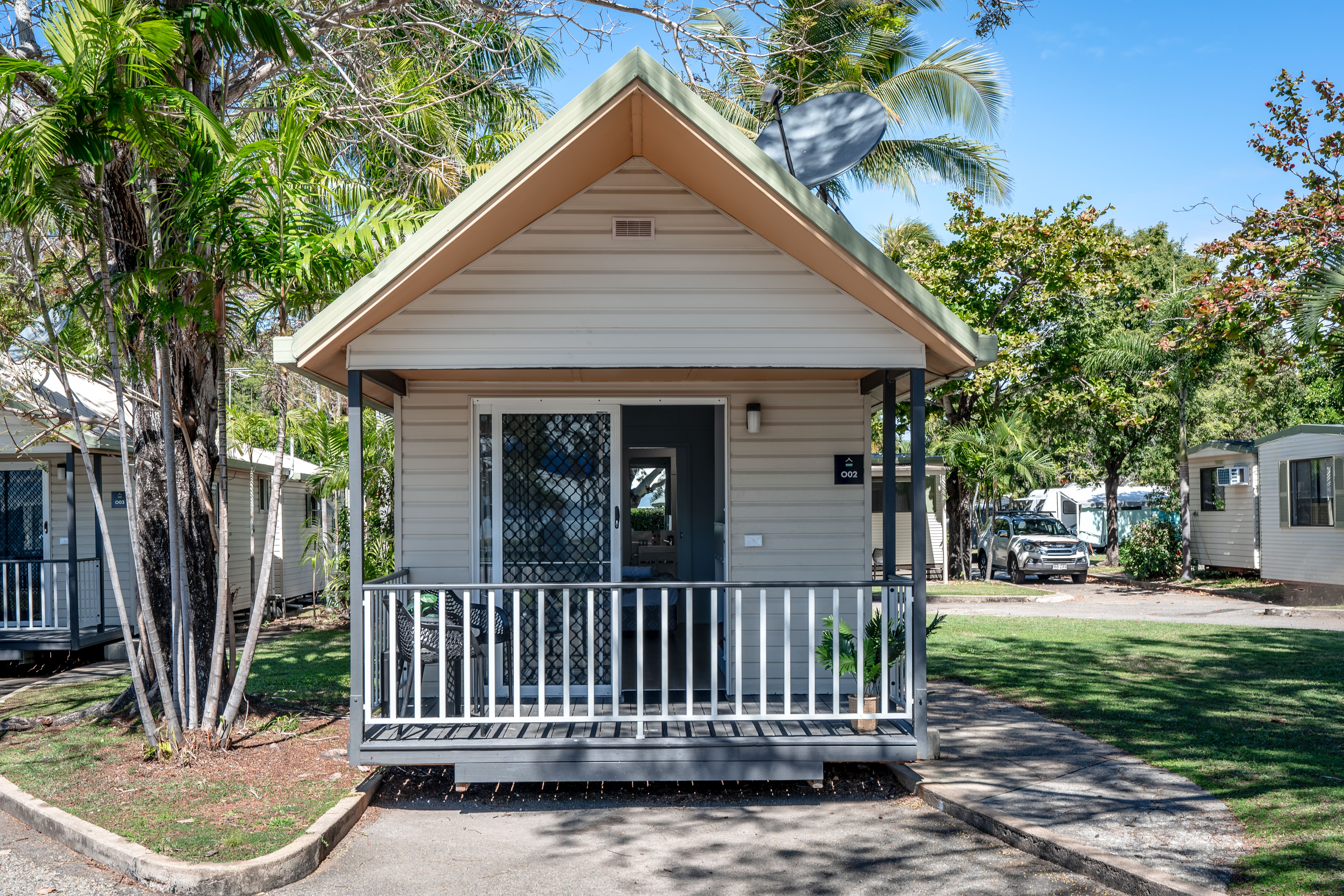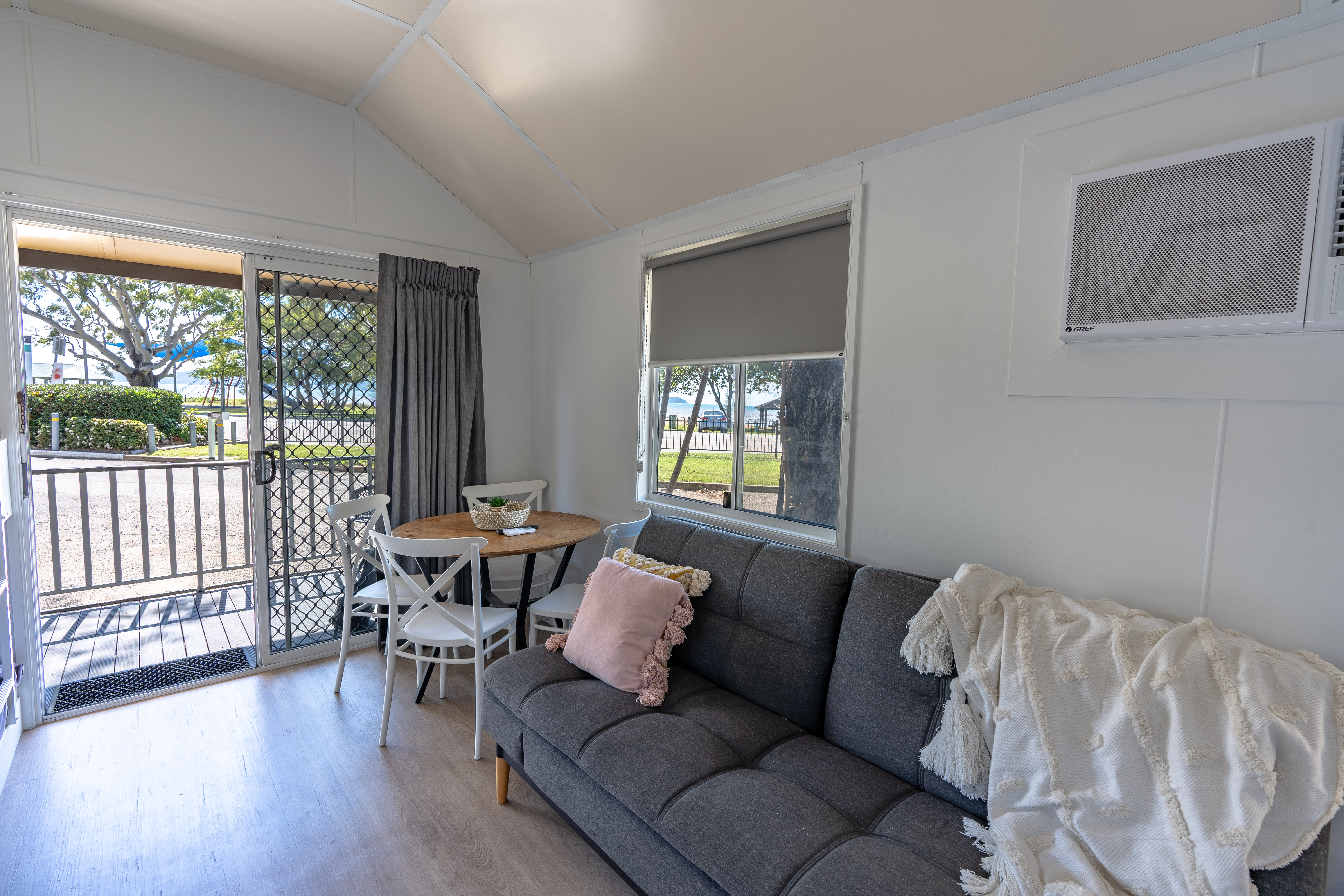 These modern and well equipped villas have the prime location within the park with a gorgeous ocean outlook and cool sea breeze. Beautifully appointed with private ensuite and balcony. Oceanview Villas include: a queen sized bed and a set of single bunk beds, they are open plan and have a mini fridge, sofa bed sleeper, ensuite, shower and toilet facilities. Split system air-conditioner.