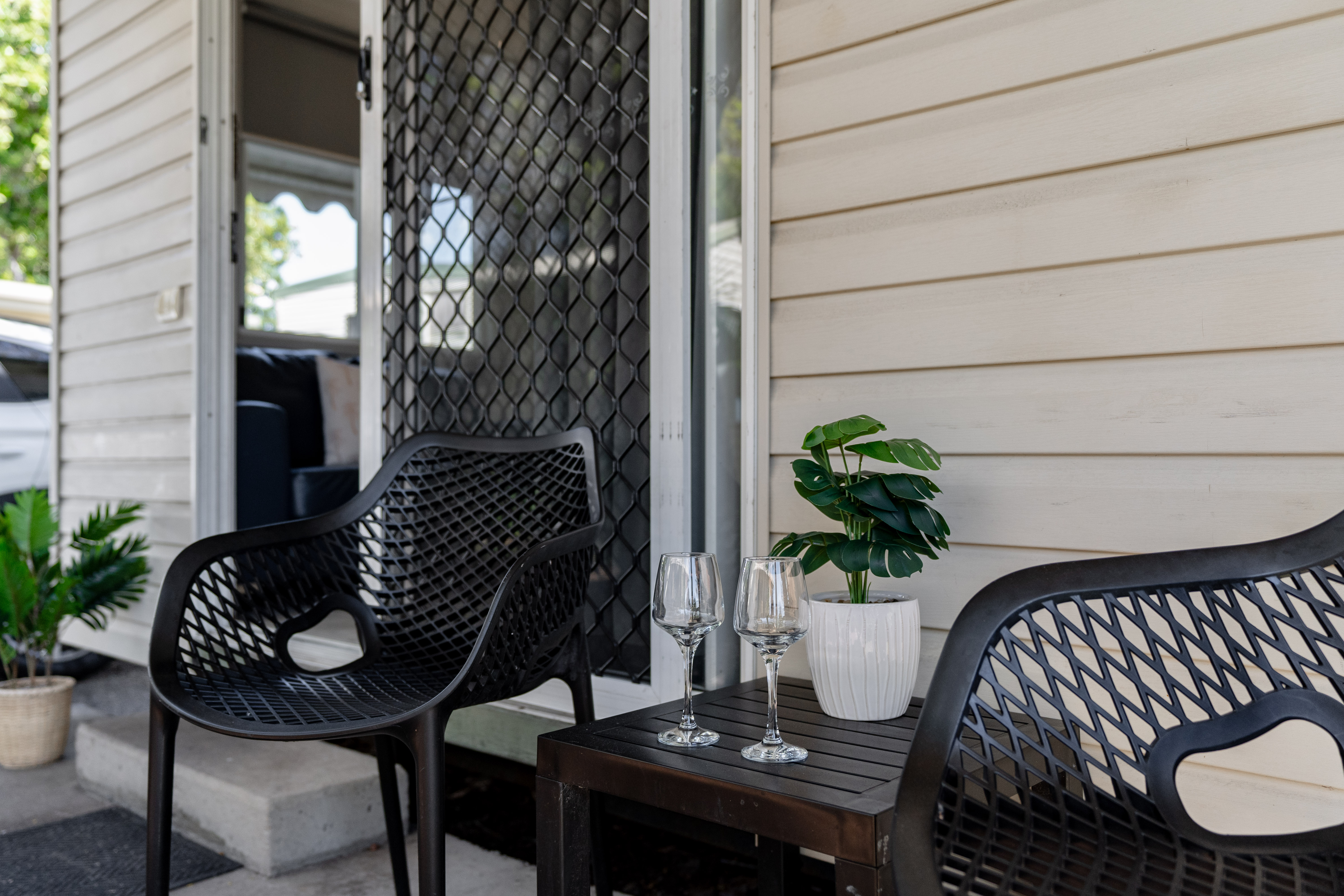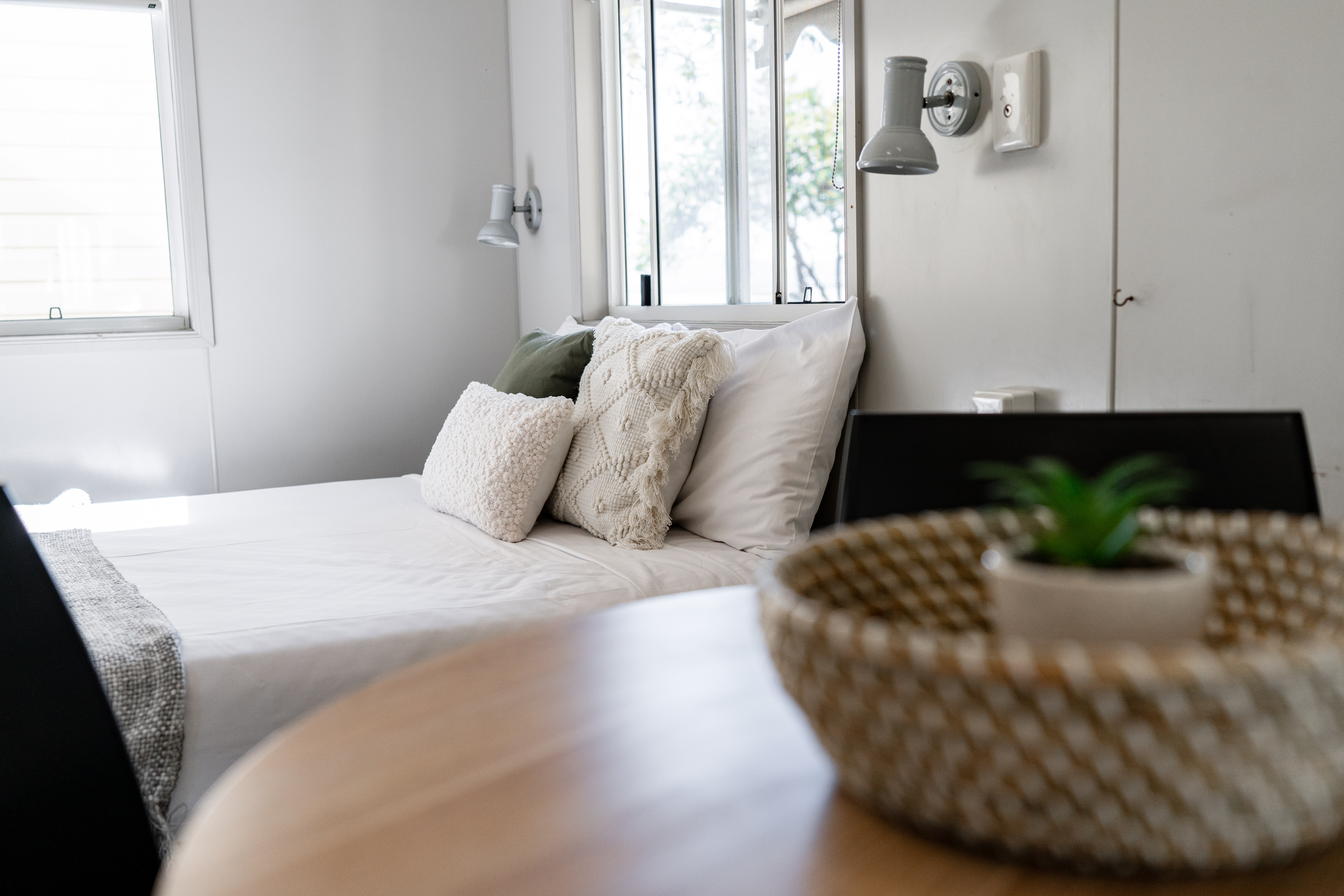 Budget Cabin with no bathroom, self contained, modern, comfortable and enjoy a beautiful sea breeze.