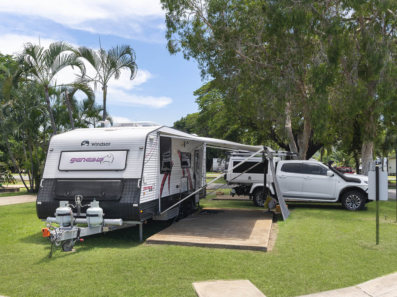 45 degree angle parking makes these powered slab sites easy to access for most vans and campervans. Located near park facilities, each site is close to amenities, camp kitchen, a short stroll to the pool and shaded communal areas. Pets are welcome.