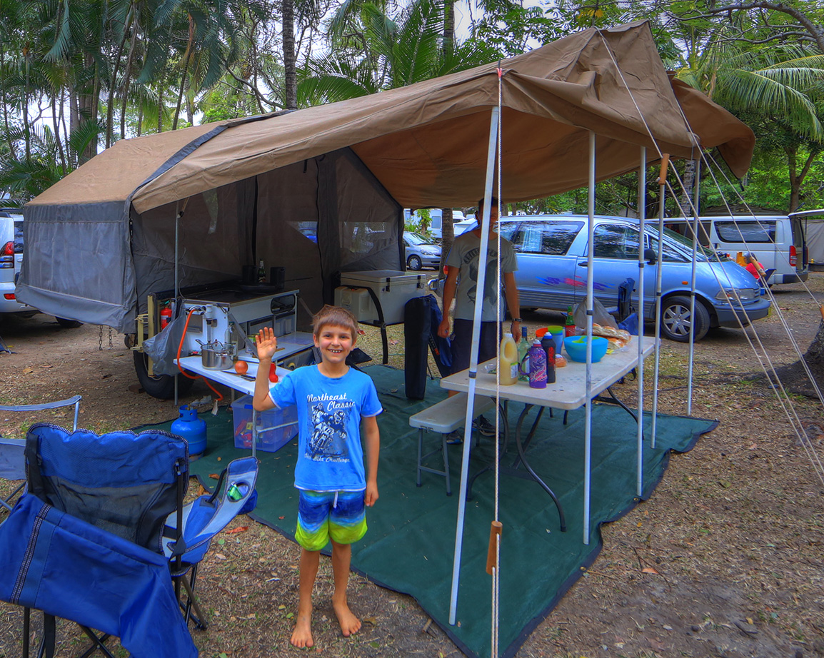 Unpowered grass site, suitable for tent, caravan, and small campervan. Located close to park facilities including amenities, camp kitchen and TV area.