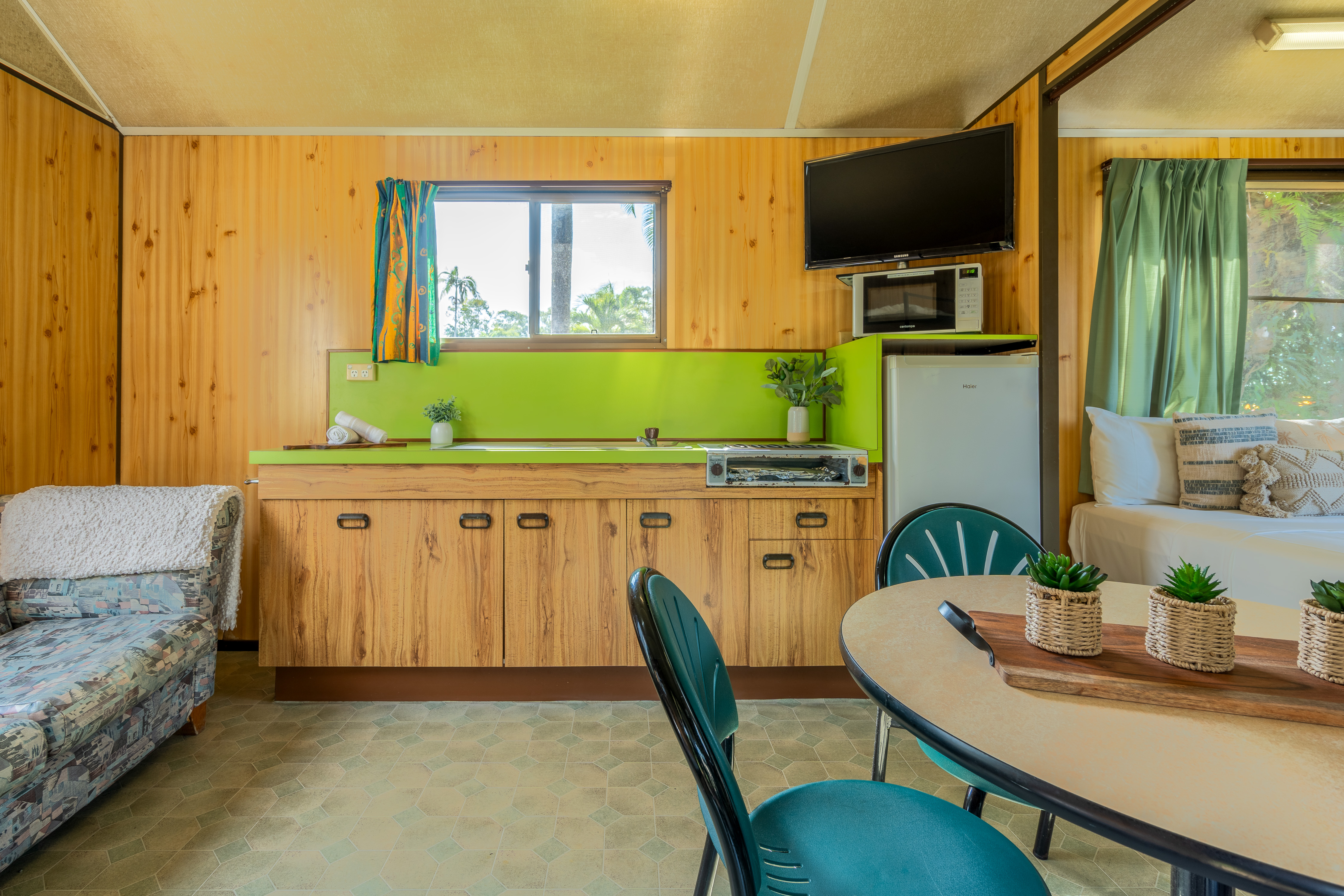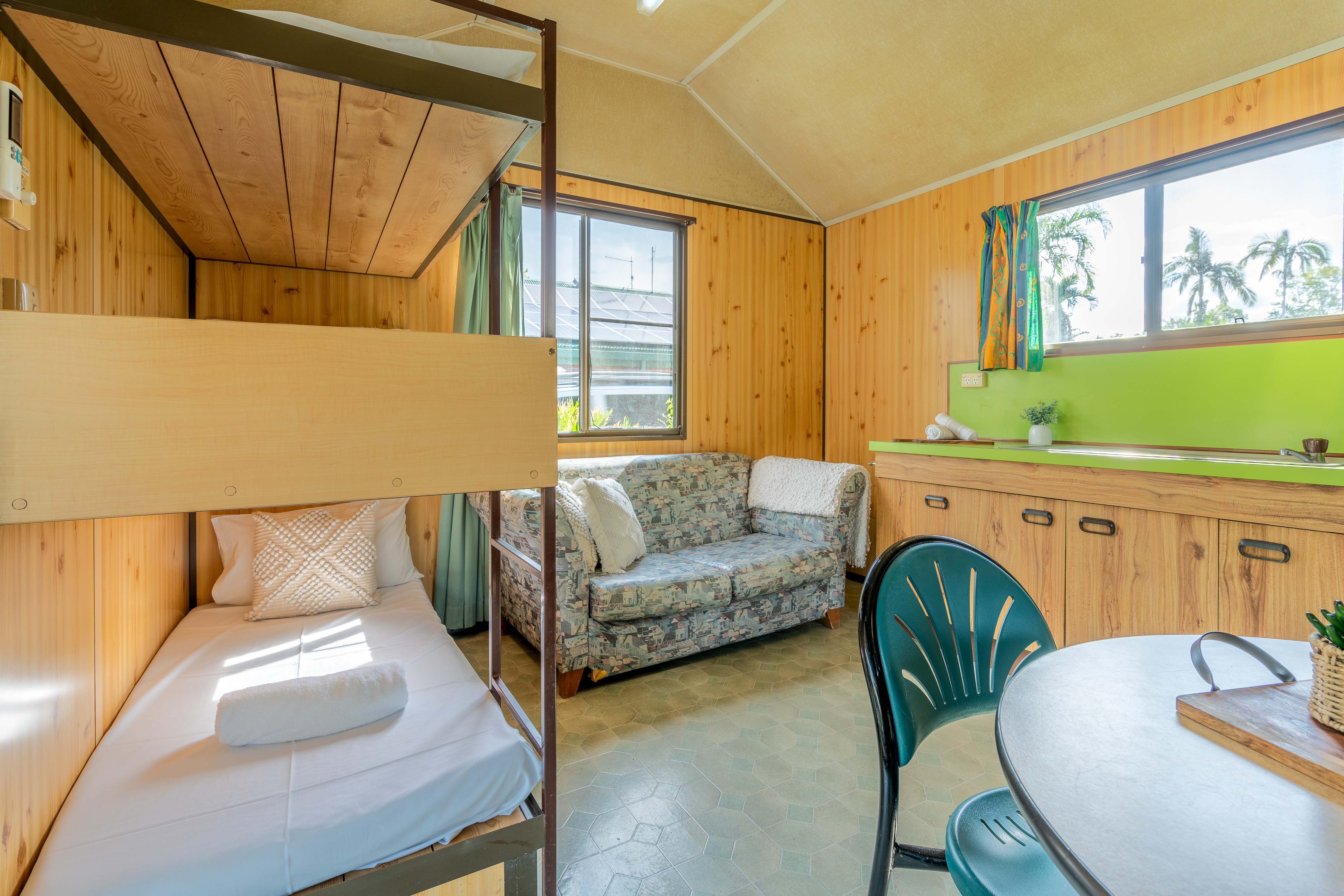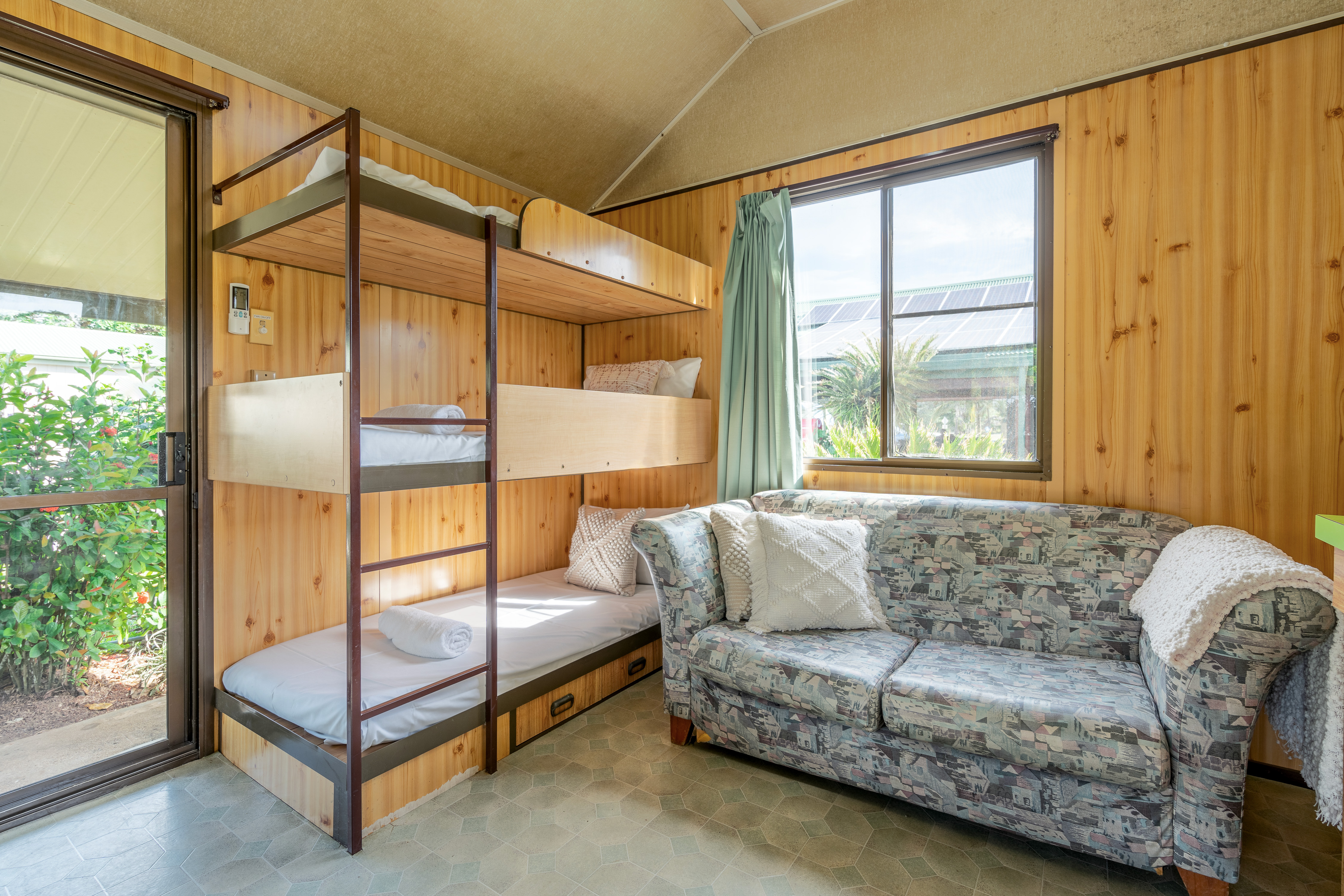 Set amongst our beautiful award-winning gardens, our simple and cosy Shacks are located just one row back from the stunning beachfront. Featuring a double bed, single bunk beds and a kitchenette in an open plan layout. Shared amenities, outdoor BBQs and laundry are located conveniently close by. Relax after a day at the beach on the private patio listening to the sounds of the waves.