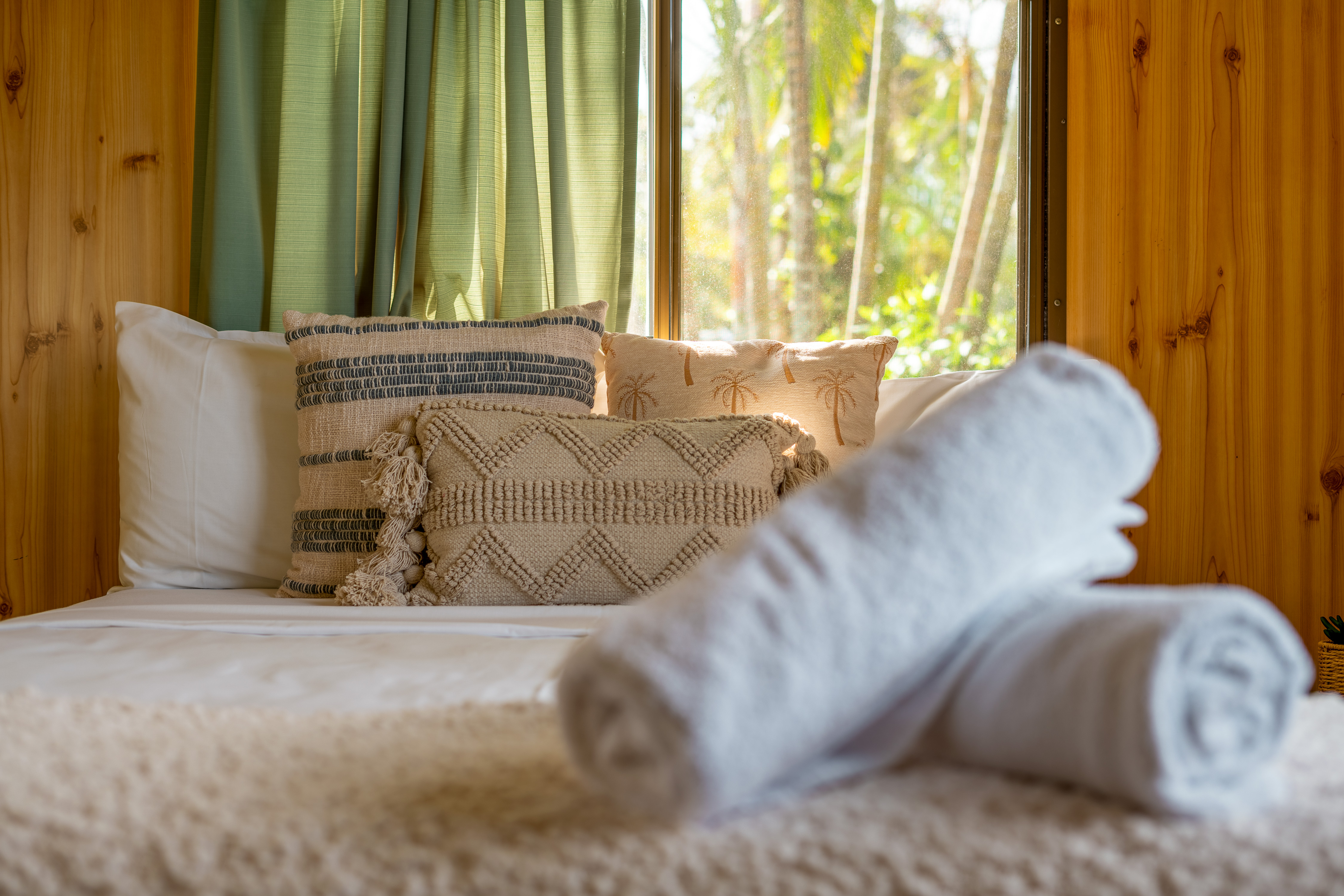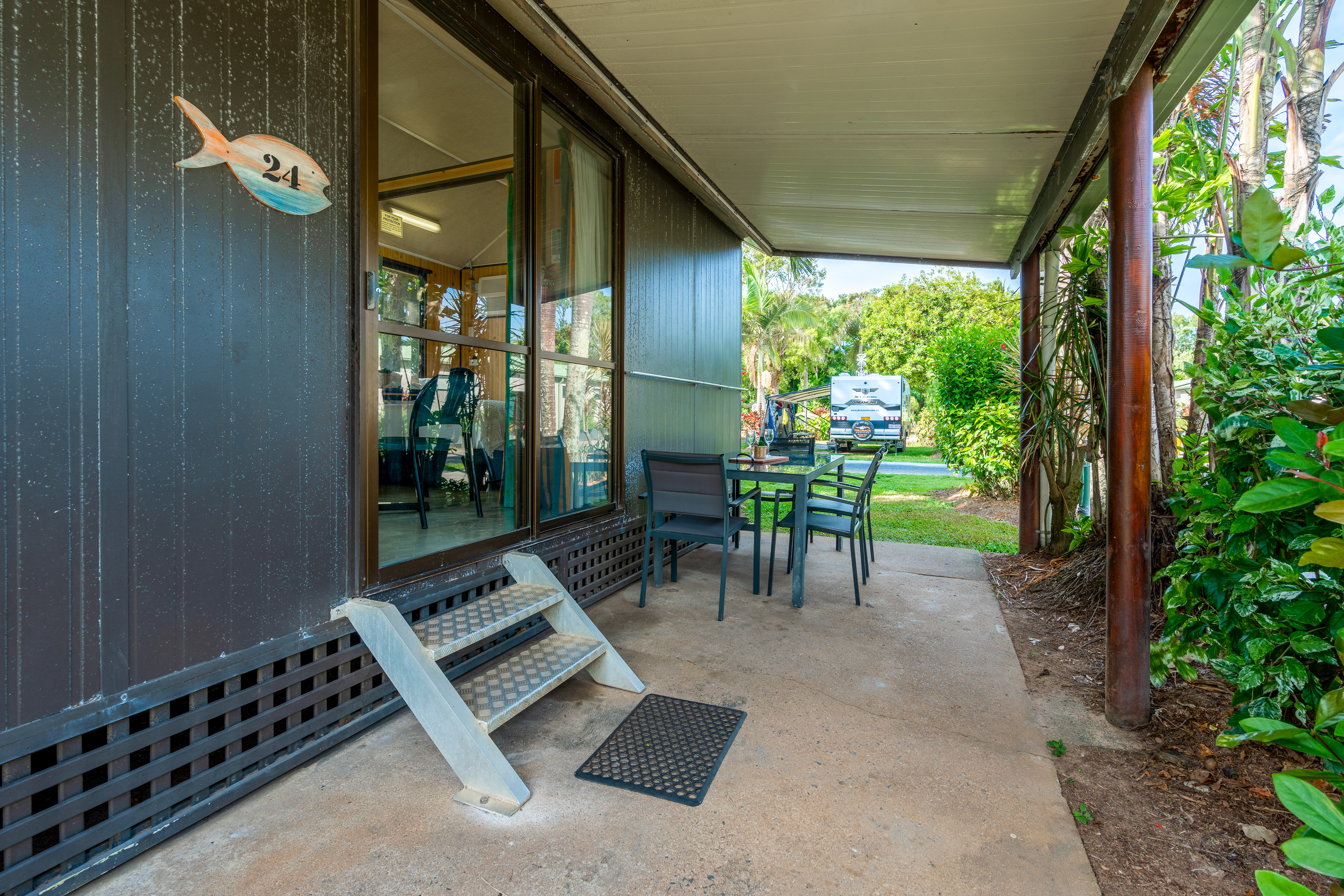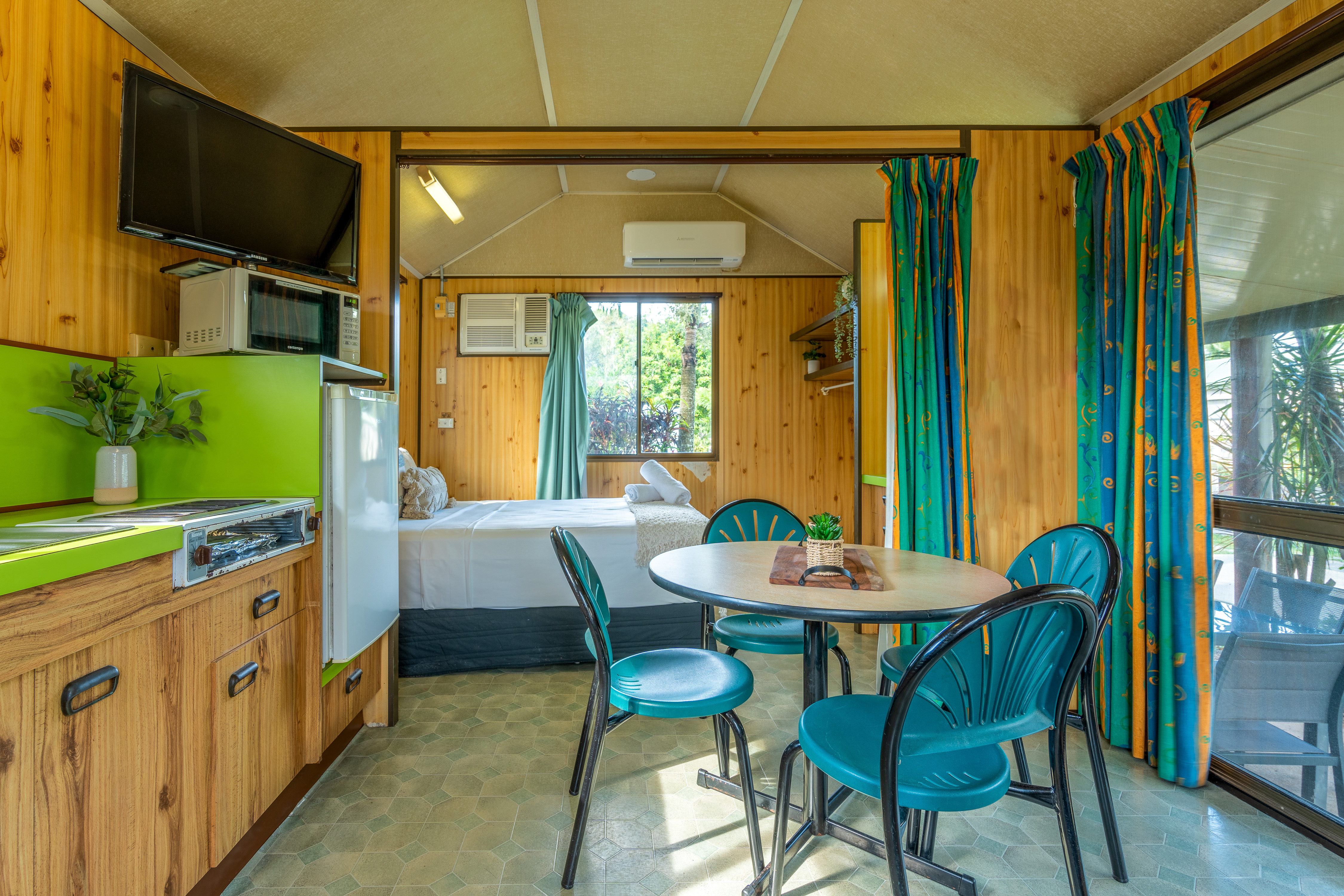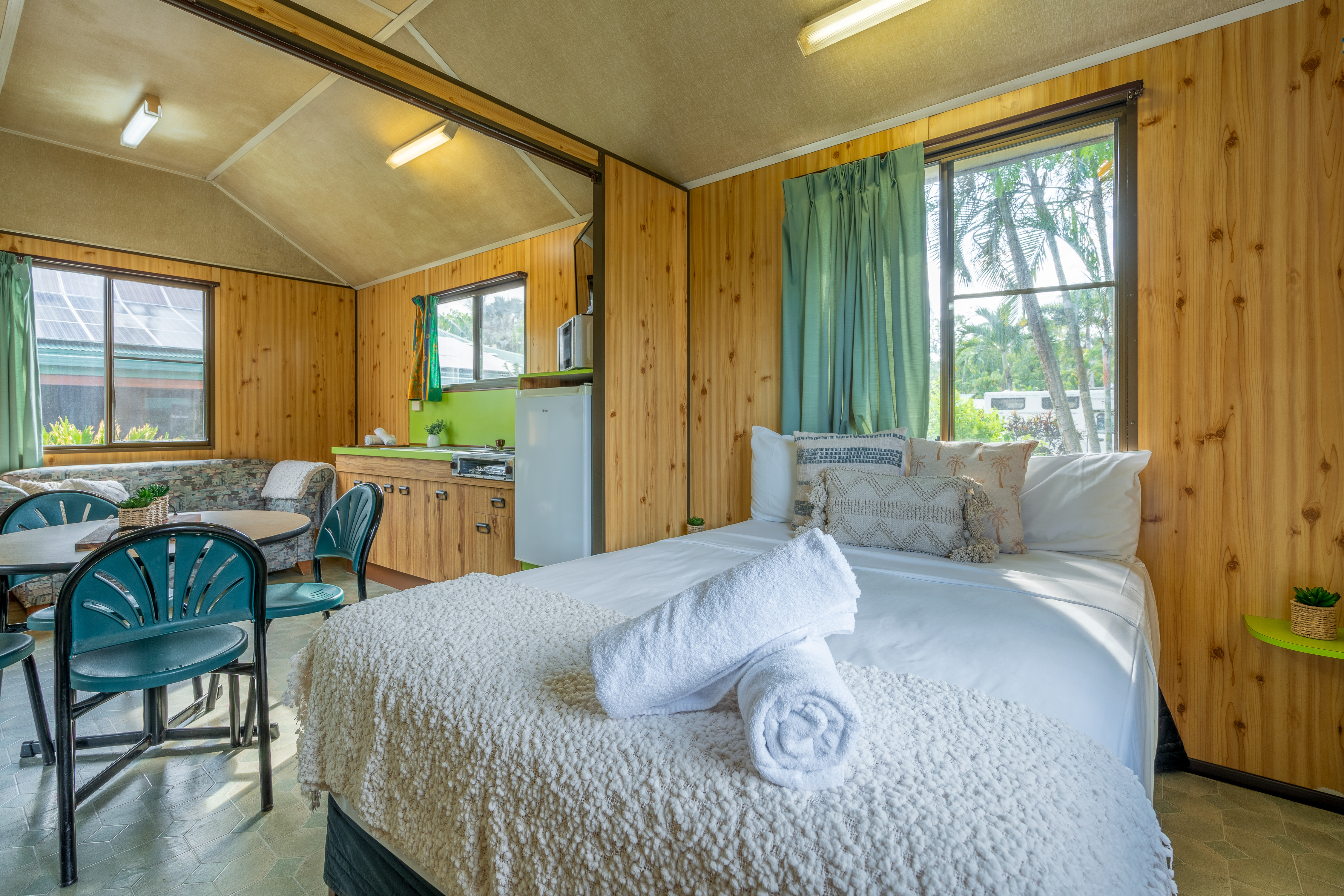 Set amongst our beautiful award-winning gardens, our simple and cosy Shacks are located just one row back from the stunning beachfront. Featuring a double bed, single bunk beds and a kitchenette in an open plan layout. Shared amenities, outdoor BBQs and laundry are located conveniently close by. Relax after a day at the beach on the private patio listening to the sounds of the waves.